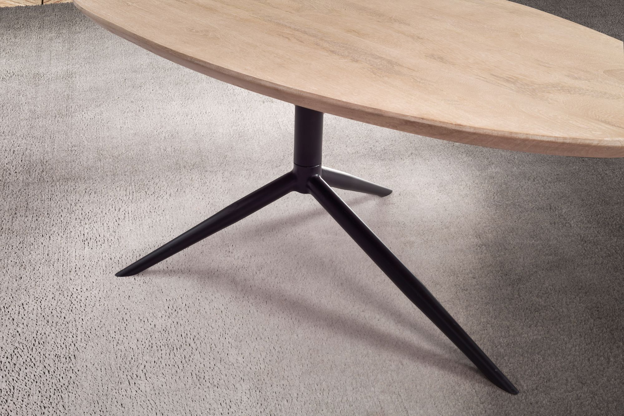 Das schwarze Dreibein-Gestell aus Metall sorgt für sicheren Stand und modernes Design. Die kompakten Maße machen den Tisch vielseitig einsetzbar.
