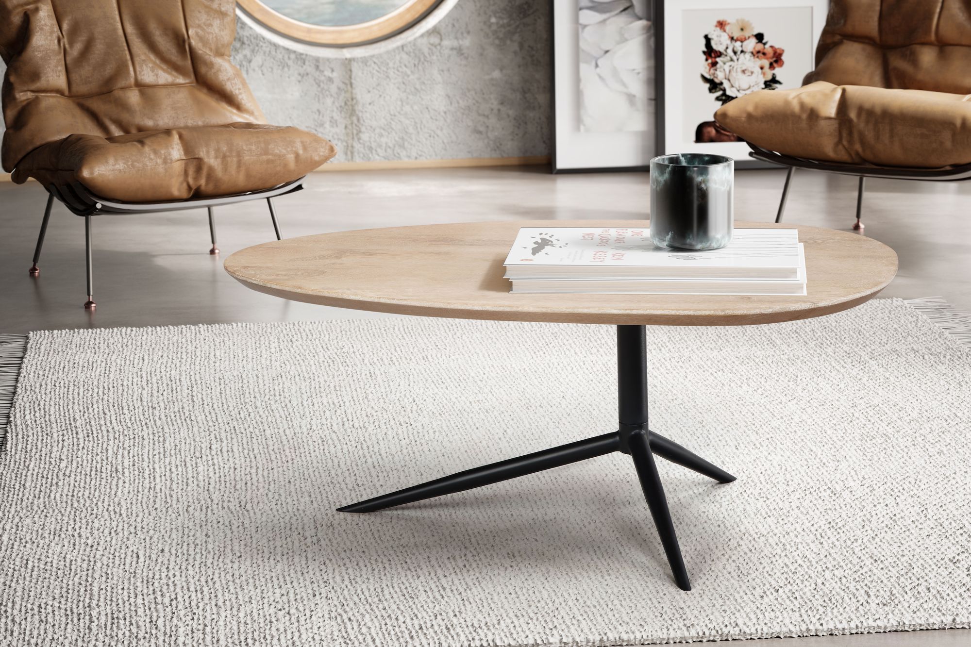 Ovaler Couchtisch | Mango Massivholz weiß getönt | 86,5x49x36 cm