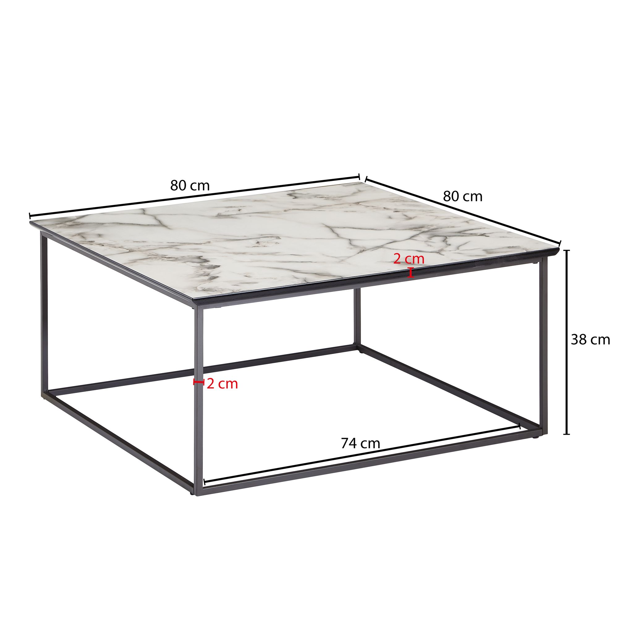 Produktinformationen "Quadratischer Couchtisch 80x38x80 cm | Weiße Marmor-Optik Tischplatte | Schwarzes Metallgestell"
