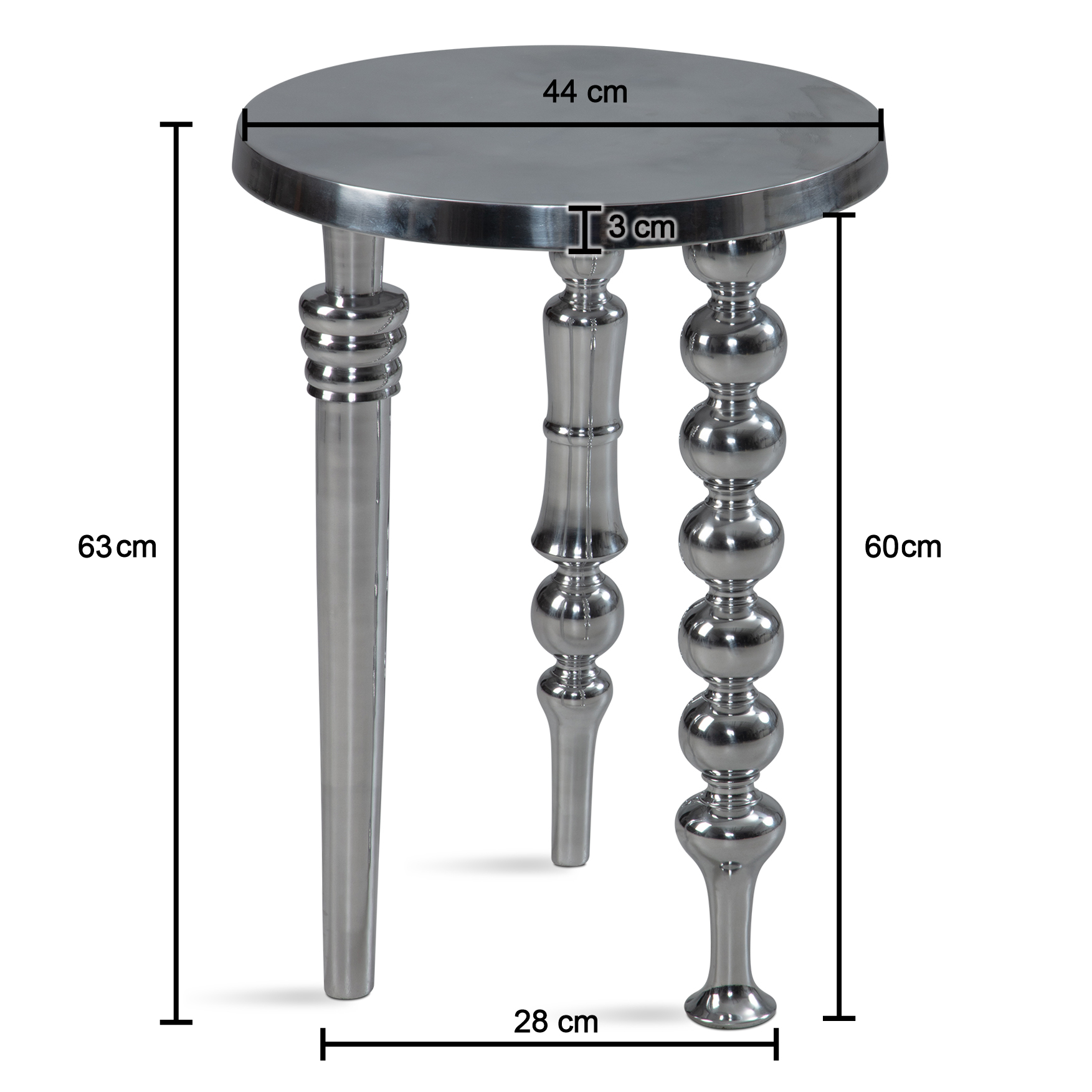 Runder Beistelltisch Aluminium Silber mit verschiedenen Beinen | 44x44x63 cm