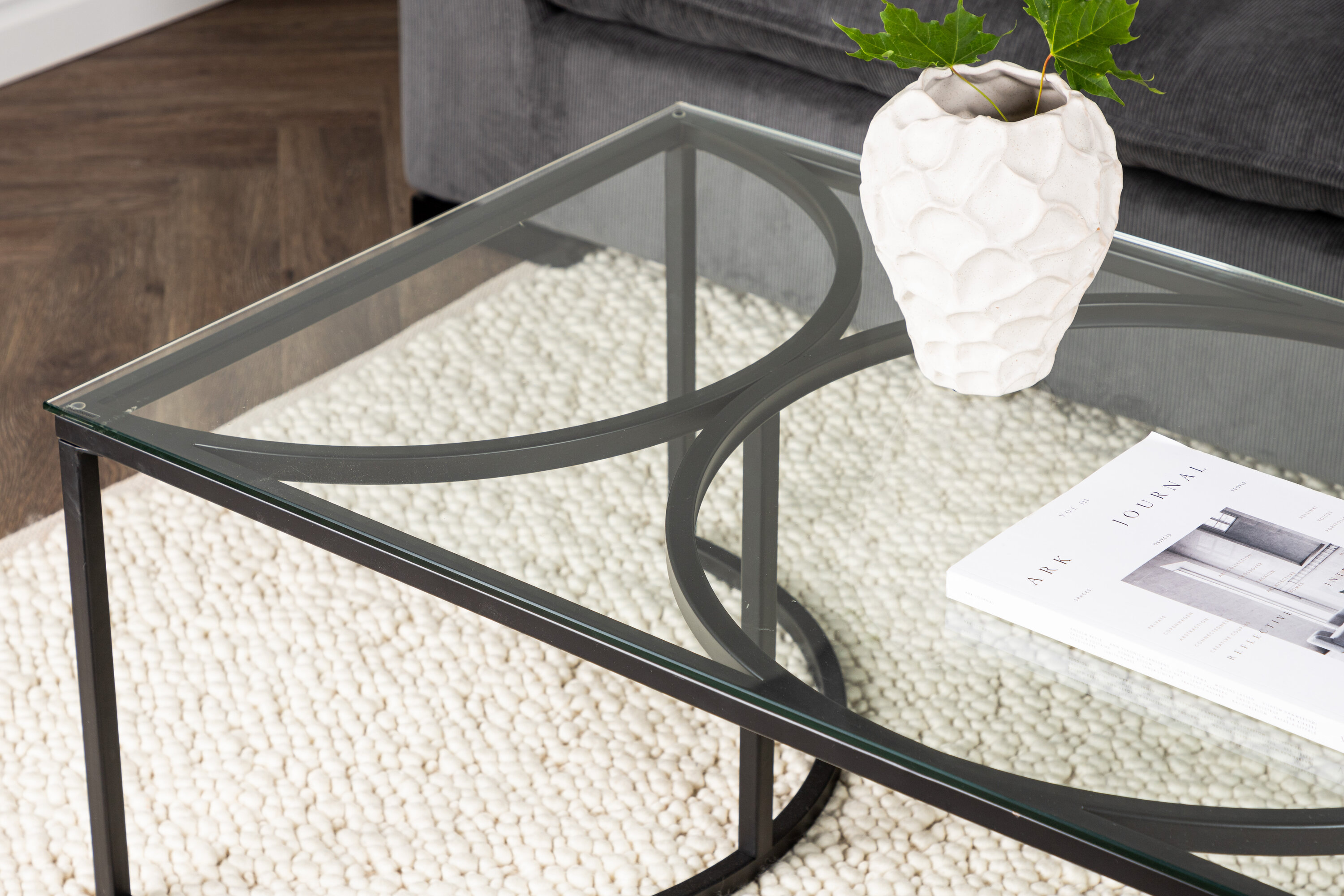 Dekorieren Sie das Wohnzimmer eindrucksvoll mit einem Couchtisch im modernen Industriedesign aus der Skanör-Serie! Der Couchtisch hat eine rechteckige Platte aus Glas und einen runden Rahmen aus Stahl, der Minimalismus atmet. Die transparente Tischplatte macht den Korpus von oben sichtbar, der zum köstlichen Detail des Gesamtdesigns wird. Beenden Sie mit einigen Kerzenleuchtern oder einer schönen Blumenvase, um einen heimeligen Eindruck zu hinterlassen, und genießen Sie einen stilvollen Couchtisch für Ihre Sofagruppe!