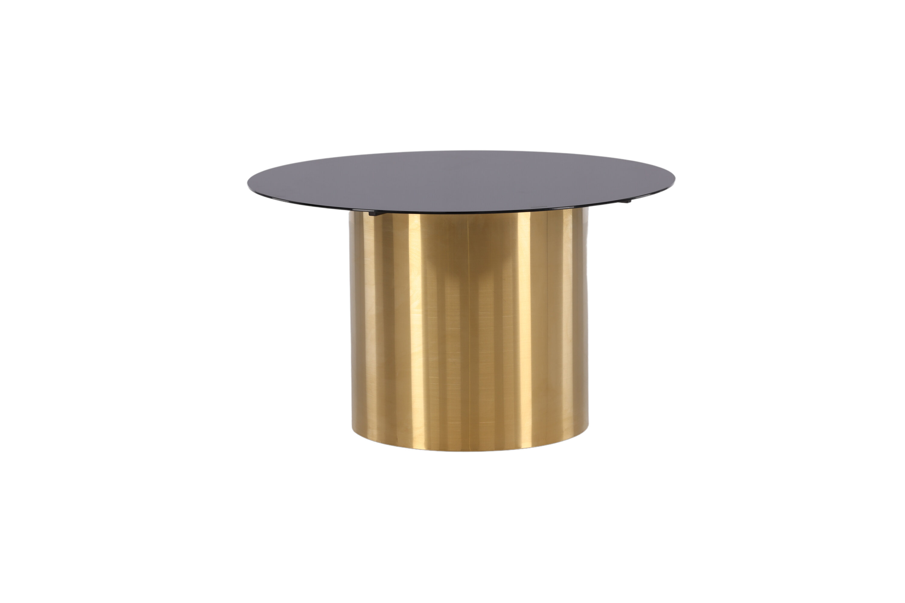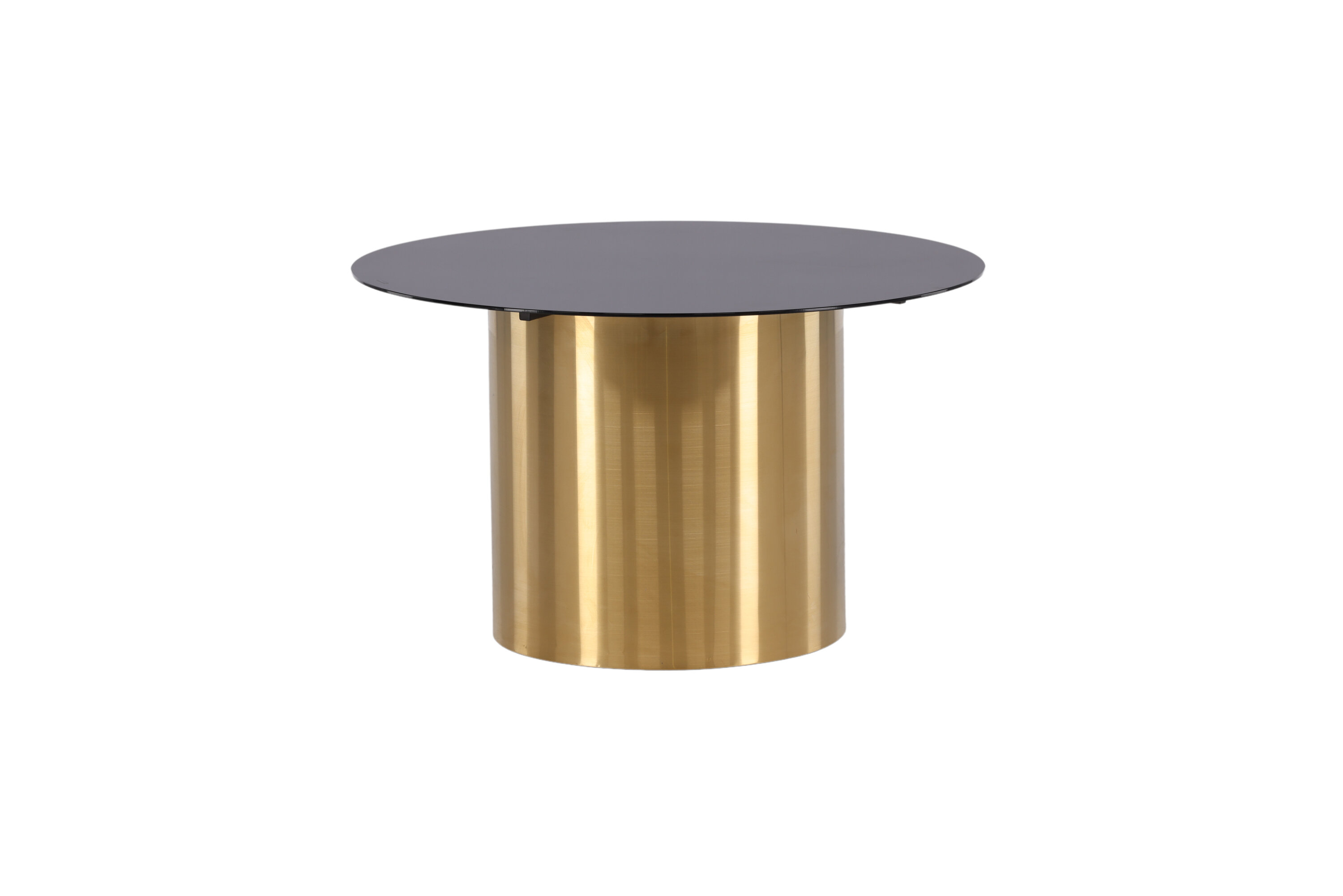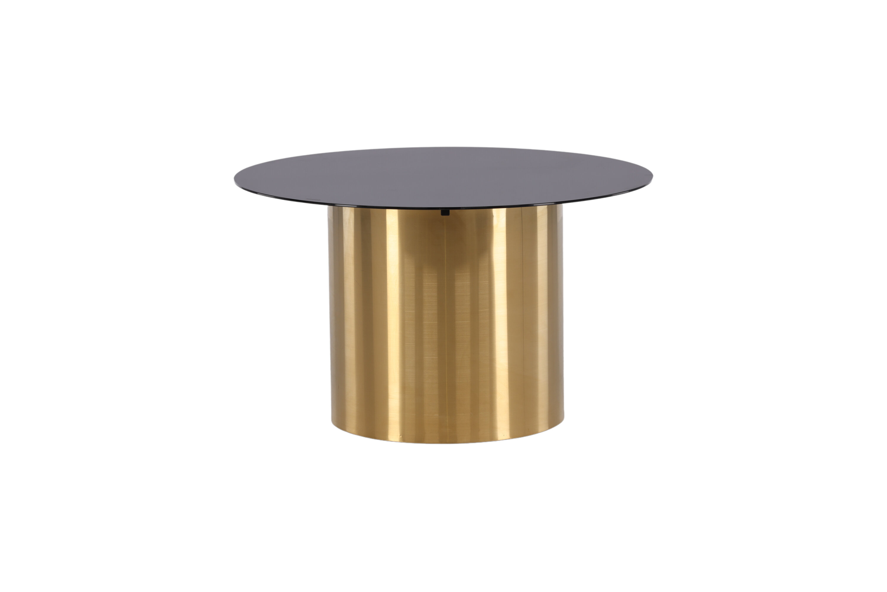 Der Couchtisch Ystad schafft einen trendigen Hingucker in Ihrem Wohnzimmer! Der runde Couchtisch mit einer Tischplatte aus schwarzem Glas und einem schönen zylindrischen Untergestell in der Farbe Gold verleiht Ihrem Zuhause ein modernes und dekoratives Gefühl. Vor dem Sofa platzieren oder als Relieftisch verwenden und mit passenden Kerzenleuchtern oder Vasen für einen vollständigen Eindruck dekorieren. Der Couchtisch gehört zu Furniture Fashion.
