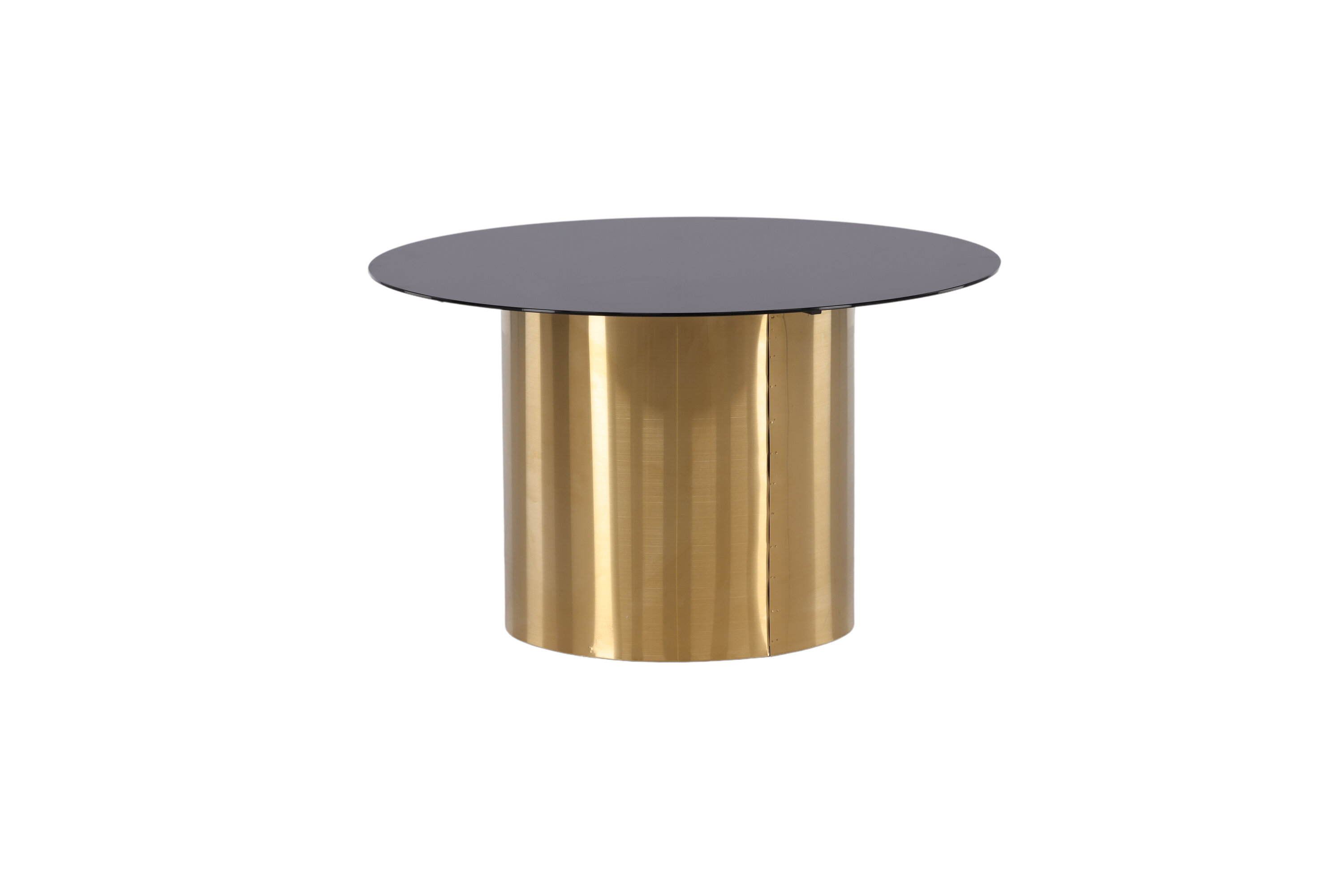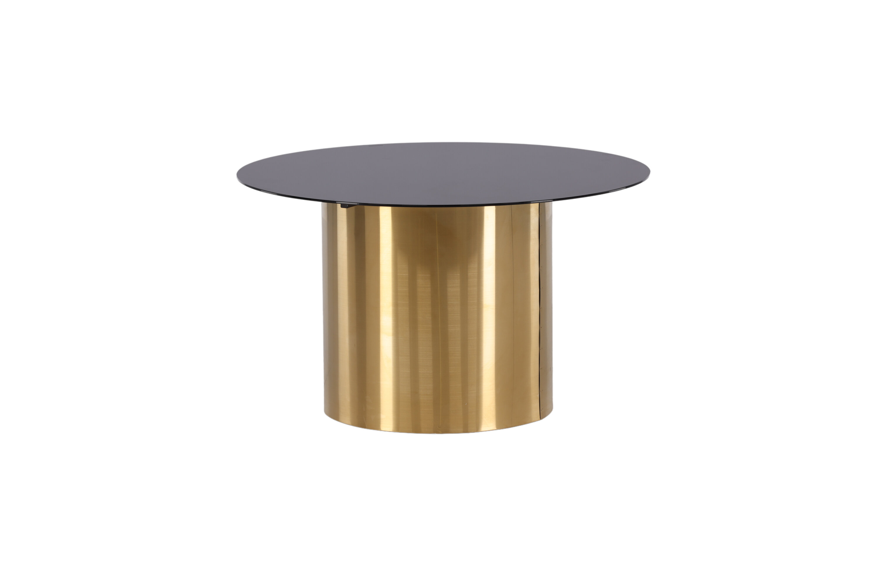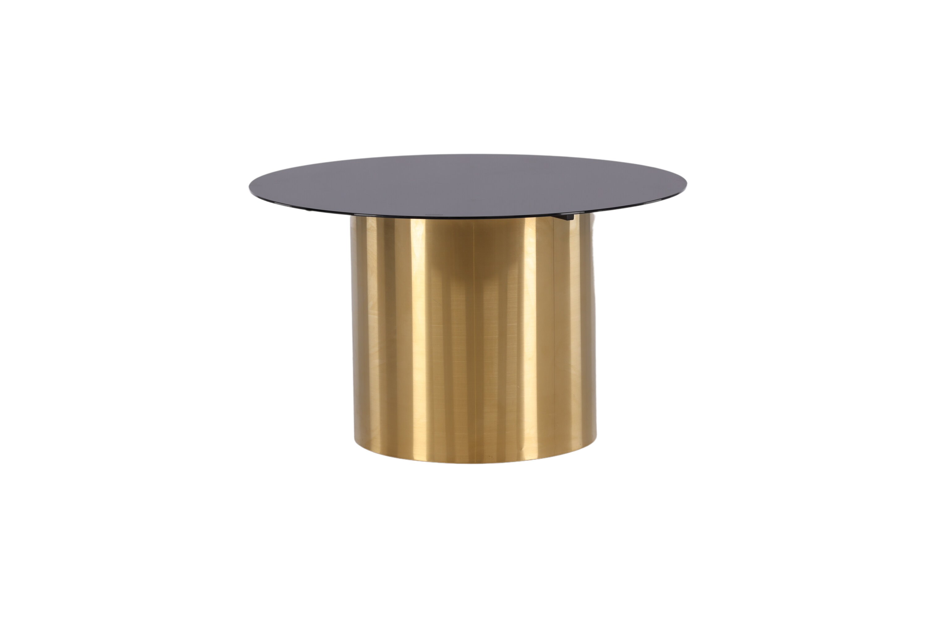 Der Couchtisch Ystad schafft einen trendigen Hingucker in Ihrem Wohnzimmer! Der runde Couchtisch mit einer Tischplatte aus schwarzem Glas und einem schönen zylindrischen Untergestell in der Farbe Gold verleiht Ihrem Zuhause ein modernes und dekoratives Gefühl. Vor dem Sofa platzieren oder als Relieftisch verwenden und mit passenden Kerzenleuchtern oder Vasen für einen vollständigen Eindruck dekorieren. Der Couchtisch gehört zu Furniture Fashion.