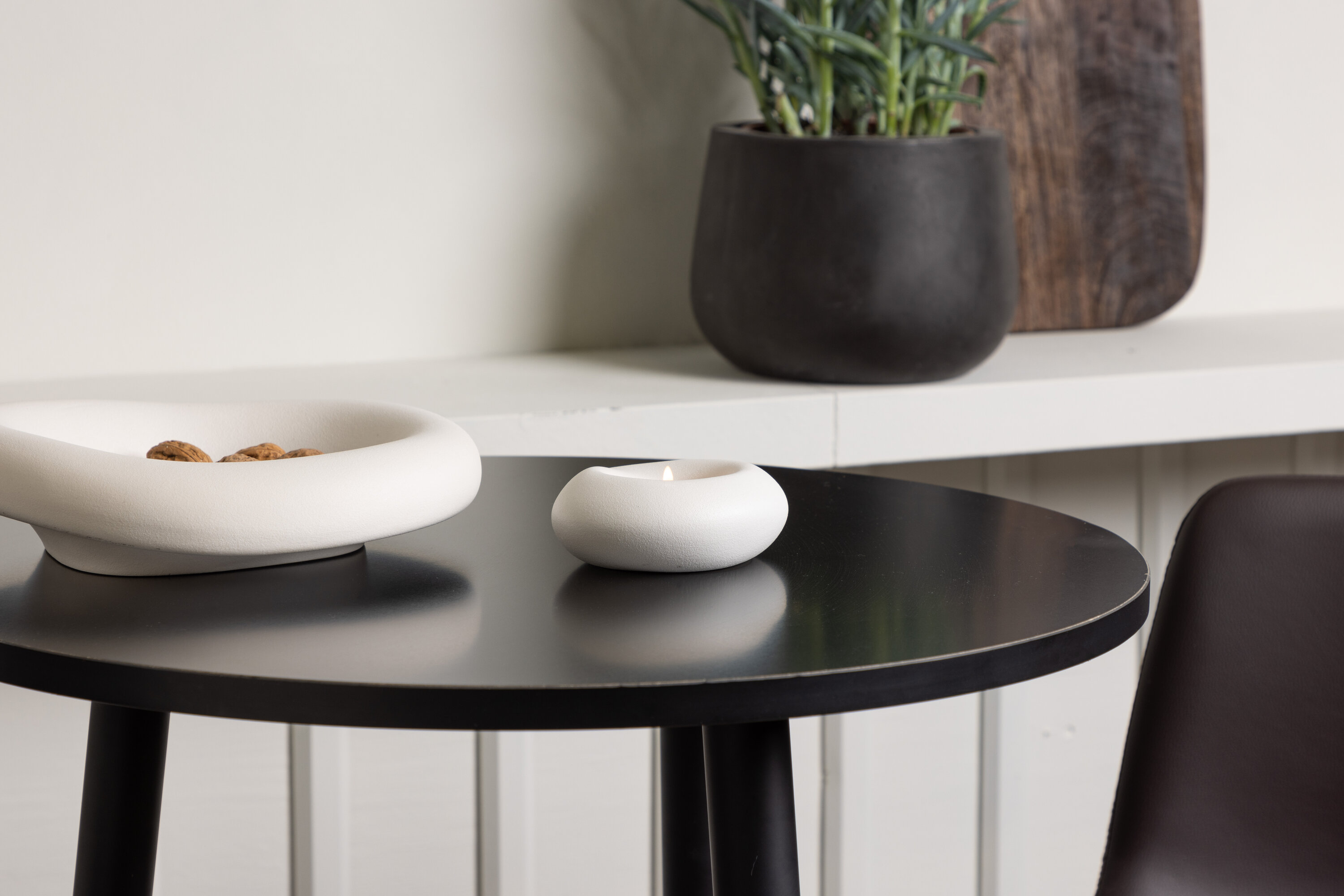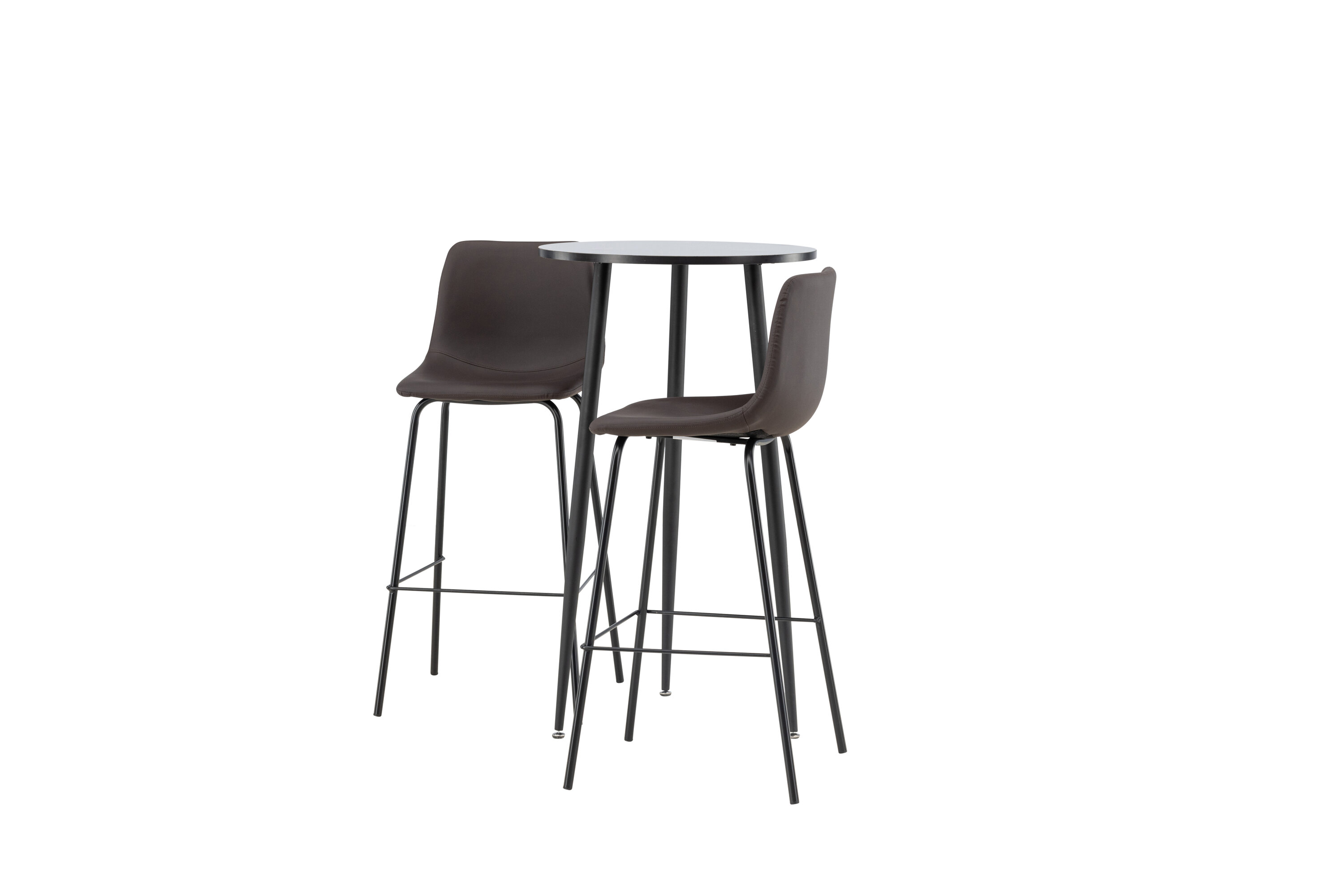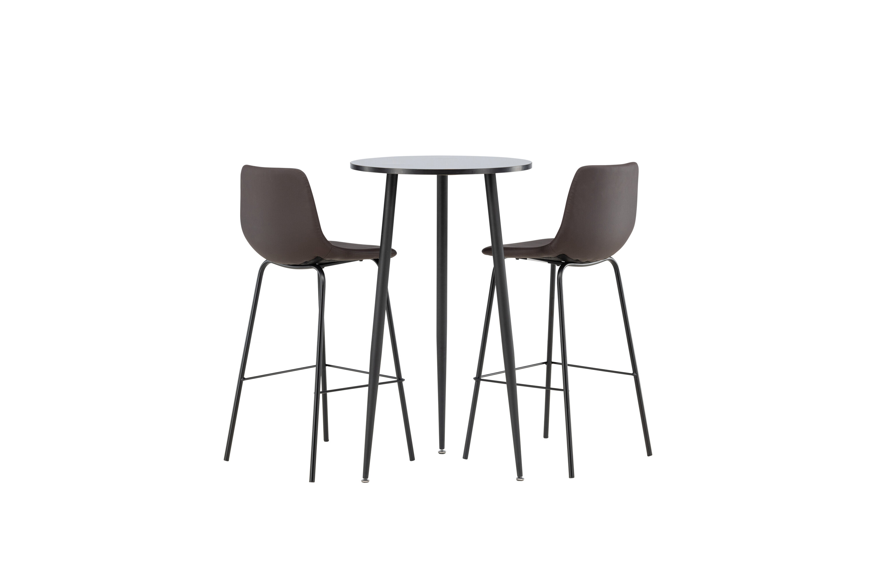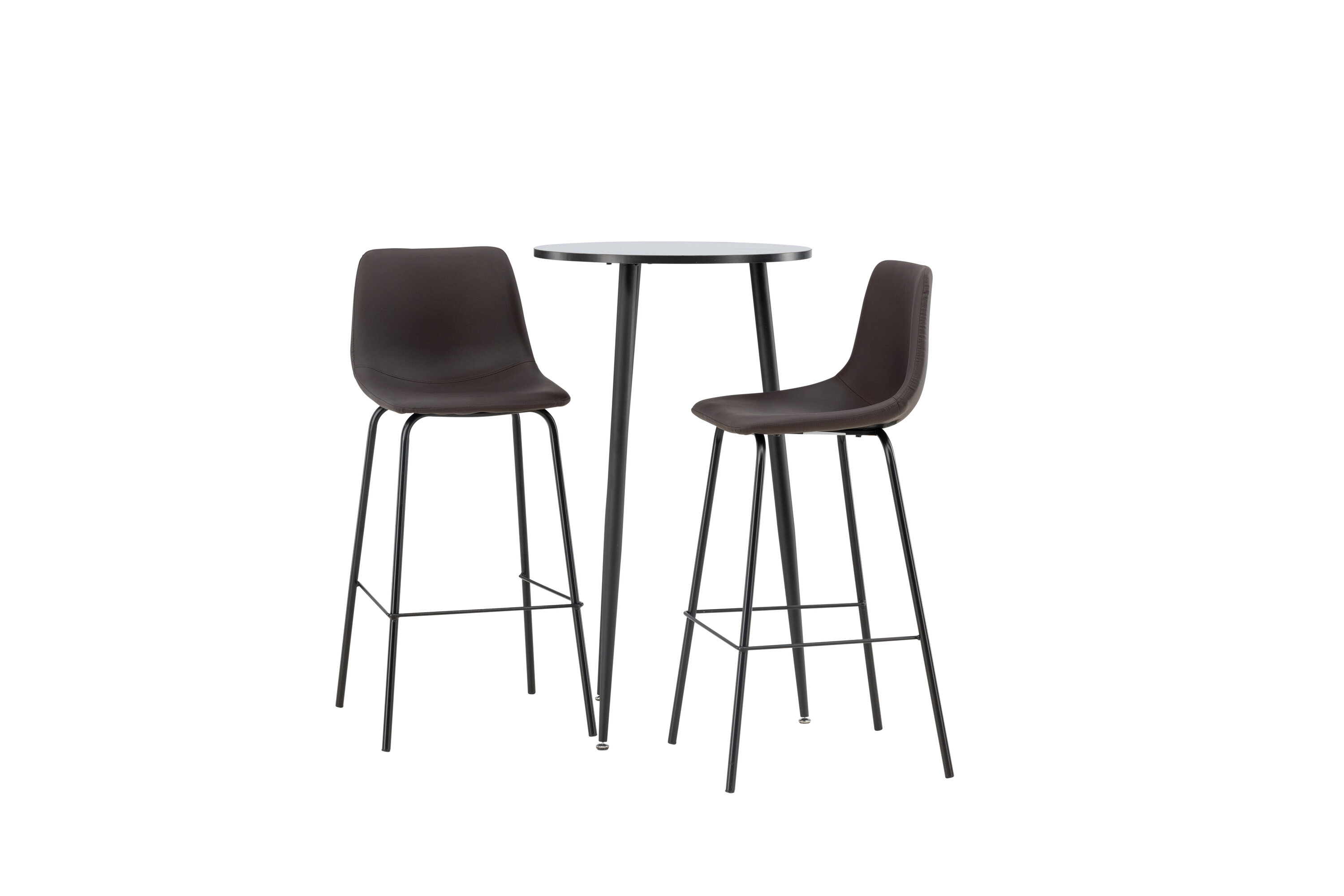 Eine komfortable Bargruppe im stylischen Design! Der wunderbare Stehtisch Plaza hat eine runde Tischplatte aus schwarzem MDF und die Tischbeine sind leicht ausgestellt aus schwarzem Metall. Hier in stilvoller Kombination mit braunen Barhockern aus der Alexi-Serie. Das Design ist gut durchdacht mit einem voll gepolsterten Stuhl aus braunem gepolstertem Polyurethan-Leder und Polyester und schmalen Beinen aus schwarzem pulverbeschichtetem Metall mit integrierter Fußstütze für zusätzlichen Komfort. Dekorieren Sie Ihr Zuhause elegant! Tischmaße: 60cm.