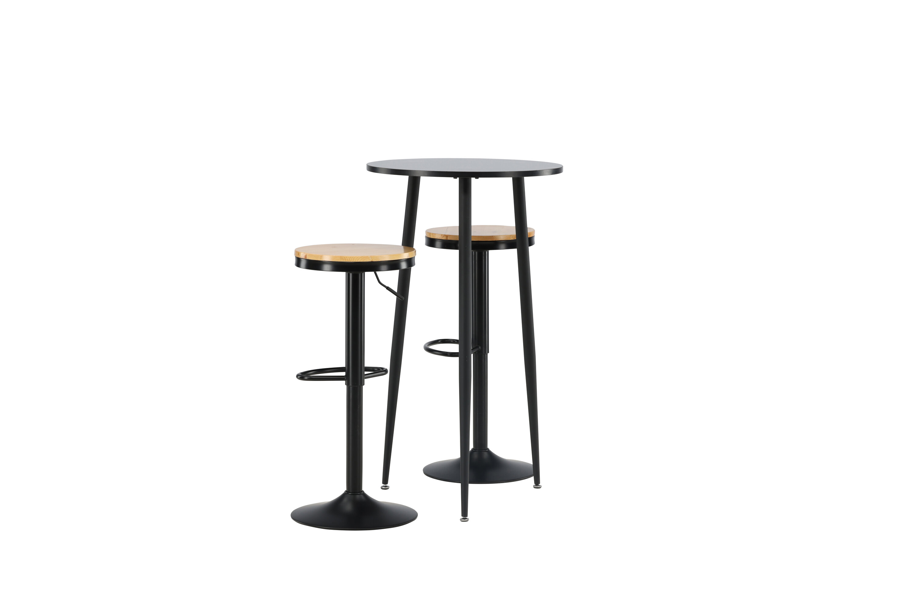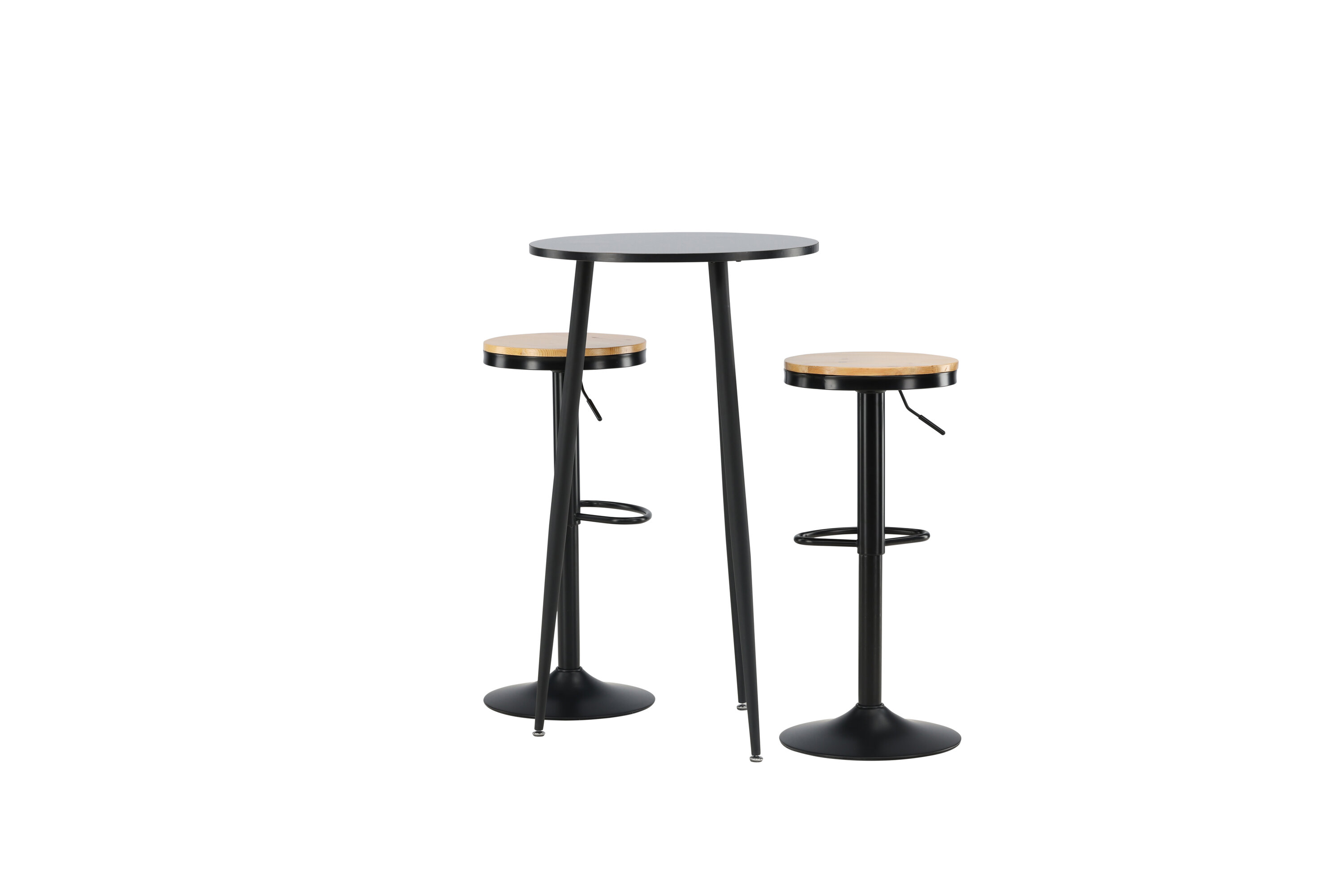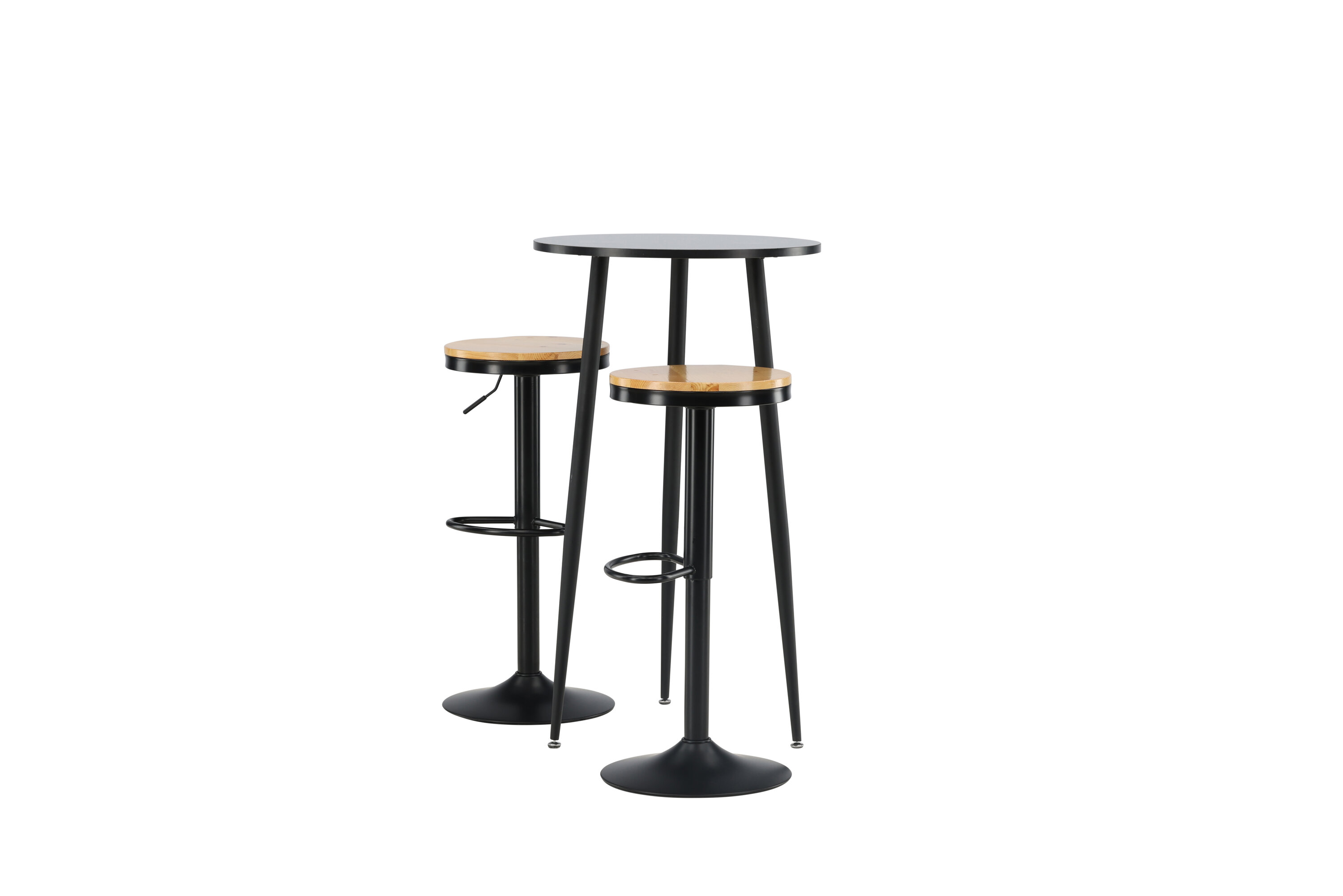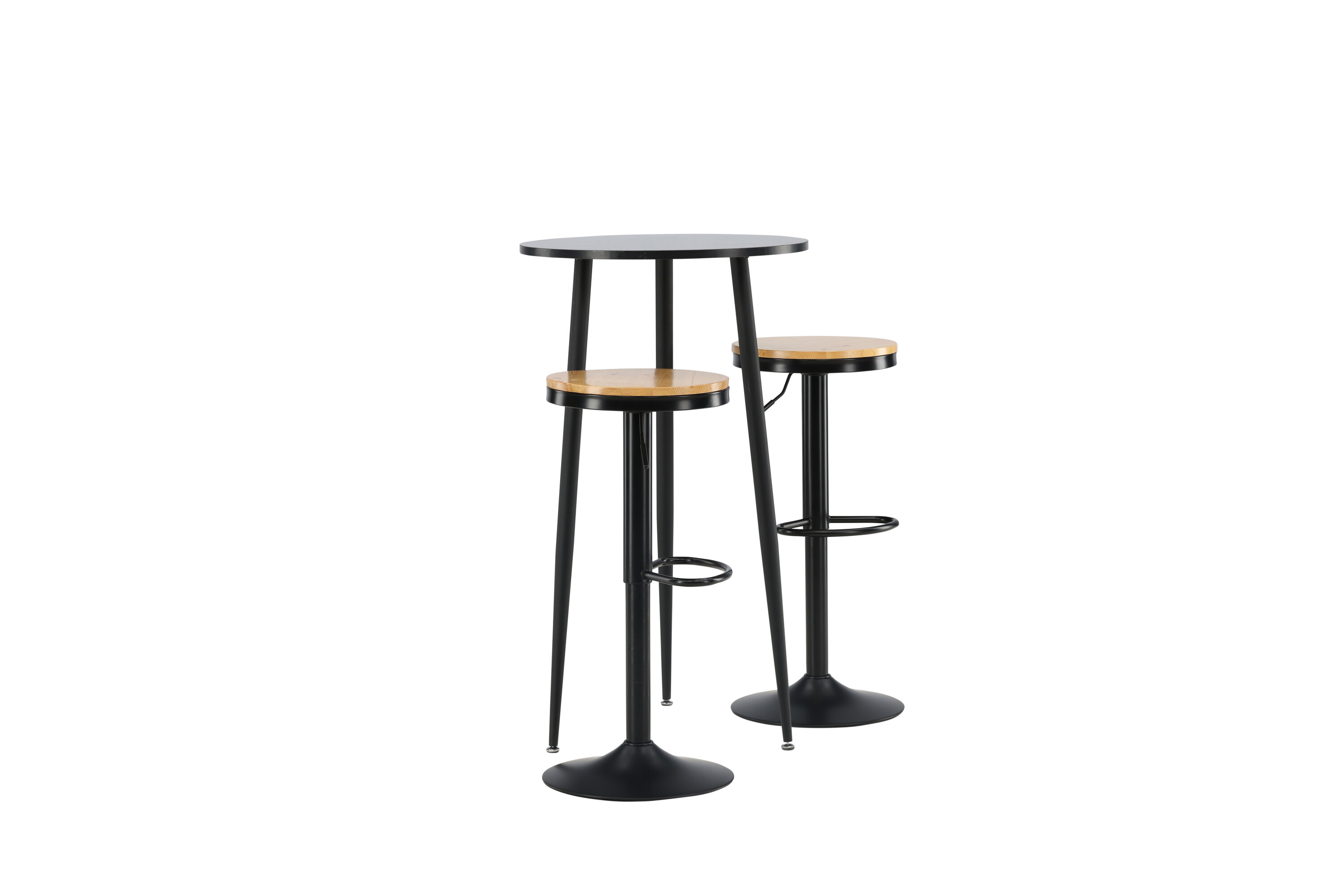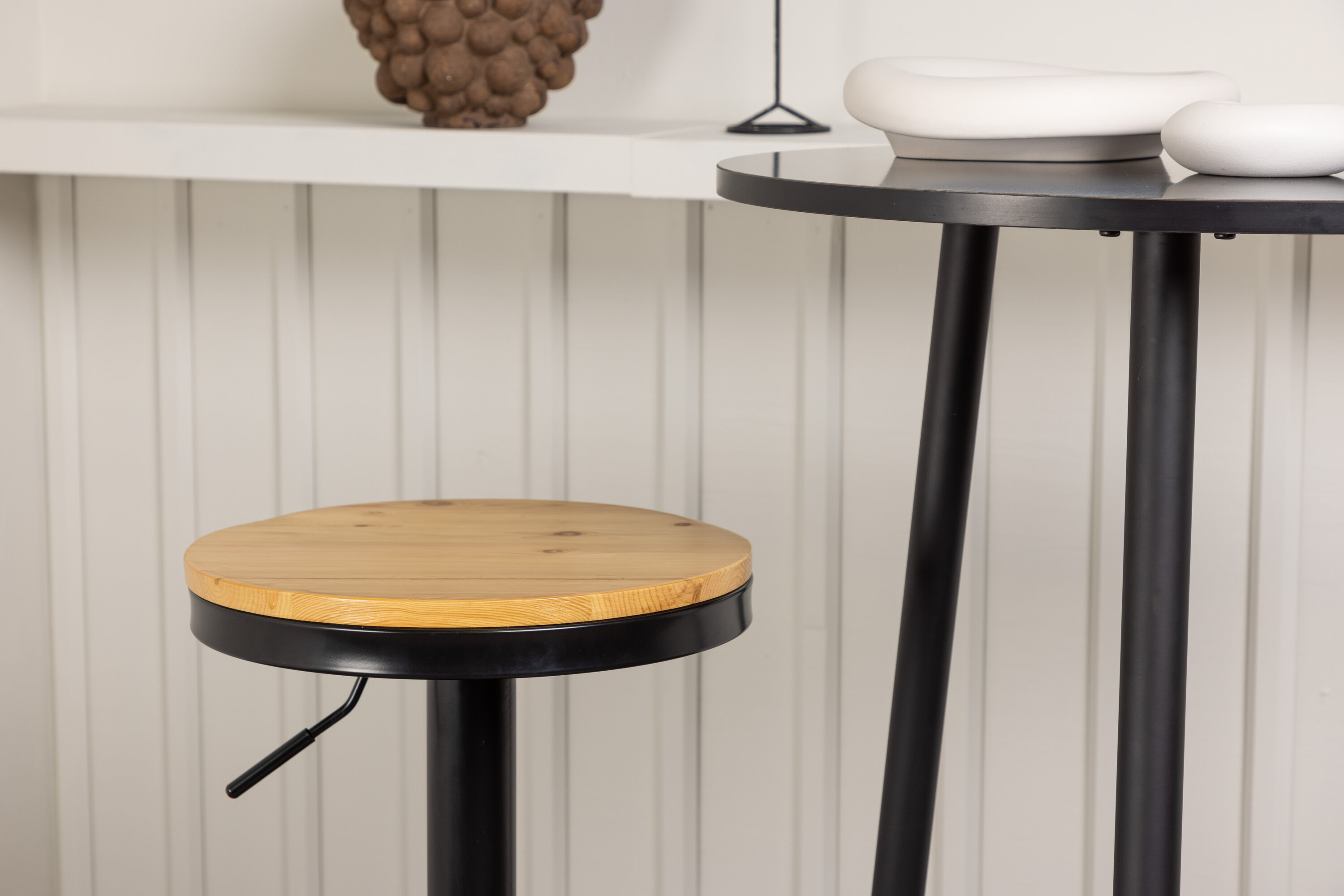 Eine perfekte Bargruppe für die kleine Küche! Der wunderbare Stehtisch Plaza hat eine runde Tischplatte aus schwarzem MDF und die Tischbeine sind leicht ausgestellt aus schwarzem Metall. Hier zusammen mit einfachen Barhockern aus der Conway-Serie. Der Stuhl hat ein stilvolles Design mit einem Trompetenfuß aus schwarzem Stahl und einem einfachen runden Sitz aus eichenfarbenem MDF. Dieser Barhocker verfügt über eine integrierte Fußstütze und kann für zusätzlichen Komfort angehoben und abgesenkt werden. So smart wie stylisch! Tischmaße: 60cm.
