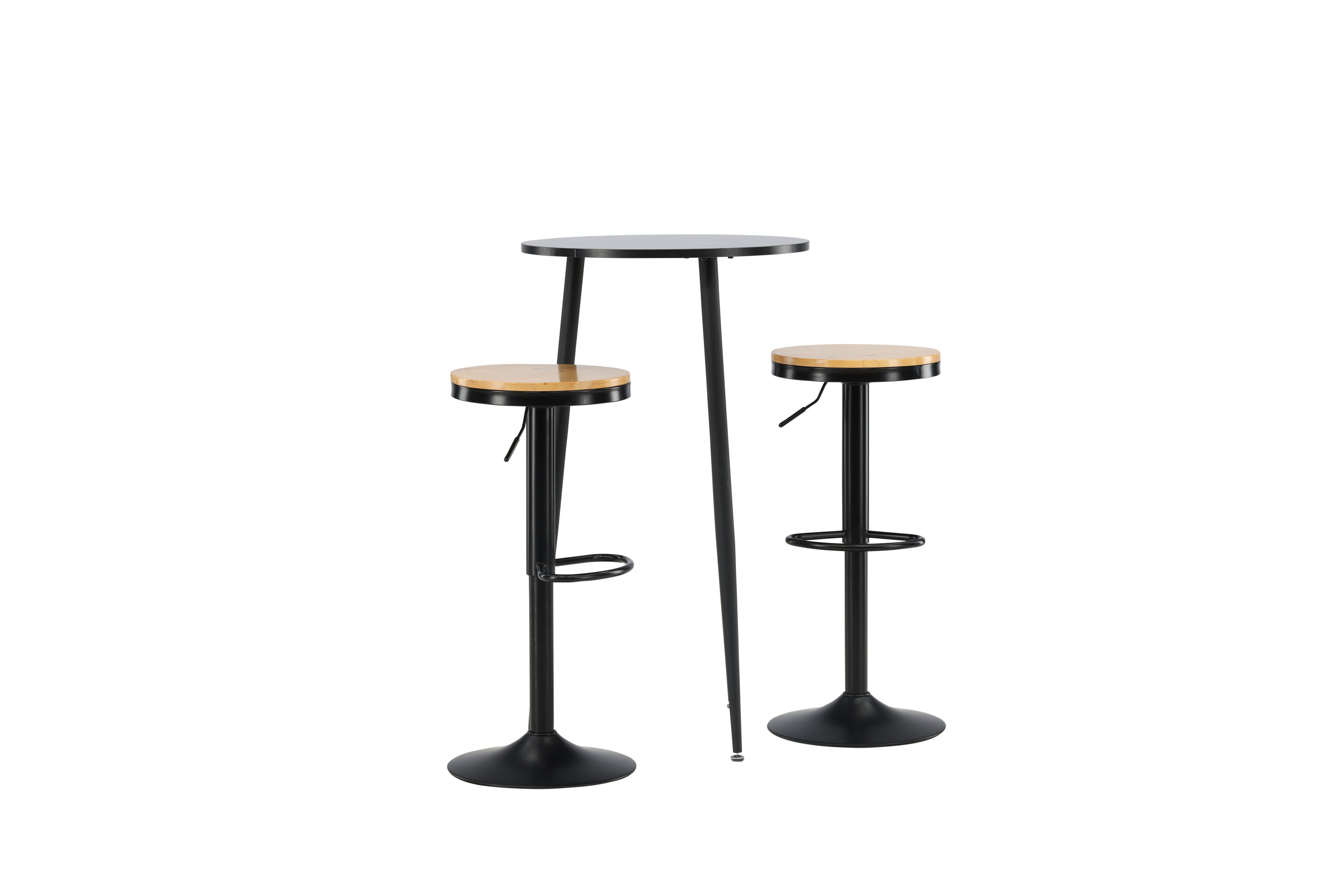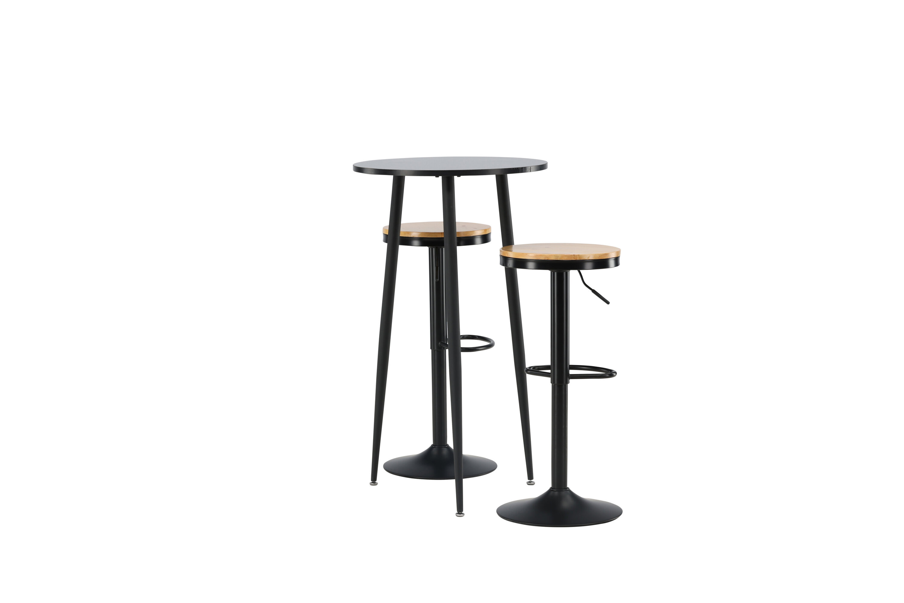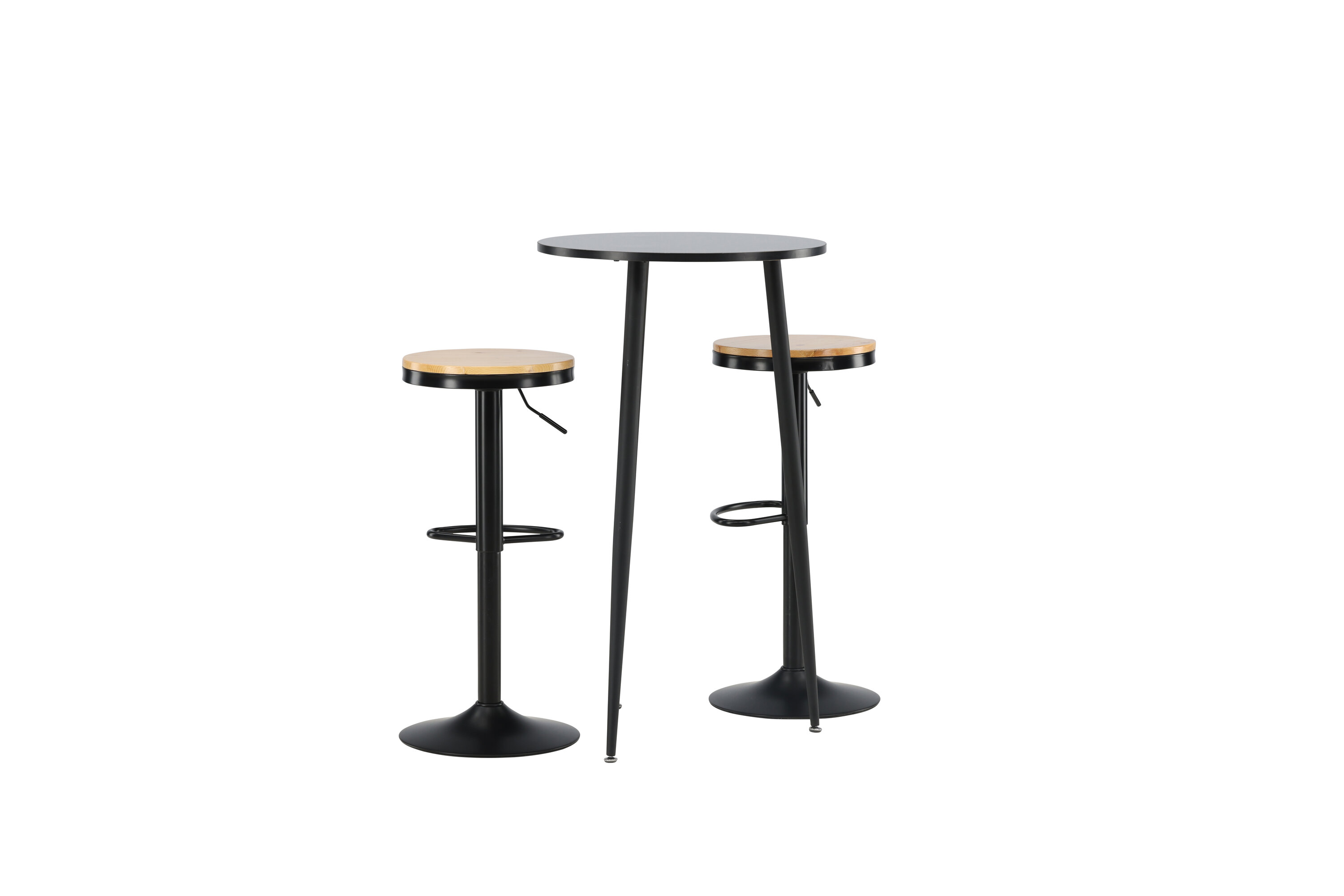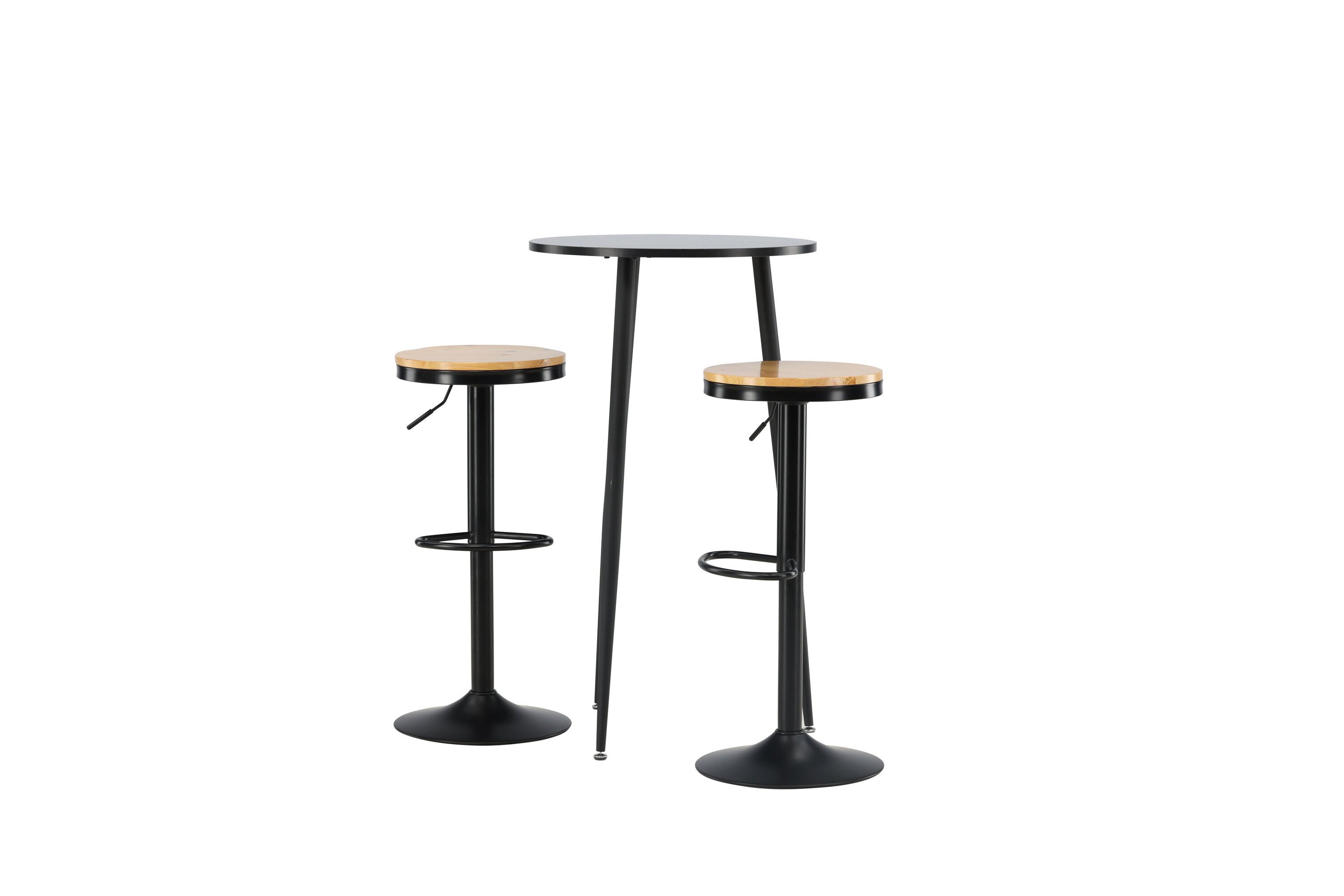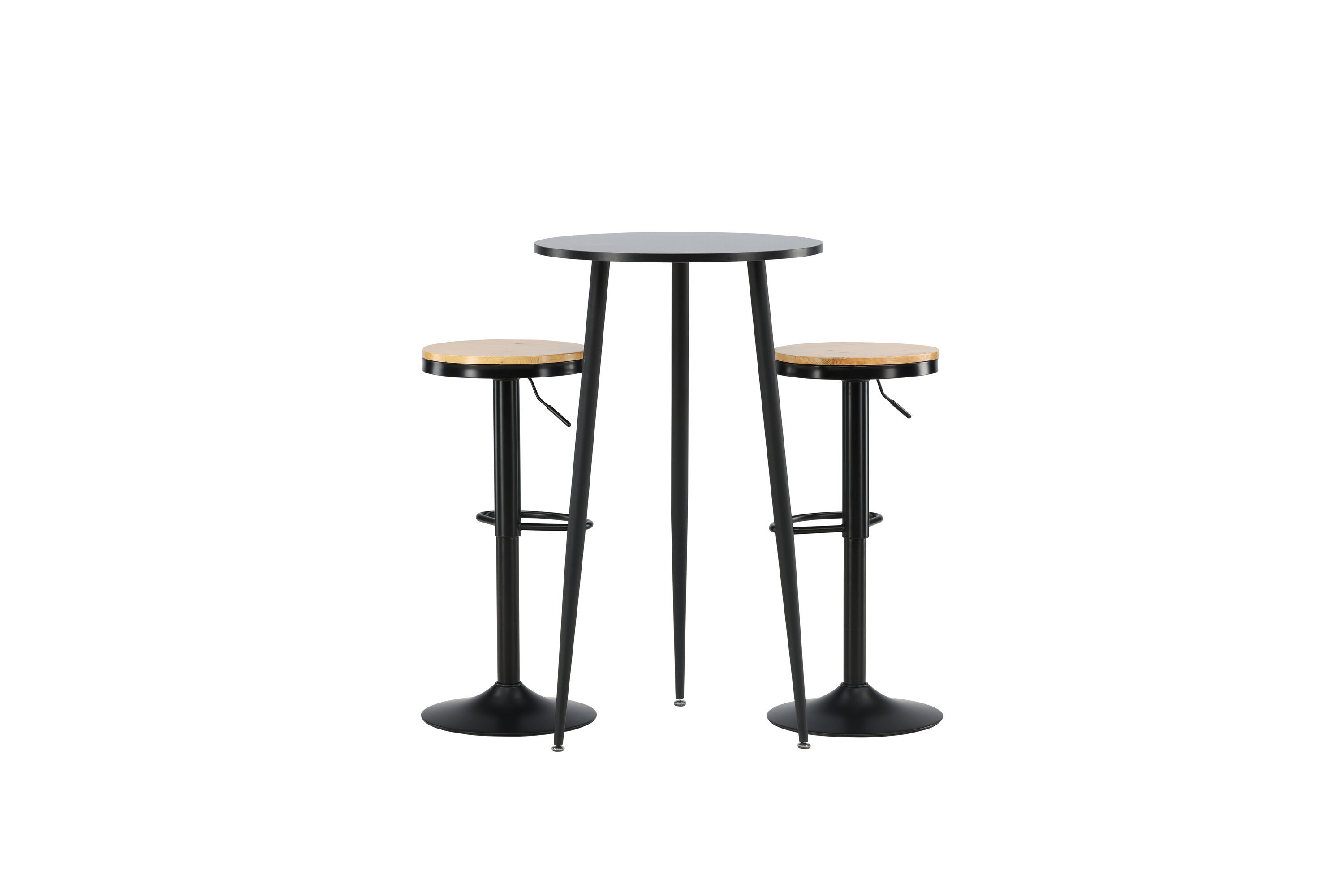 Eine perfekte Bargruppe für die kleine Küche! Der wunderbare Stehtisch Plaza hat eine runde Tischplatte aus schwarzem MDF und die Tischbeine sind leicht ausgestellt aus schwarzem Metall. Hier zusammen mit einfachen Barhockern aus der Conway-Serie. Der Stuhl hat ein stilvolles Design mit einem Trompetenfuß aus schwarzem Stahl und einem einfachen runden Sitz aus eichenfarbenem MDF. Dieser Barhocker verfügt über eine integrierte Fußstütze und kann für zusätzlichen Komfort angehoben und abgesenkt werden. So smart wie stylisch! Tischmaße: 60cm.