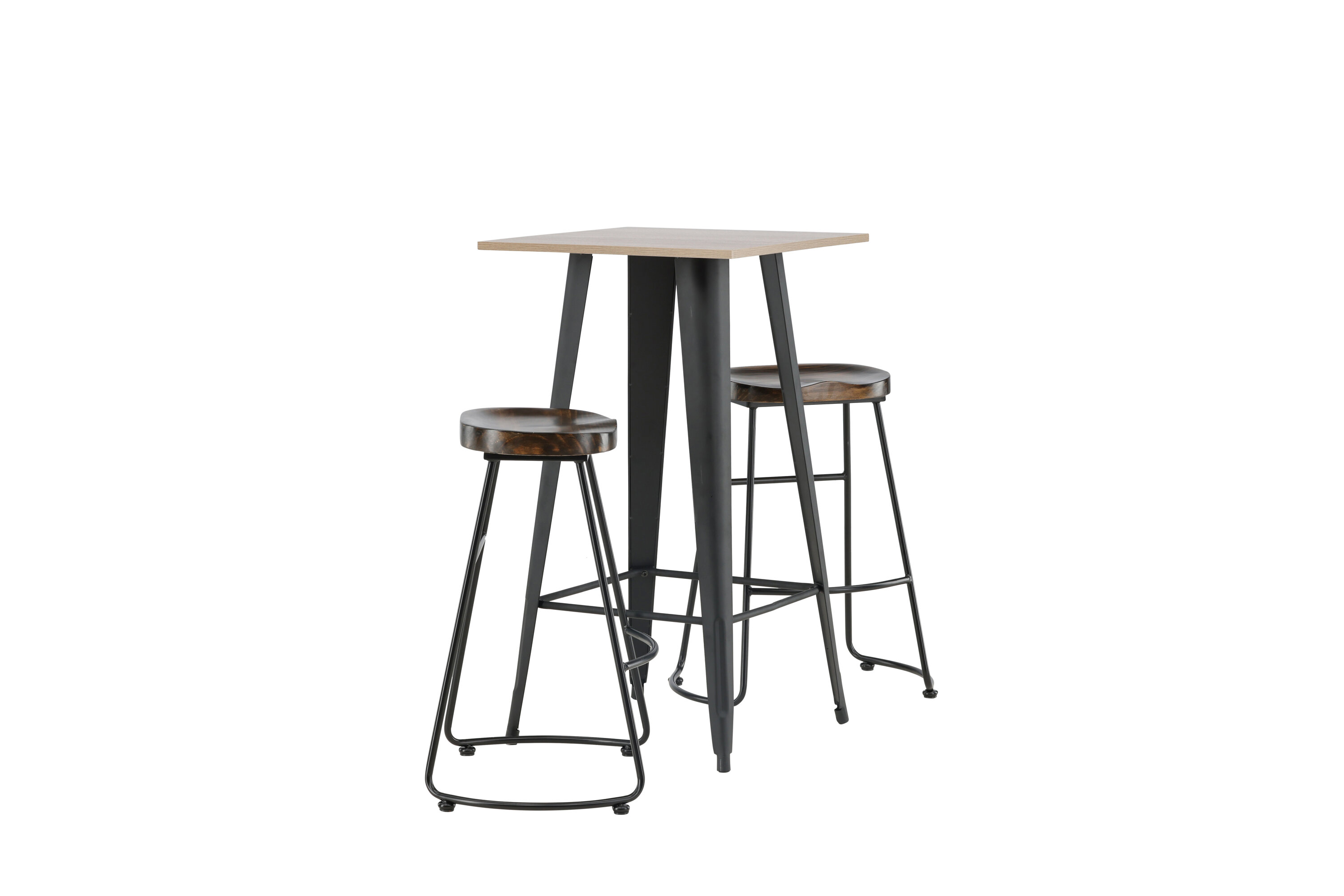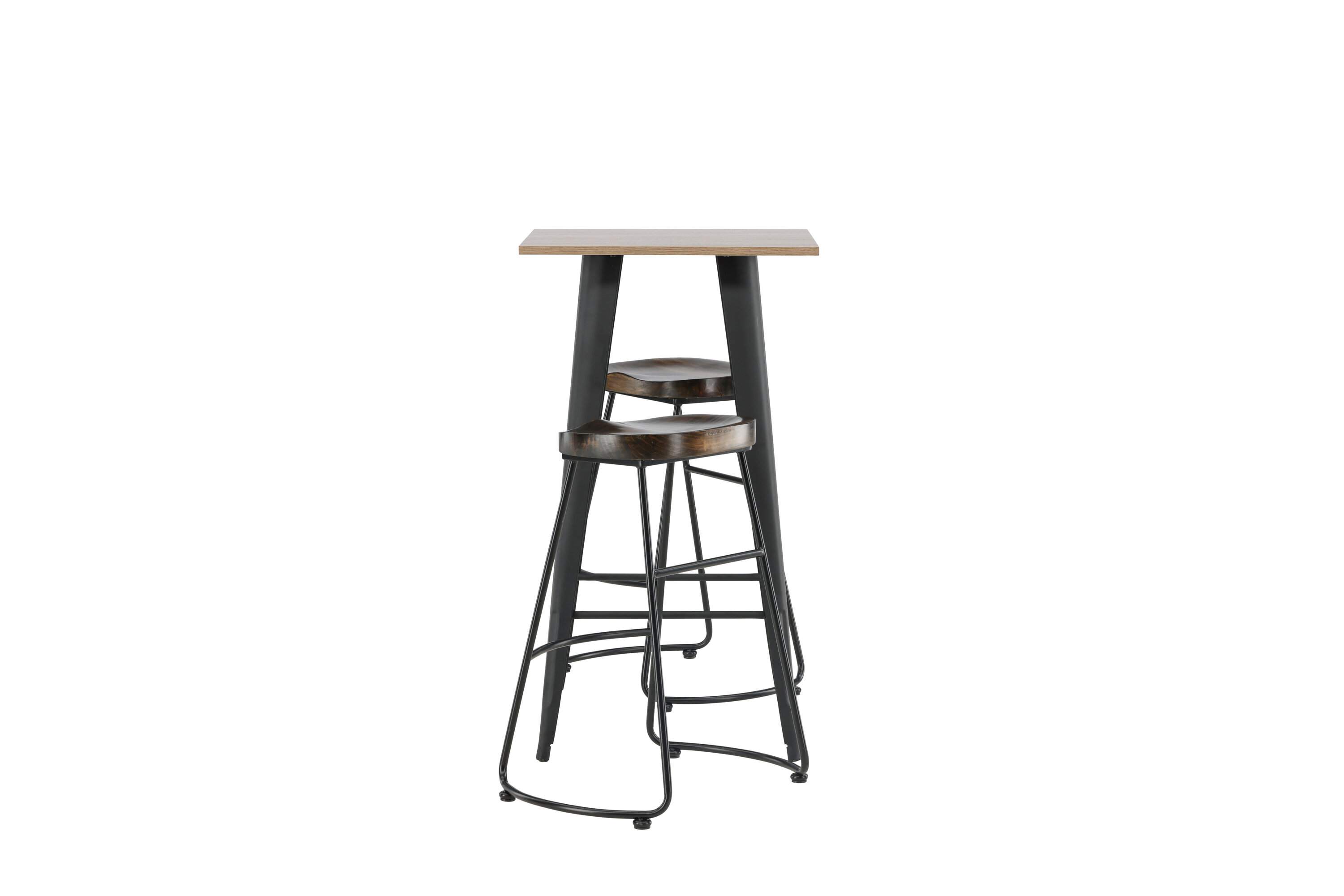 Schaffen Sie einen charmanten Ort in der kleinen Küche! Der Tempe Stehtisch verfügt über eine quadratische Tischplatte aus walnussfarbenem MDF und leicht ausgestellte Tischbeine aus schwarzem Metall mit einem Rahmen für die Fußstütze für zusätzlichen Komfort. Hier in stilvoller Kombination mit Barhockern aus der Ozark-Serie. Der Stuhl hat ein klassisches Design mit einem Sitz aus dunklem Holz, der so bequem wie möglich geformt ist. Der schwarze Stahlfuß ist stabil und verfügt über eine integrierte Fußstütze. So modern wie zeitlos! Tischabmessungen: 60x60cm.