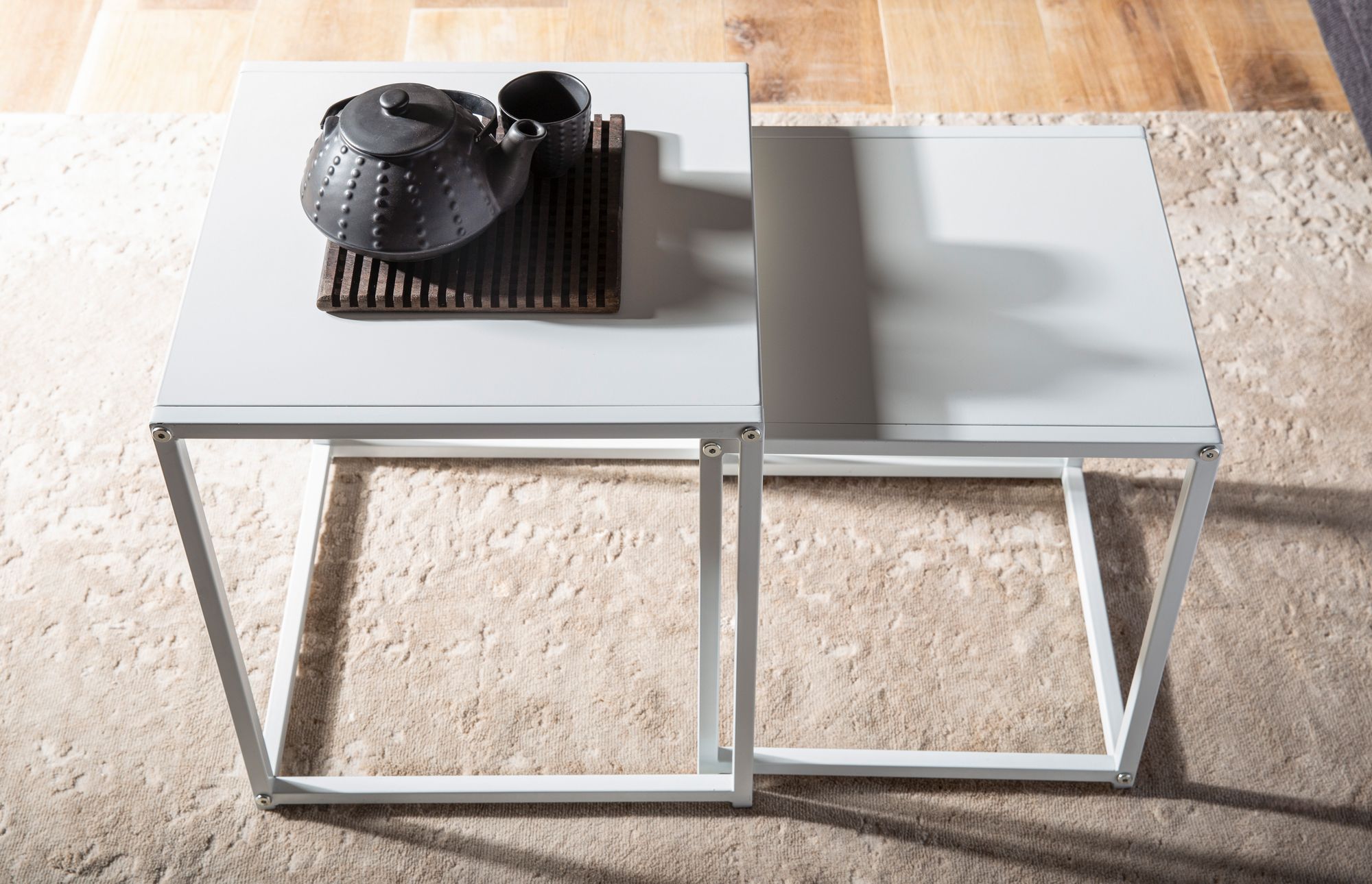 Beistelltisch 2er Set Weiß Metall 40x40x45 & 35x35x40 cm | Industrial Design