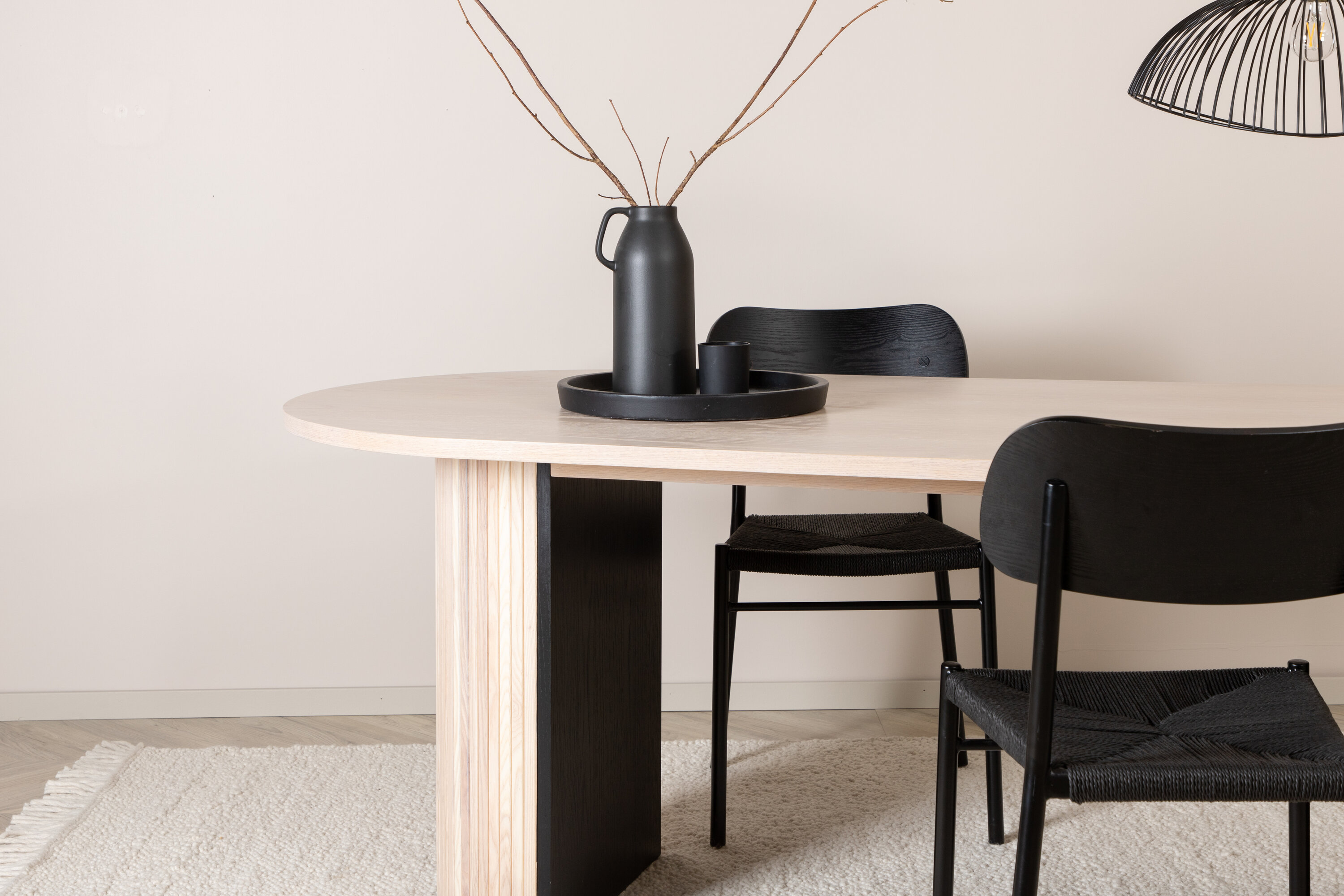 Bianca kreiert einen stylischen Hingucker, der beeindruckt! Dieser ovale Esstisch in einer verputzten weißen Farbe hat ein modernes Design mit einer MDF-Tischplatte und einem robusten Rahmen in geripptem Design, der einen stetigen Eindruck vermittelt. Heben Sie die Inneneinrichtung im Wohnzimmer hervor und laden Sie zu vielen angenehmen Mahlzeiten ein!