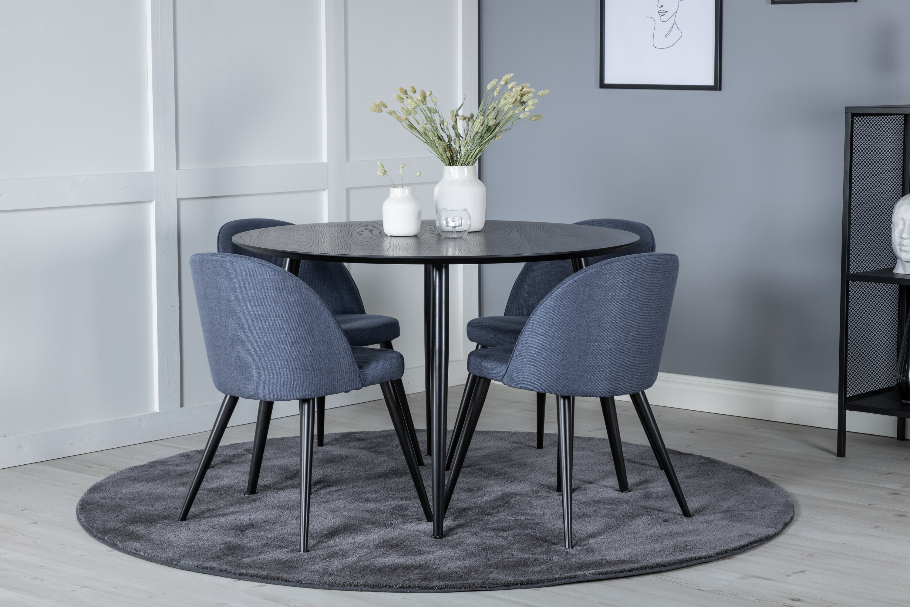 Eine Lebensmittelgruppe in modernem und stilvollem Design. Esstisch Dips und Esszimmerstühle Velvet ist die perfekte Kombination für das Herz des Hauses, die wahrscheinlich genauso gut zu Ihren Bedürfnissen passt wie zu Ihrem anderen Interieur.