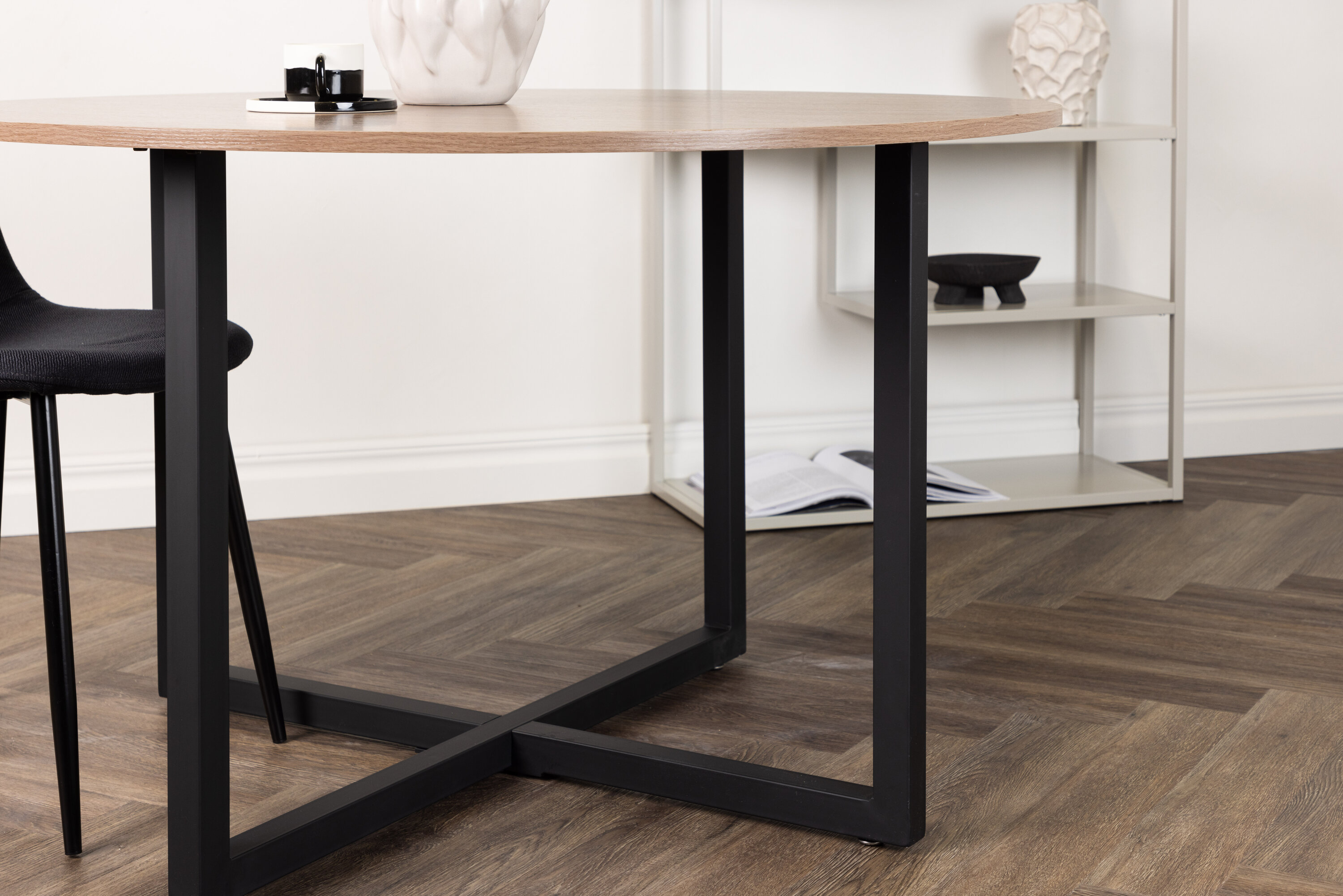 Der Esstisch Durango hat einladende, runde Formen und ein klassisches Design, das im Laufe der Zeit steht! Der Tisch gehört zur Venture Home Kollektion, hat eine walnussfarbene Tischplatte aus MDF und gerade Tischbeine aus schwarzem Stahl. Kombiniere es mit ein paar köstlichen Esszimmerstühlen und du bekommst eine komplette Essensgruppe ins Herz des Hauses - hier landet niemand am Rande!
