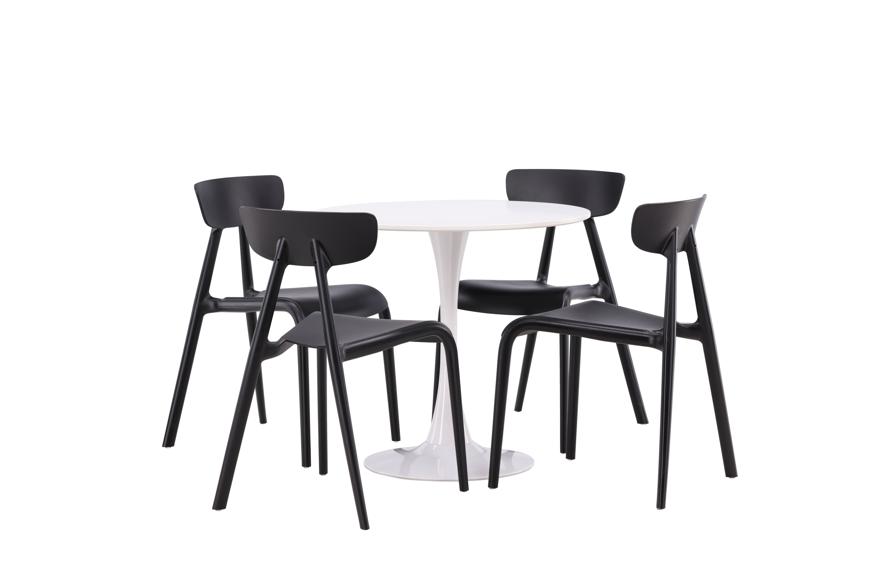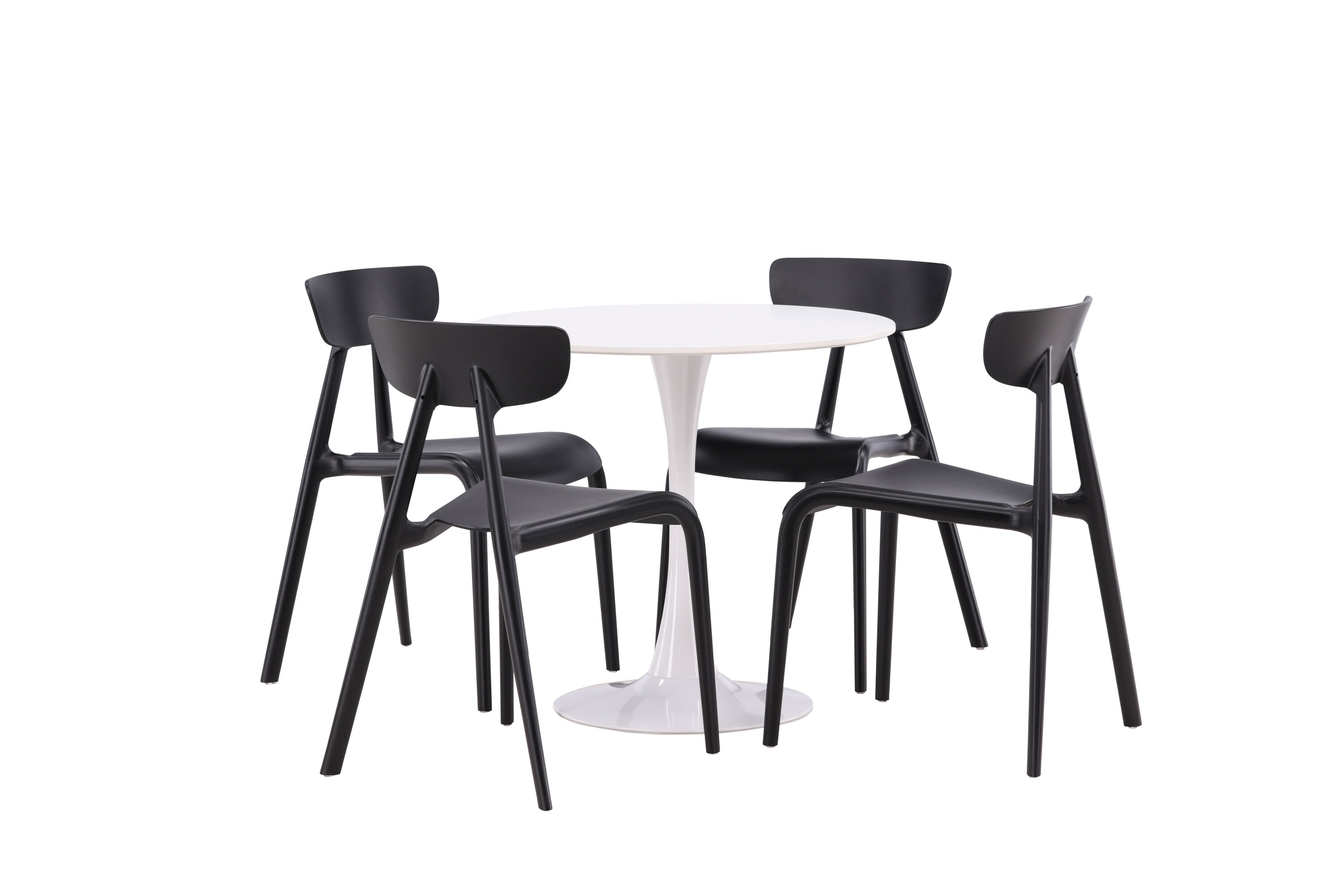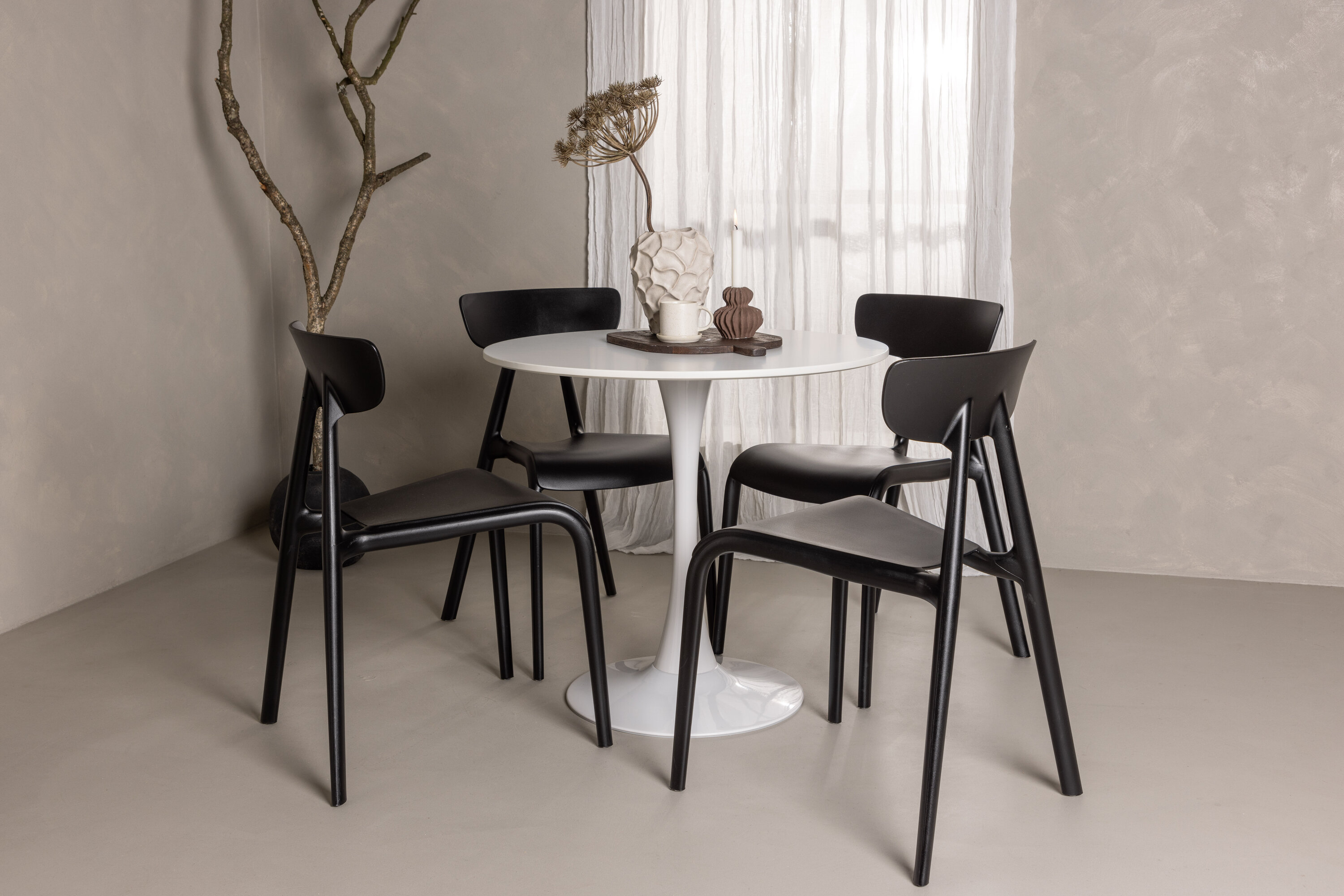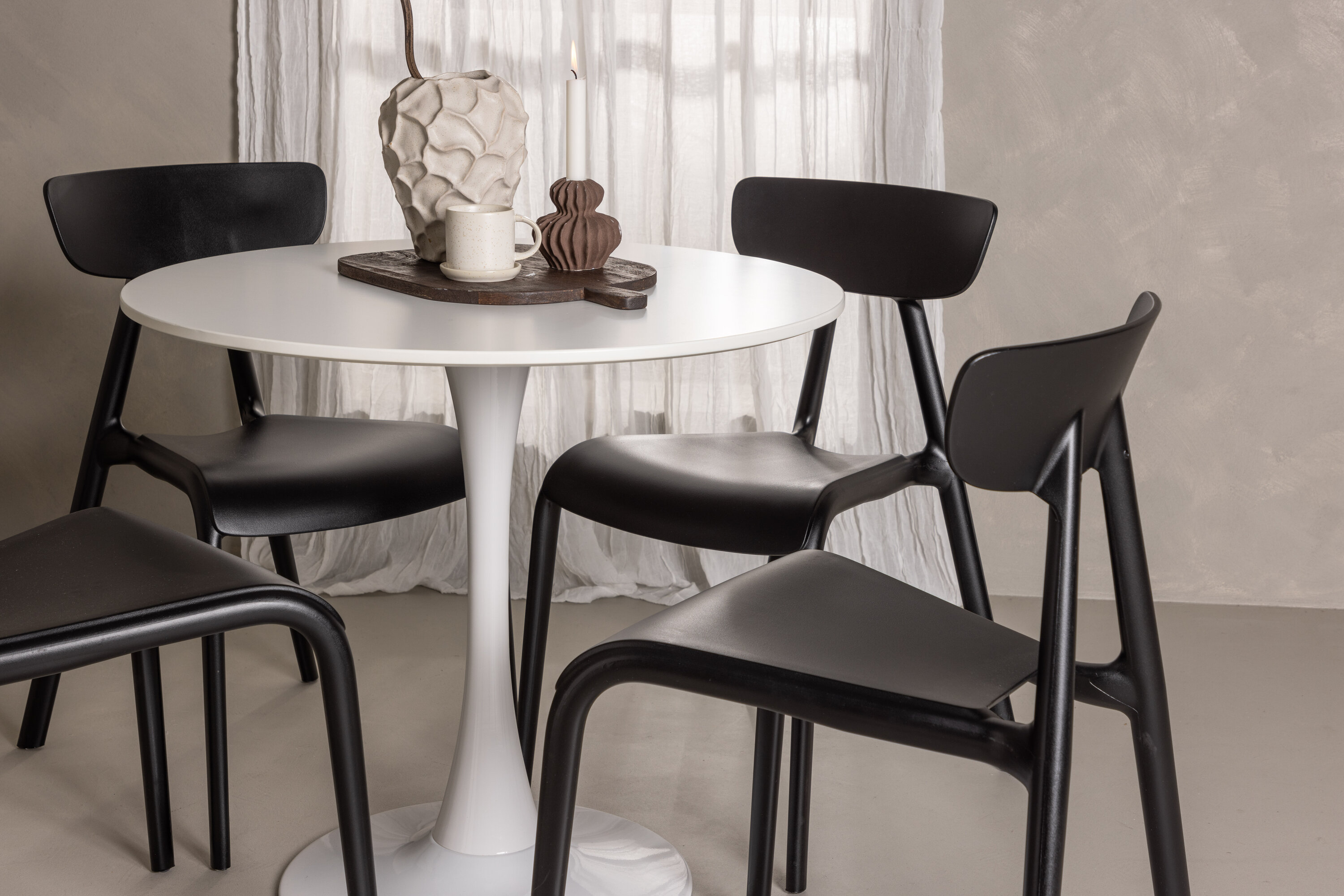 Gepaart mit den raffinierten Ursholmen-Stühlen in tiefem Schwarz entsteht ein visueller Kontrast, der wirklich ins Auge fällt. Die Stühle sind aus Kunststoff gefertigt, wodurch sie leicht zu reinigen und langlebig genug für den täglichen Gebrauch sind. Das schlichte und schlanke Design ermöglicht es, dass sich das Ess-Set nahtlos in verschiedene Einrichtungsstile und die meisten Häuser einfügt.
