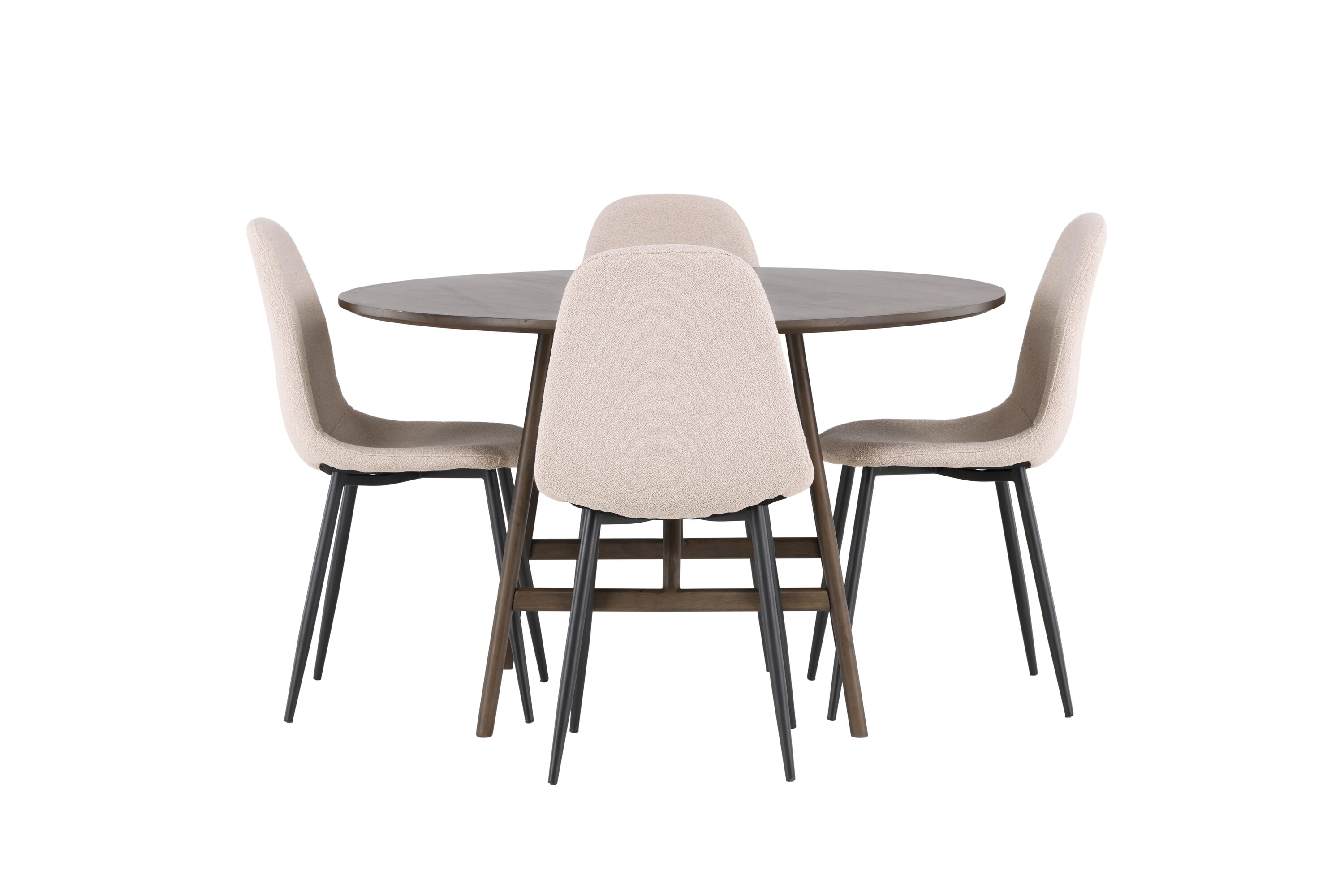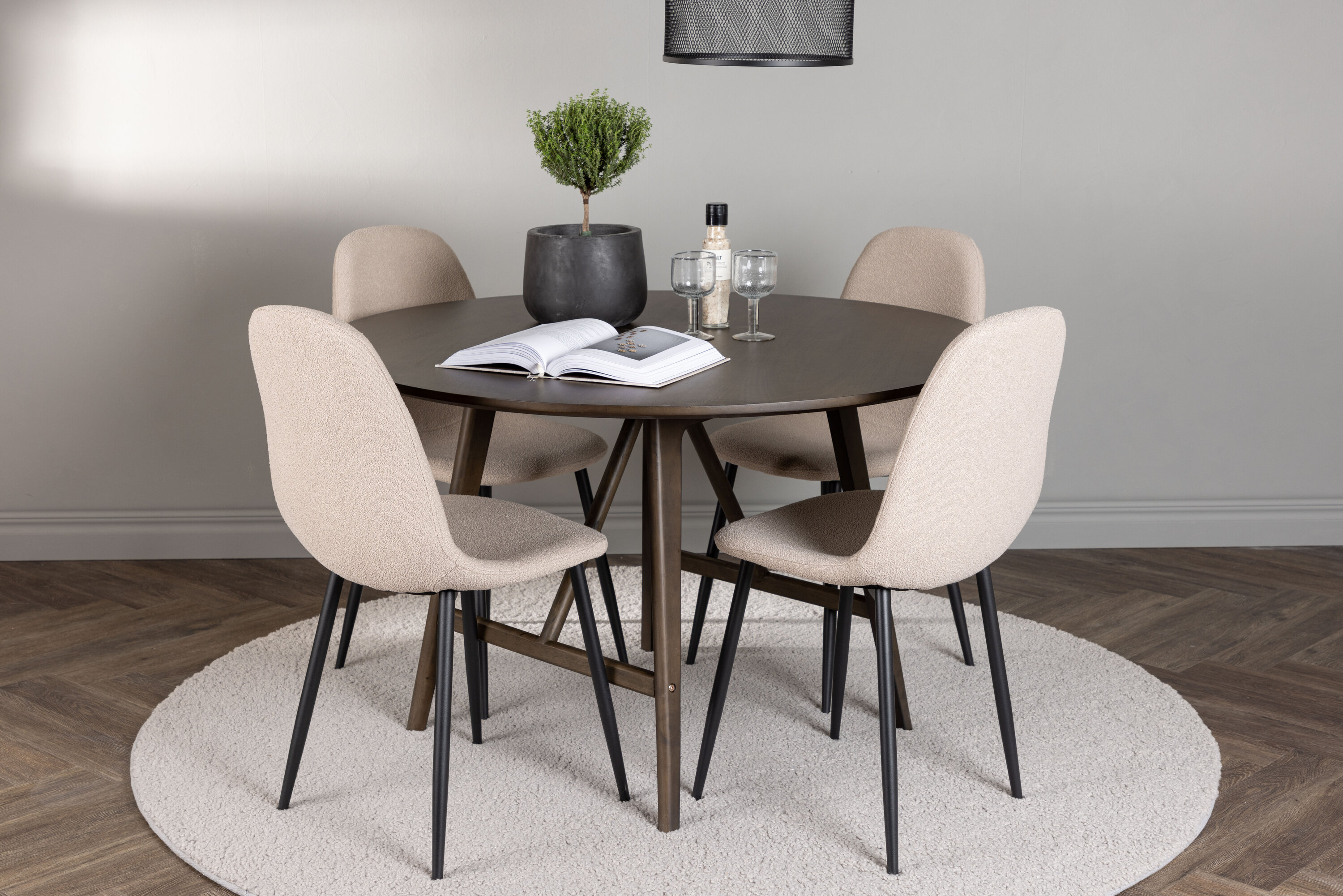 Zusammen mit den beigen Esszimmerstühlen aus der Serie Polar entsteht die perfekte Farbkombination für ein einladendes und charmantes Wohnzimmer. Die Stühle sind mit luxuriösem Bouclé-Stoff bezogen, der ein sofortiges Gefühl von modernem Komfort vermittelt. Mit ihren schwarzen Stuhlbeinen wird der Kontrast verstärkt und verleiht der Essgruppe eine stilvolle Note.