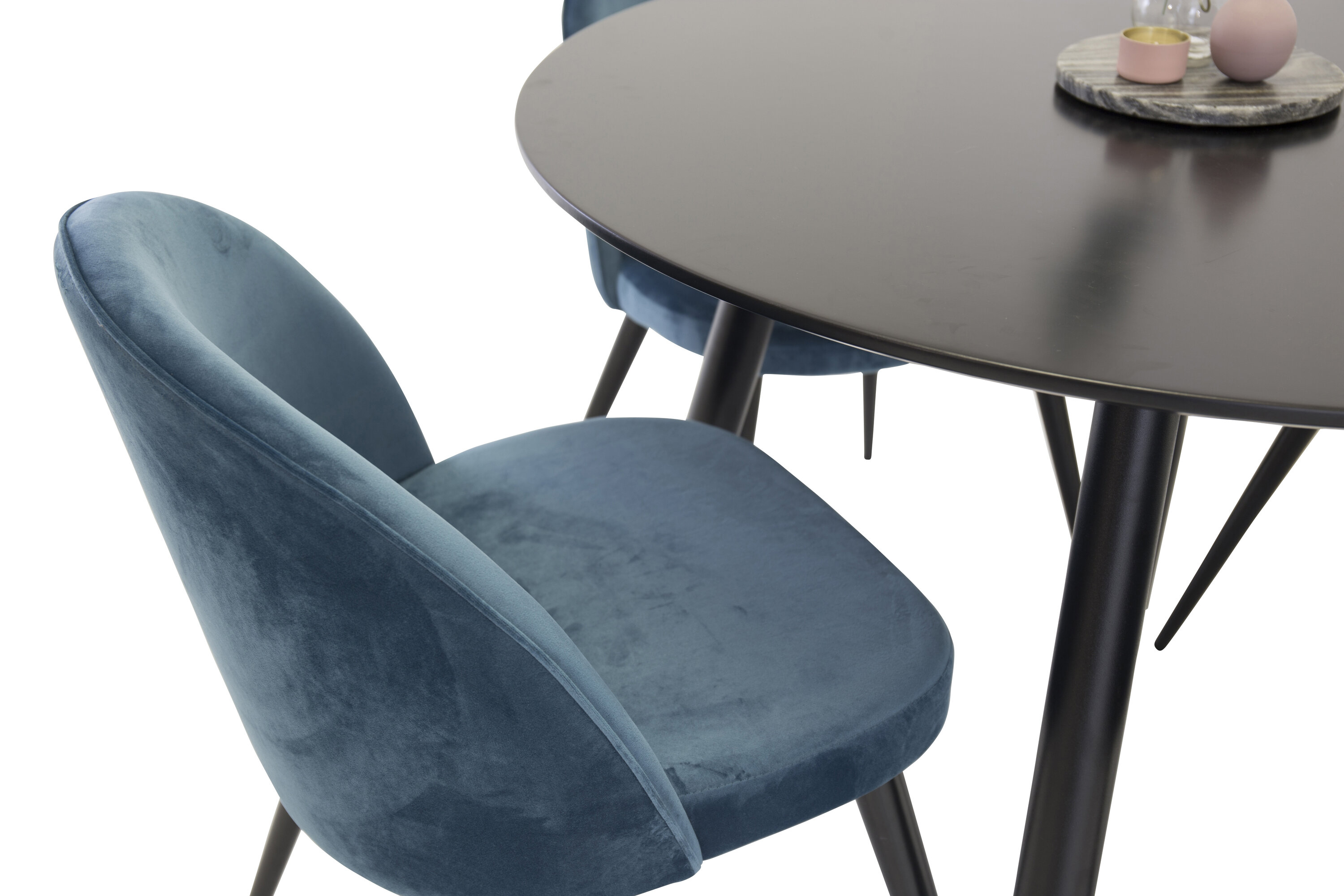 Die Kombination verschiedener Farben und Materialien macht alles in der Regel zum großen Erfolg! Hier kombinieren wir den runden Esstisch Plaza mit den köstlichen blauen Esstischen Velvet. Freuen Sie sich in Zukunft auf viele Dinner-Einladungen bei Ihrer neuen Essensgruppe.
