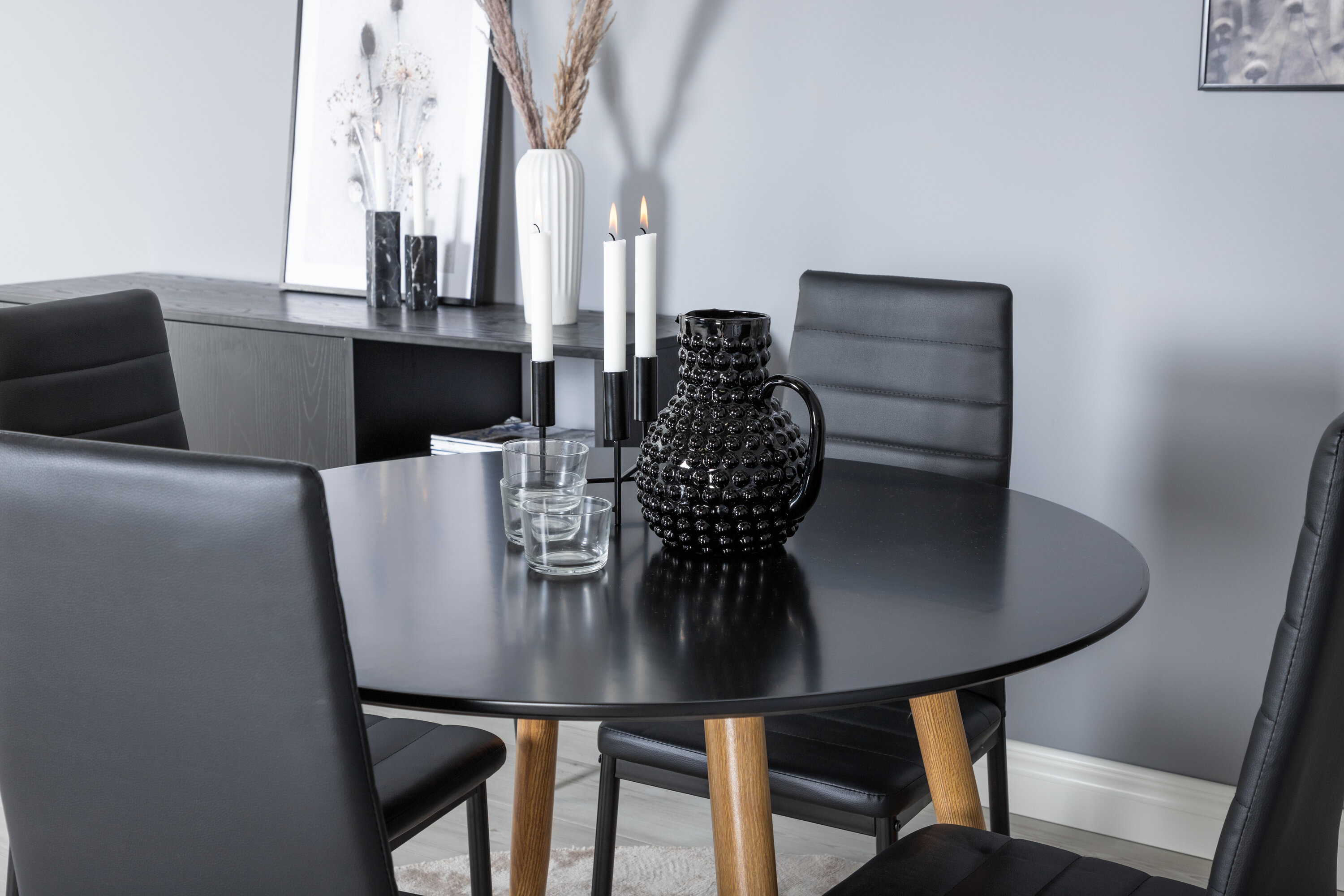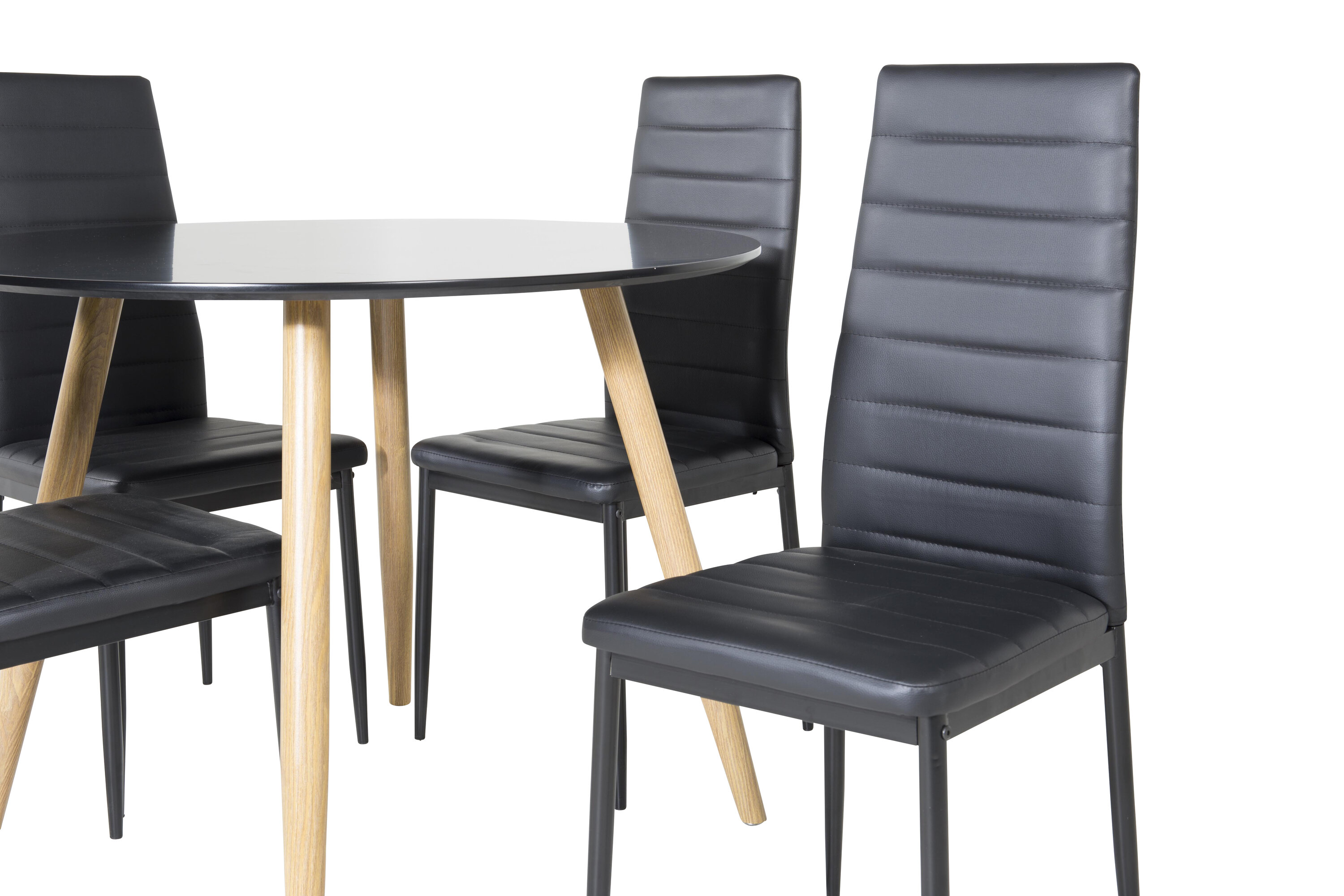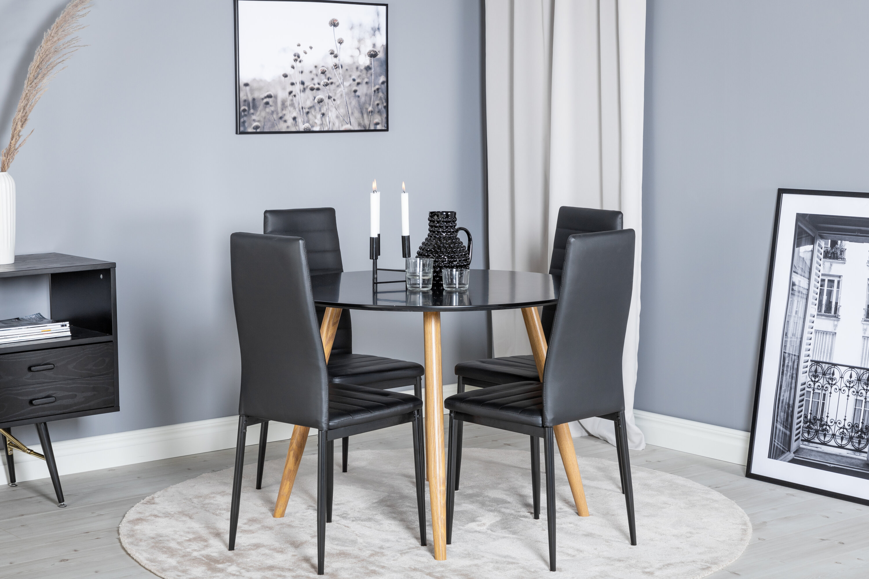 Modern und gemütlich! Der Esstisch Plaza zusammen mit den schlanken Essstühlen gibt dir eine Essgruppe, die sich nach zu Hause sehnt. Die Stühle sind robust und gut gewachsen - hier sitzt man gerne lange und genießt die Gesellschaft guter Freunde!