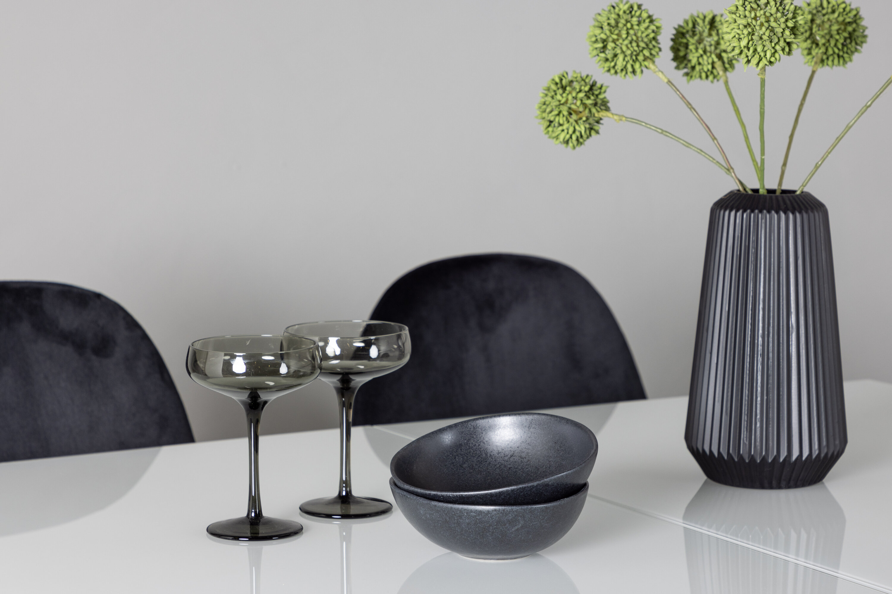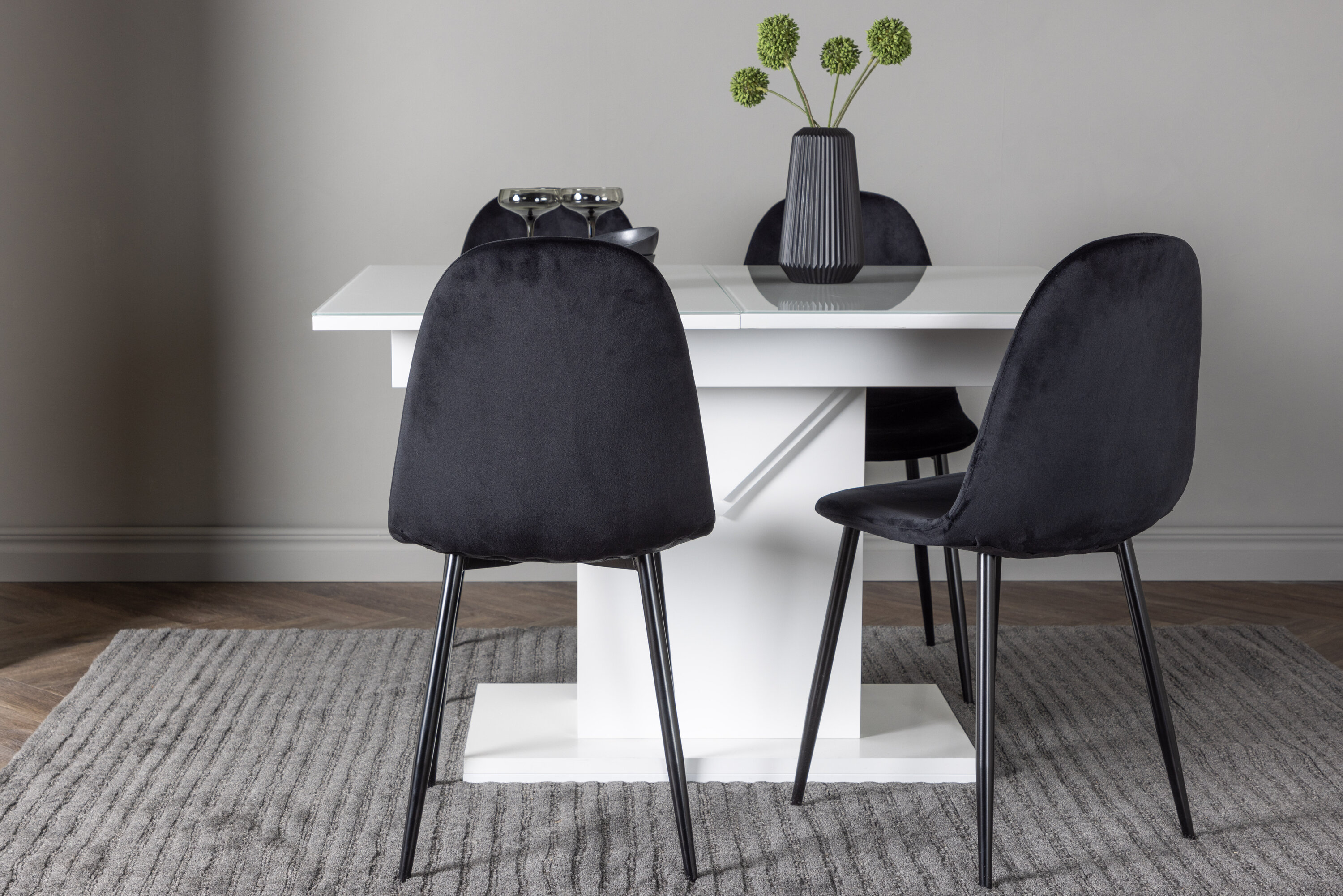 Mit ihrem voll gepolsterten Design und den schwarz pulverbeschichteten Metallbeinen vereinen die Esszimmerstühle Stil mit Komfort. Die abgerundete Rückenlehne und der Sitz aus schwarzem Samt mit weicher Polsterung sorgen für ein luxuriöses Gefühl und ermöglichen es Ihnen, bei langen Mahlzeiten oder geselligen Anlässen bequem zu sitzen. Was will man mehr? Hier bekommen Sie alles, was Sie für ein gemütliches und schickes Ess-Set brauchen!