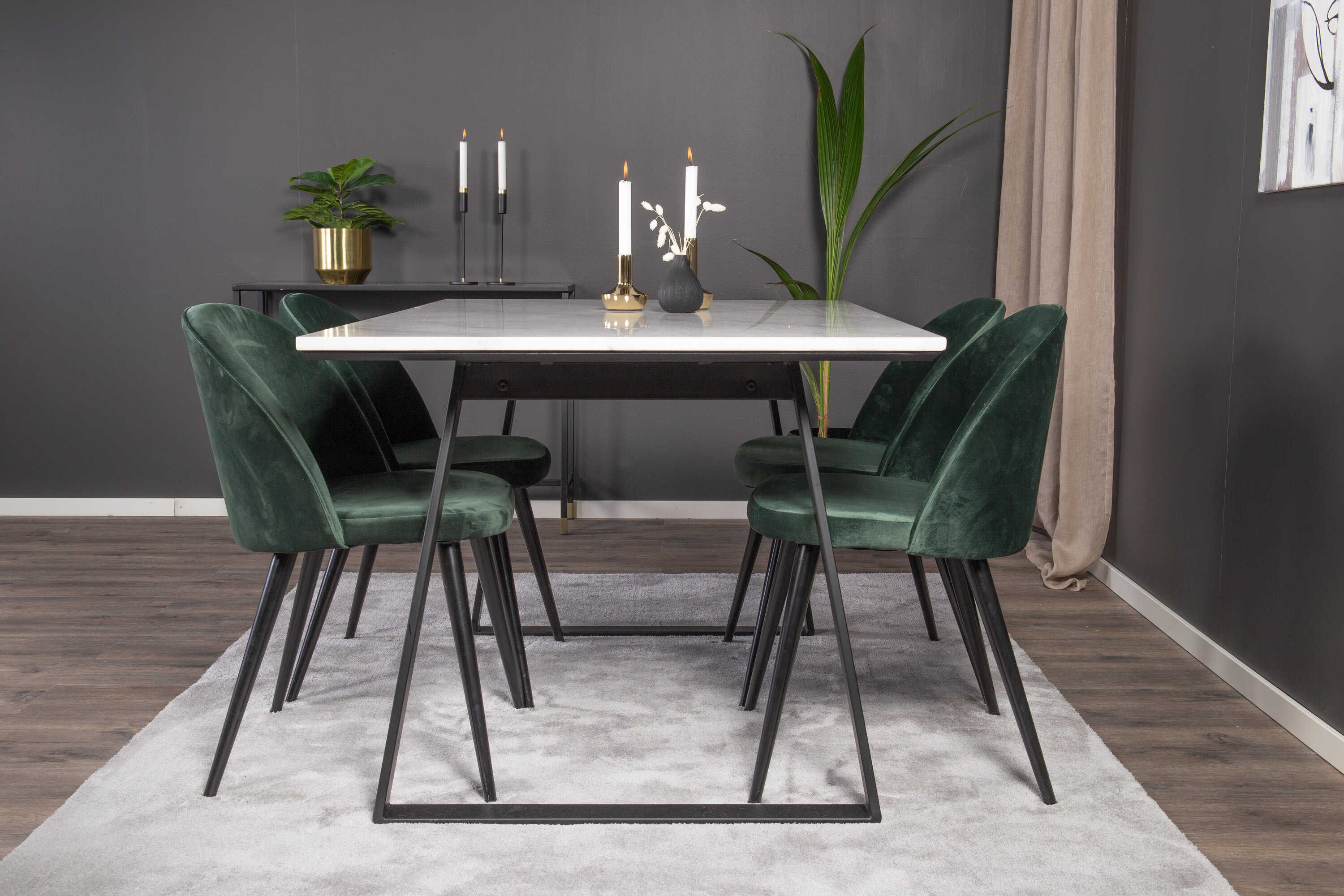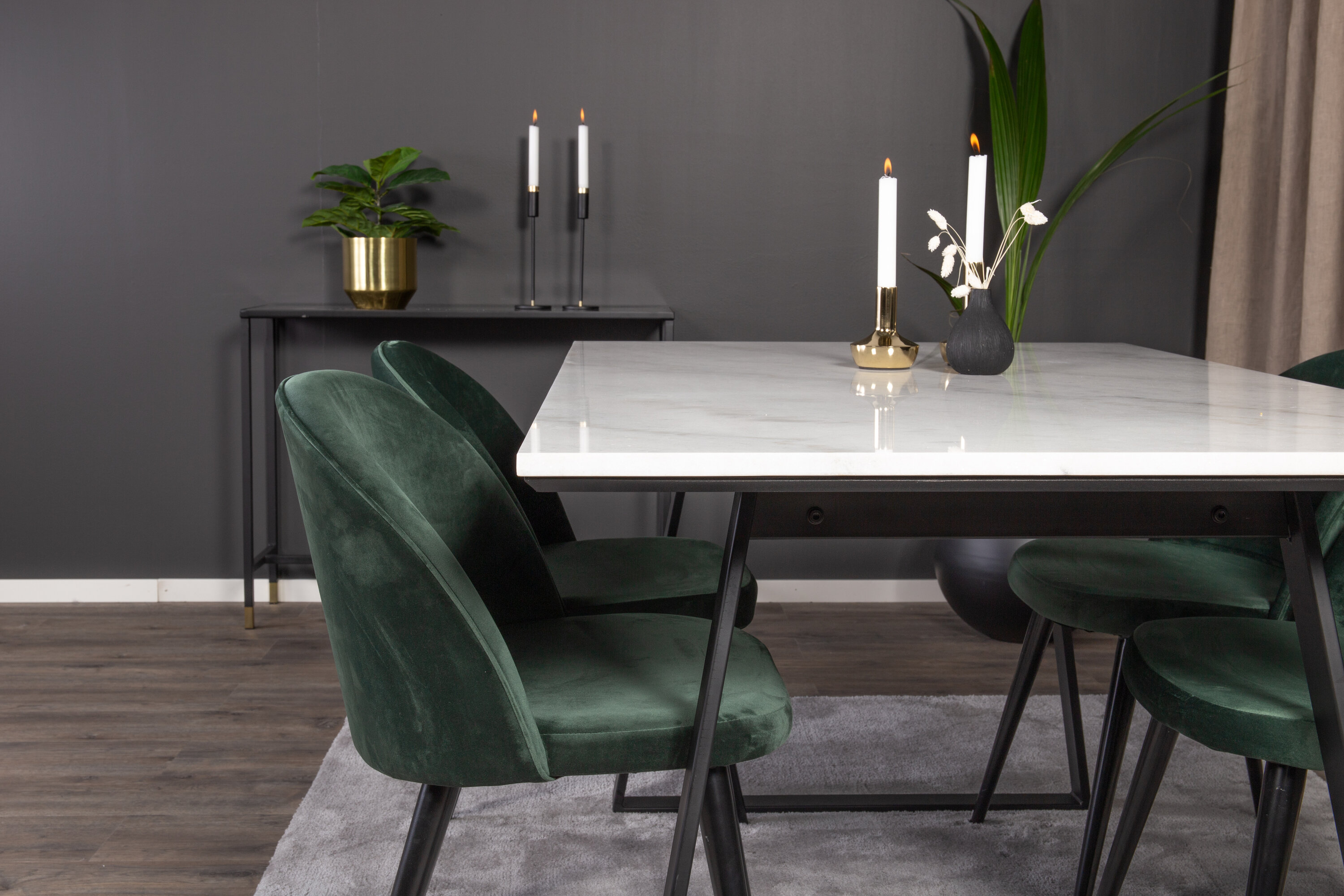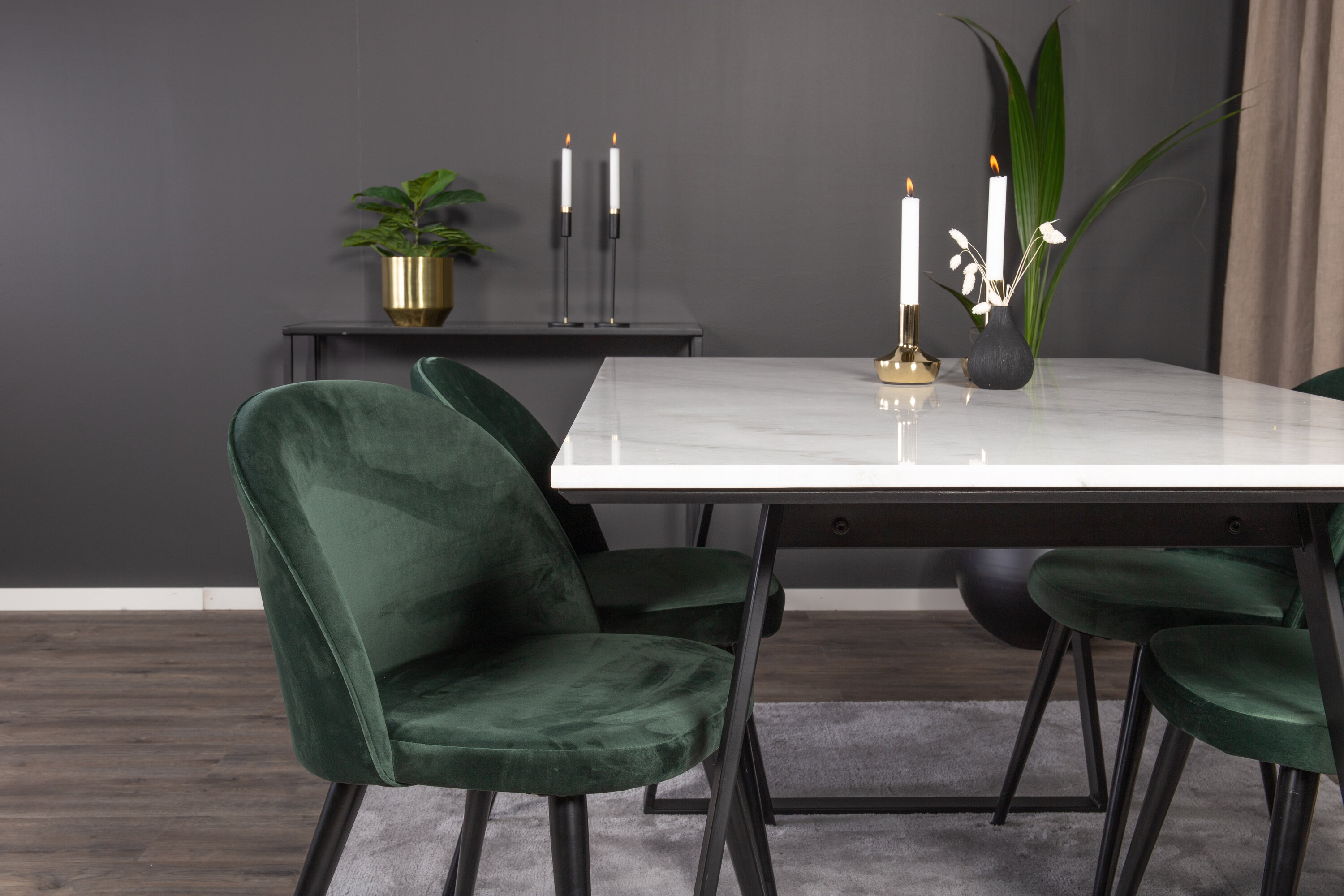 Estelle, gepflegt aus Marmor mit elegantem Fahrgestell. Zusammen mit den Stühlen in der Serie Velvet ist die Food-Gruppe, die für diejenigen gemacht ist, die ein gemütliches und modernes Gefühl im Haus schaffen wollen.