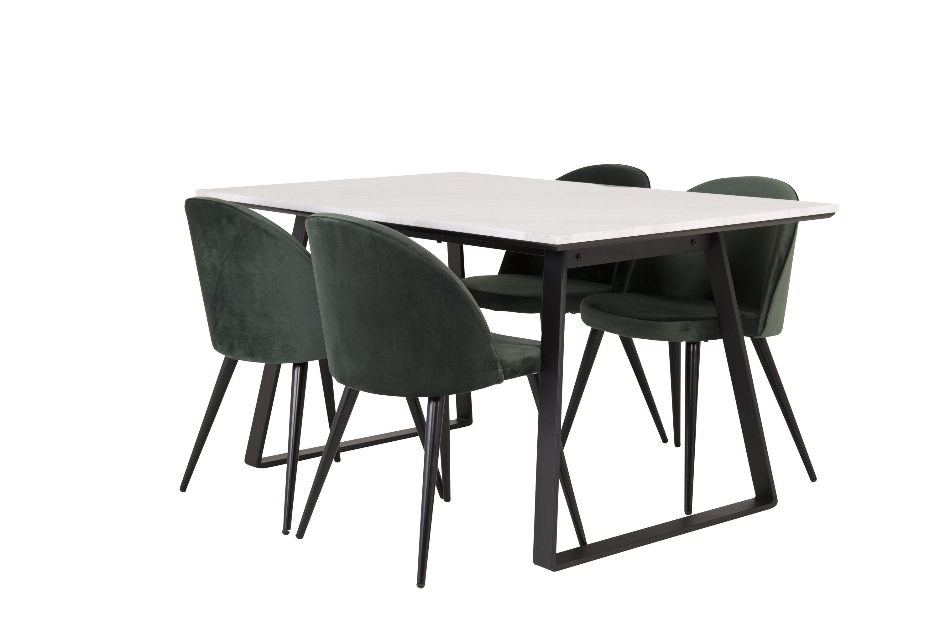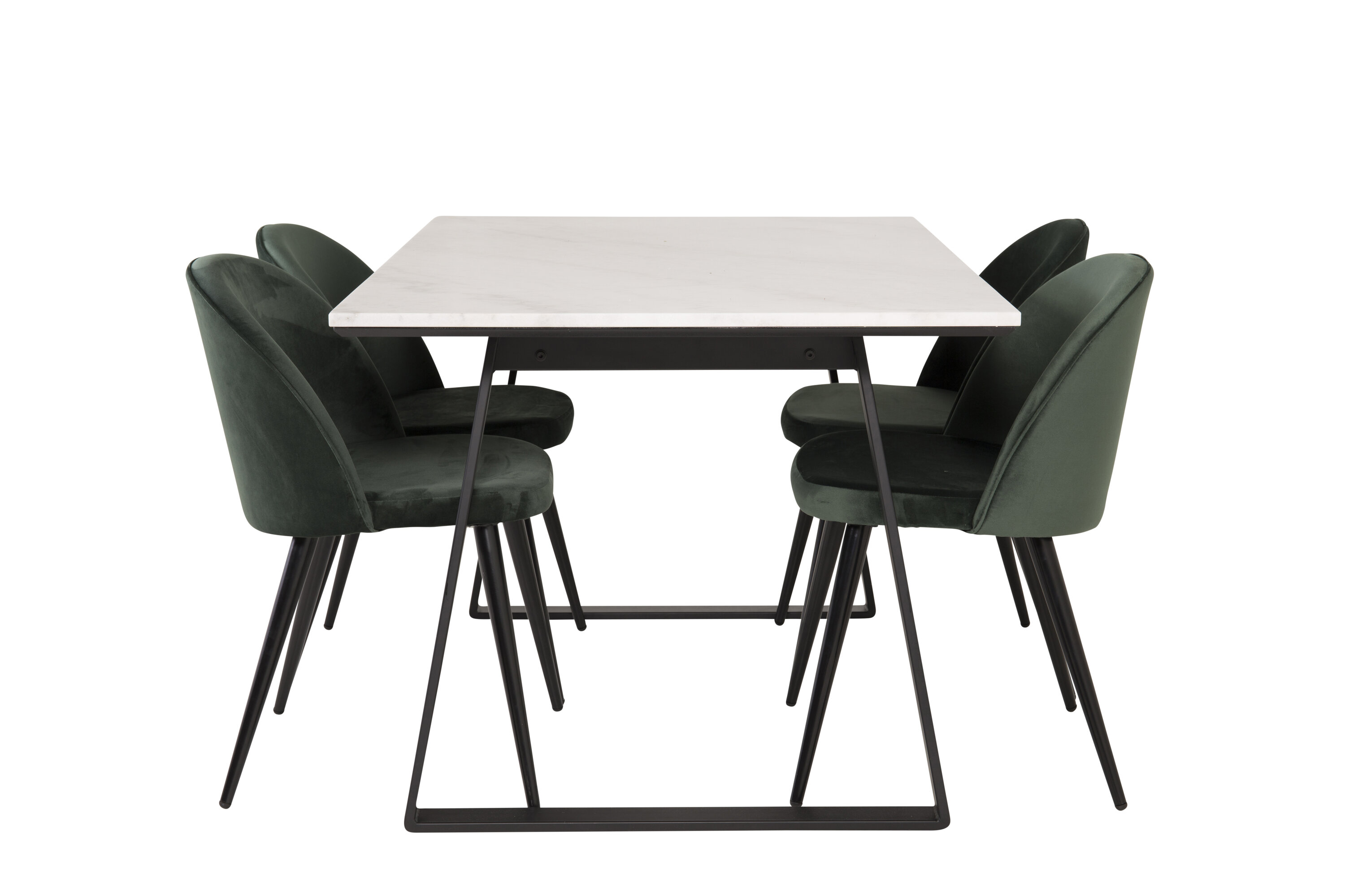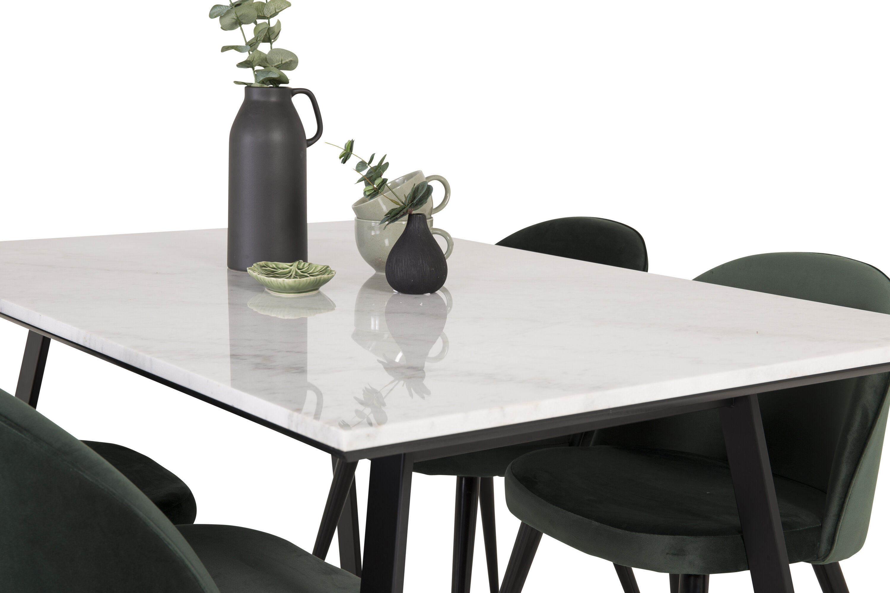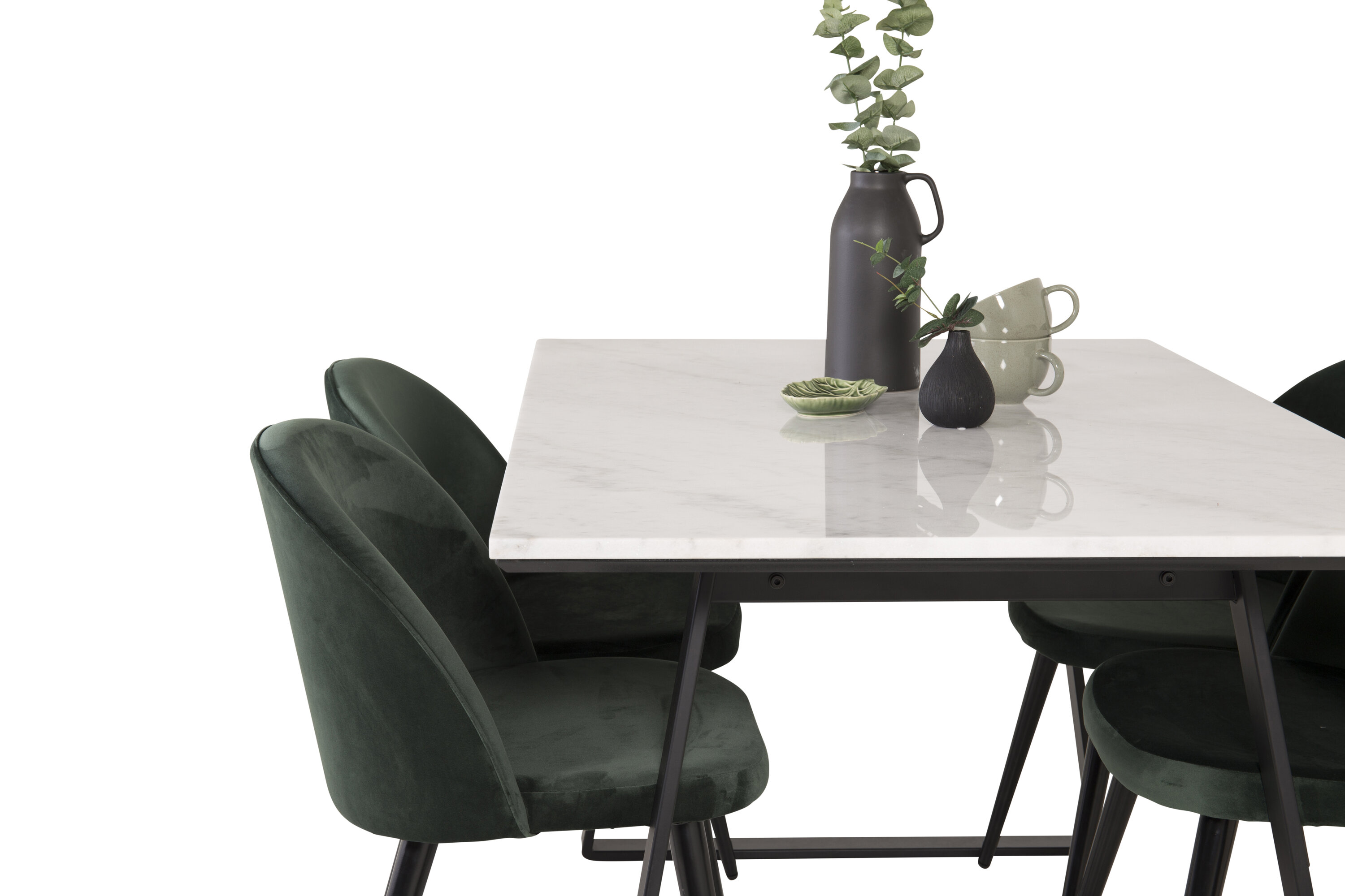 Estelle, gepflegt aus Marmor mit elegantem Fahrgestell. Zusammen mit den Stühlen in der Serie Velvet ist die Food-Gruppe, die für diejenigen gemacht ist, die ein gemütliches und modernes Gefühl im Haus schaffen wollen.