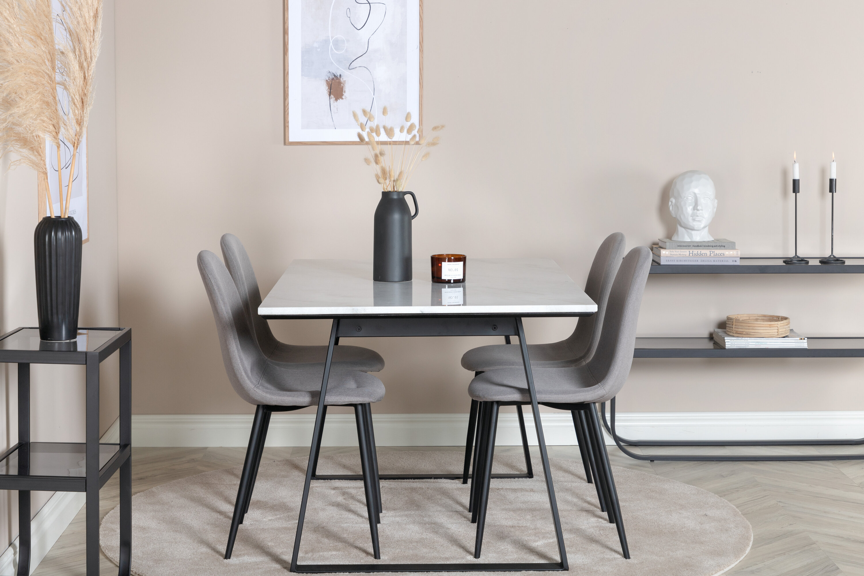 Modern und gemütlich! Der Esstisch Estelle zusammen mit den Polar-Essstühlen gibt dir eine Essgruppe, die sich nach zu Hause sehnt. Die Stühle sind robust und gut gewachsen - hier sitzt man gerne lange und genießt die Gesellschaft guter Freunde!