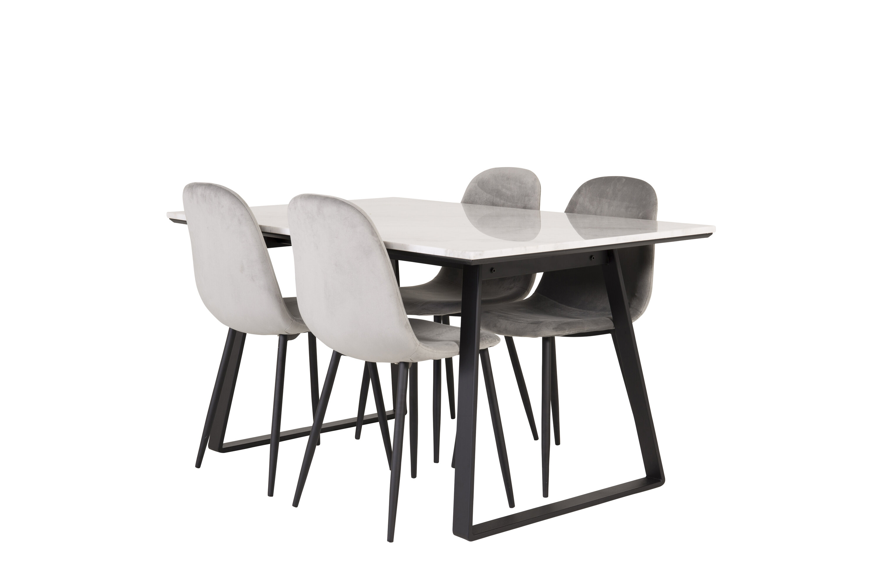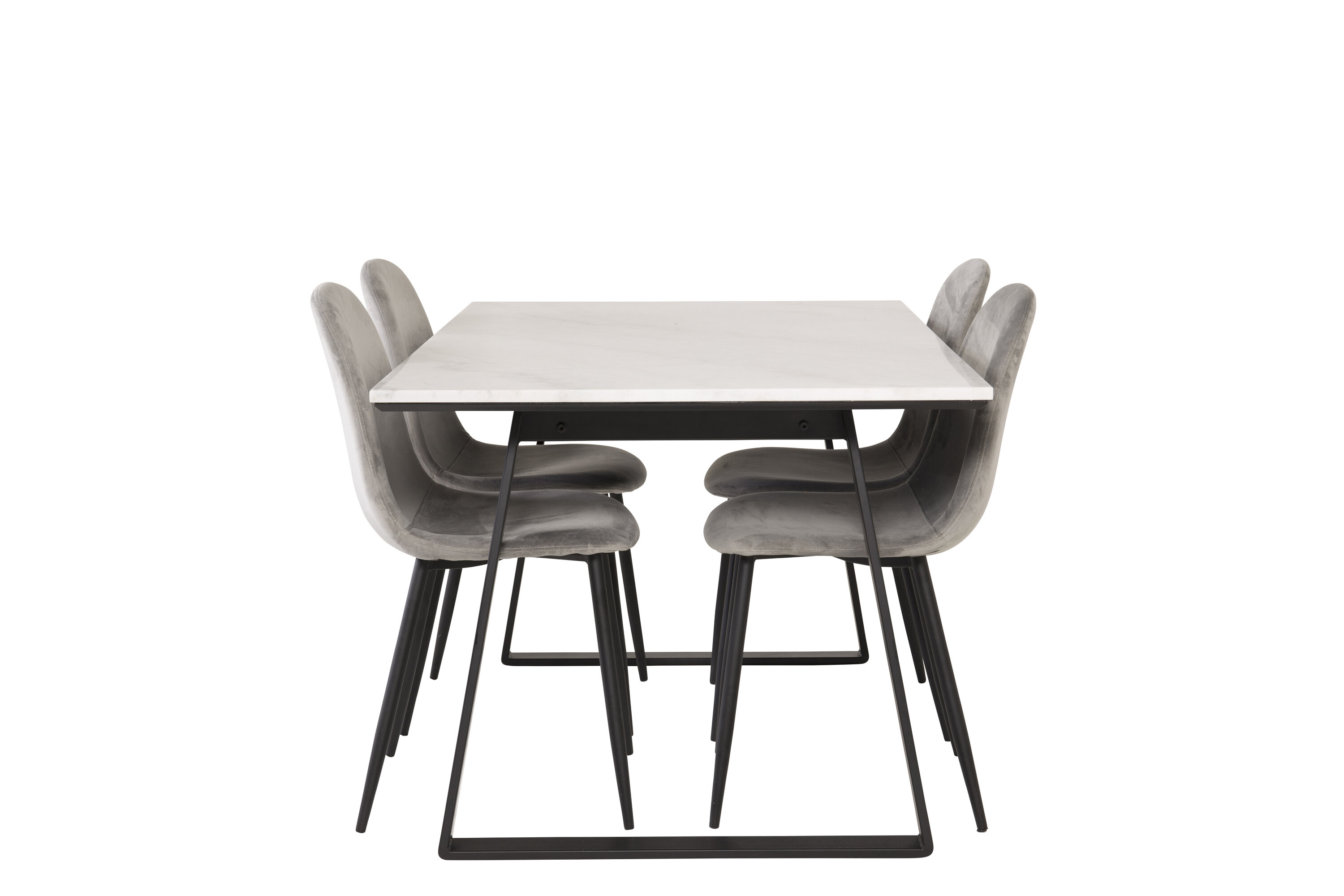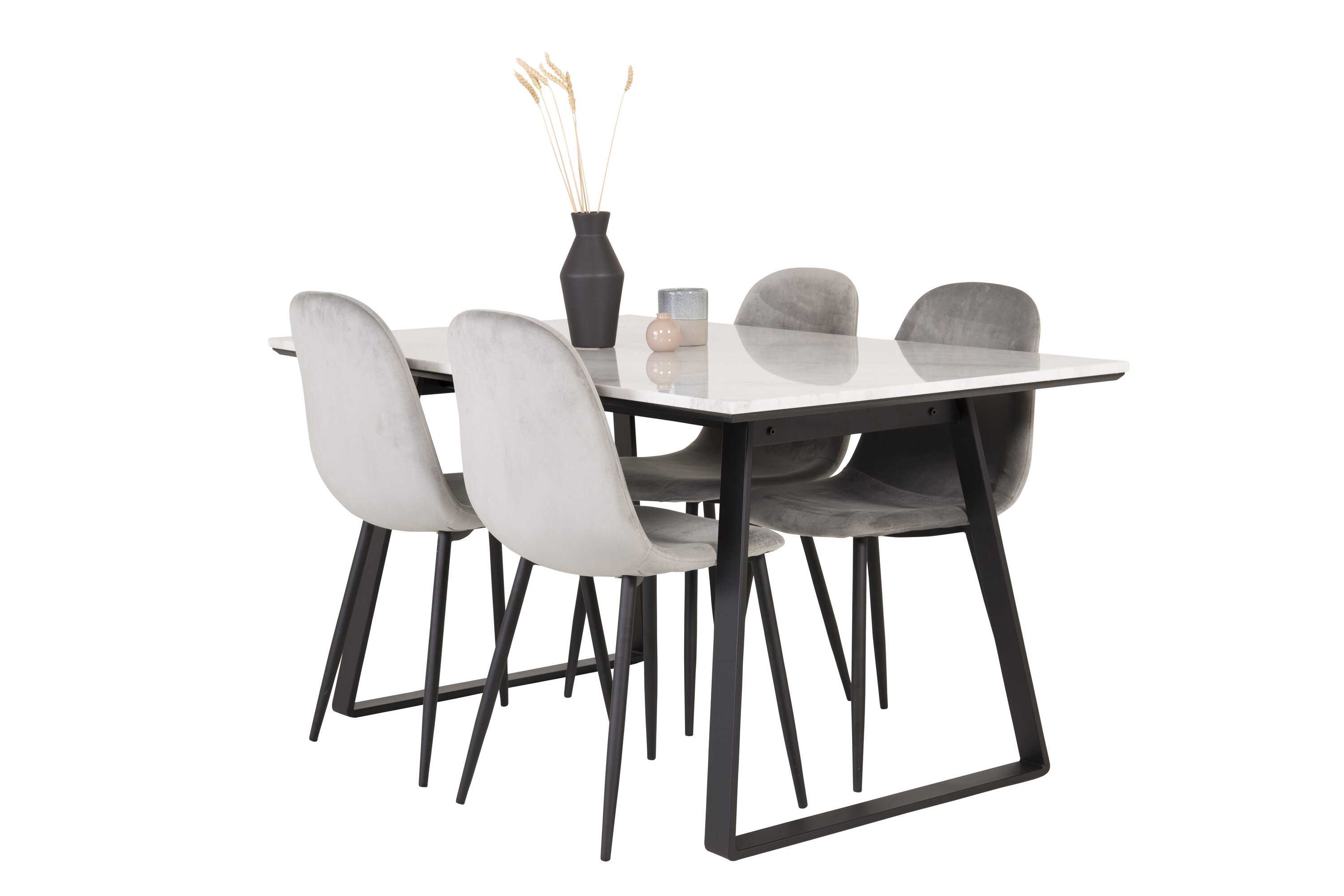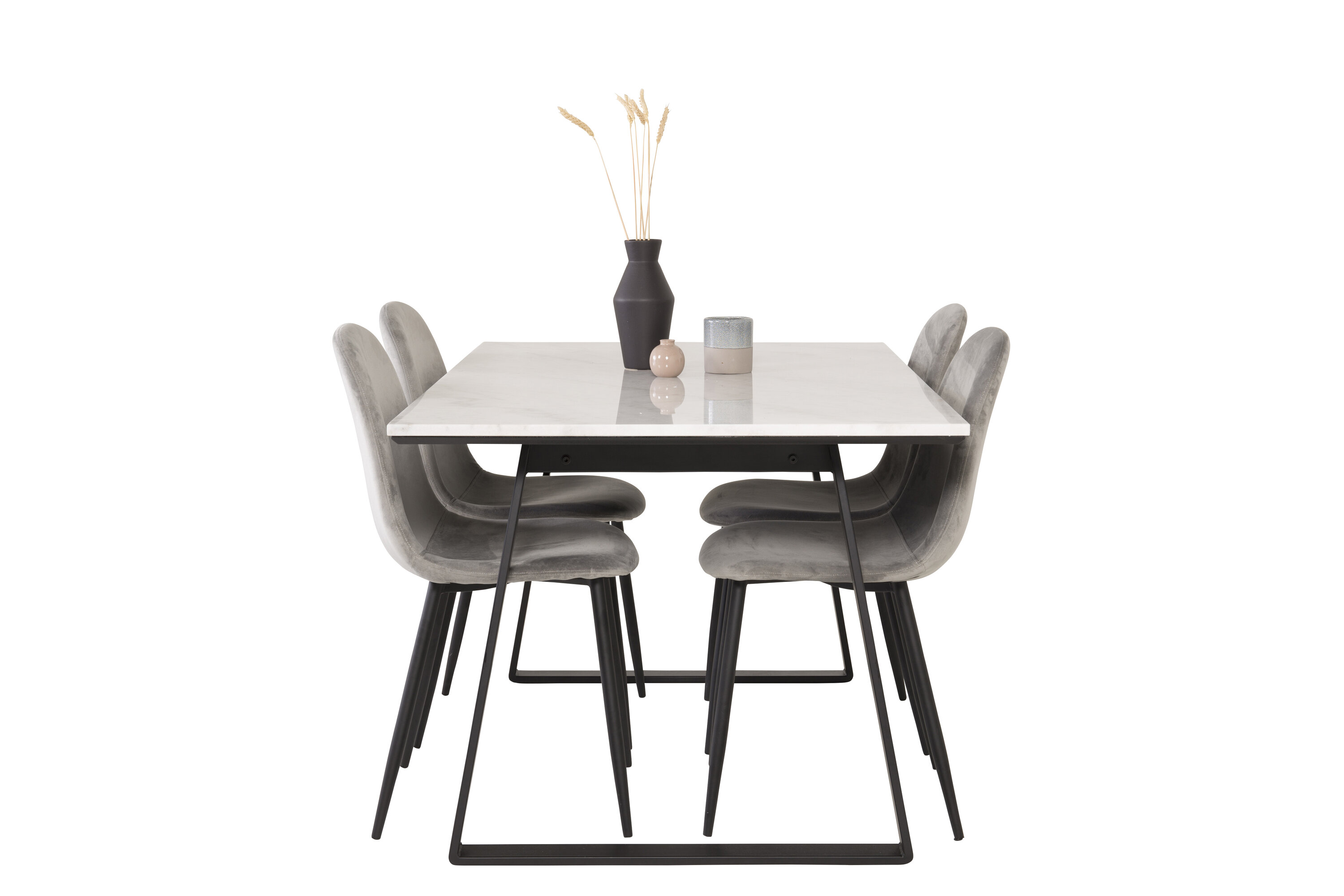 Unser köstlicher Esstisch Estelle in stilvoller Marmor-Optik zusammen mit unseren grauen Esstischen Polar. Verkleiden Sie Ihre Lebensmittelgruppe mit einem anderen Dekor rundum, so gut für den Alltag wie für eine Party!