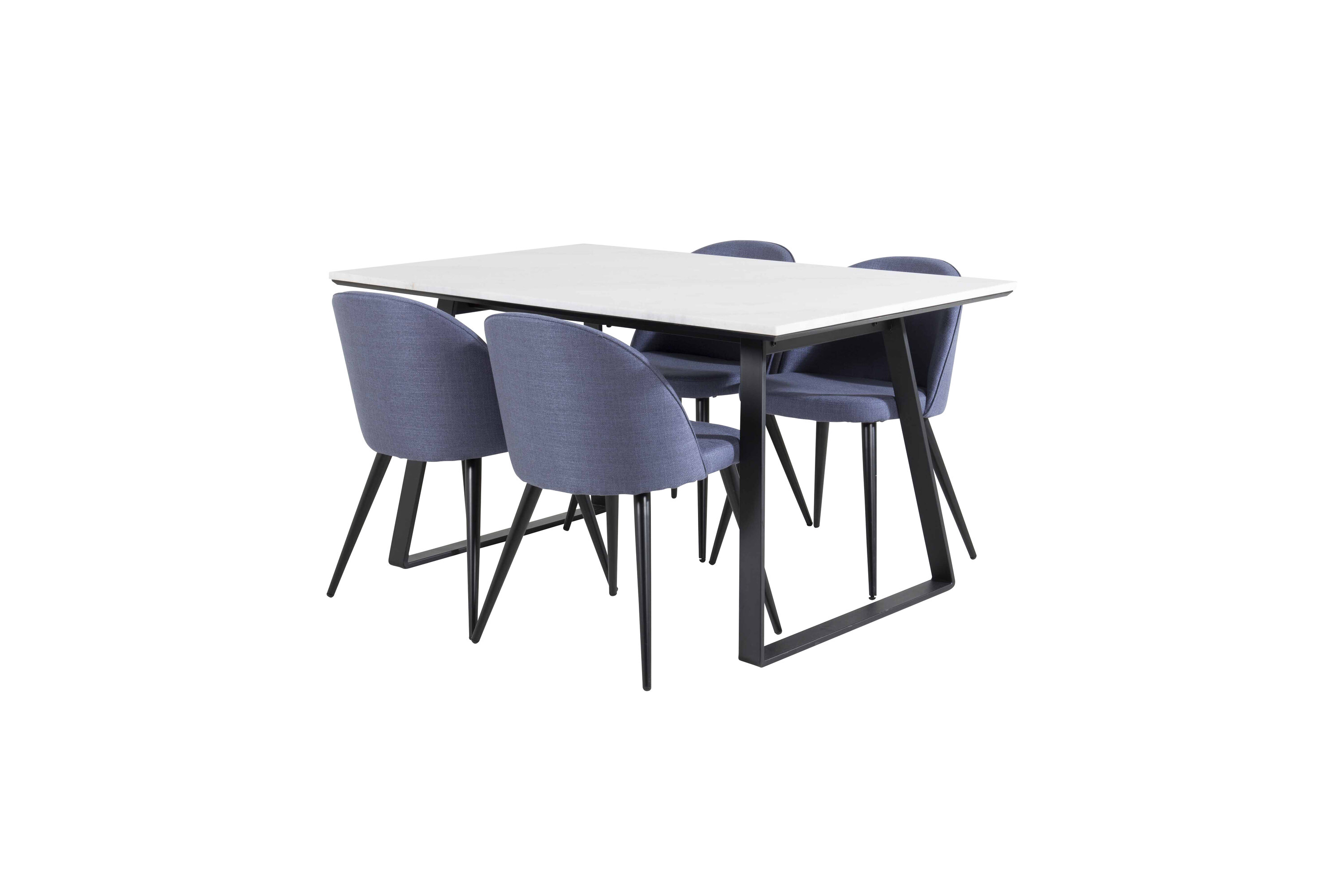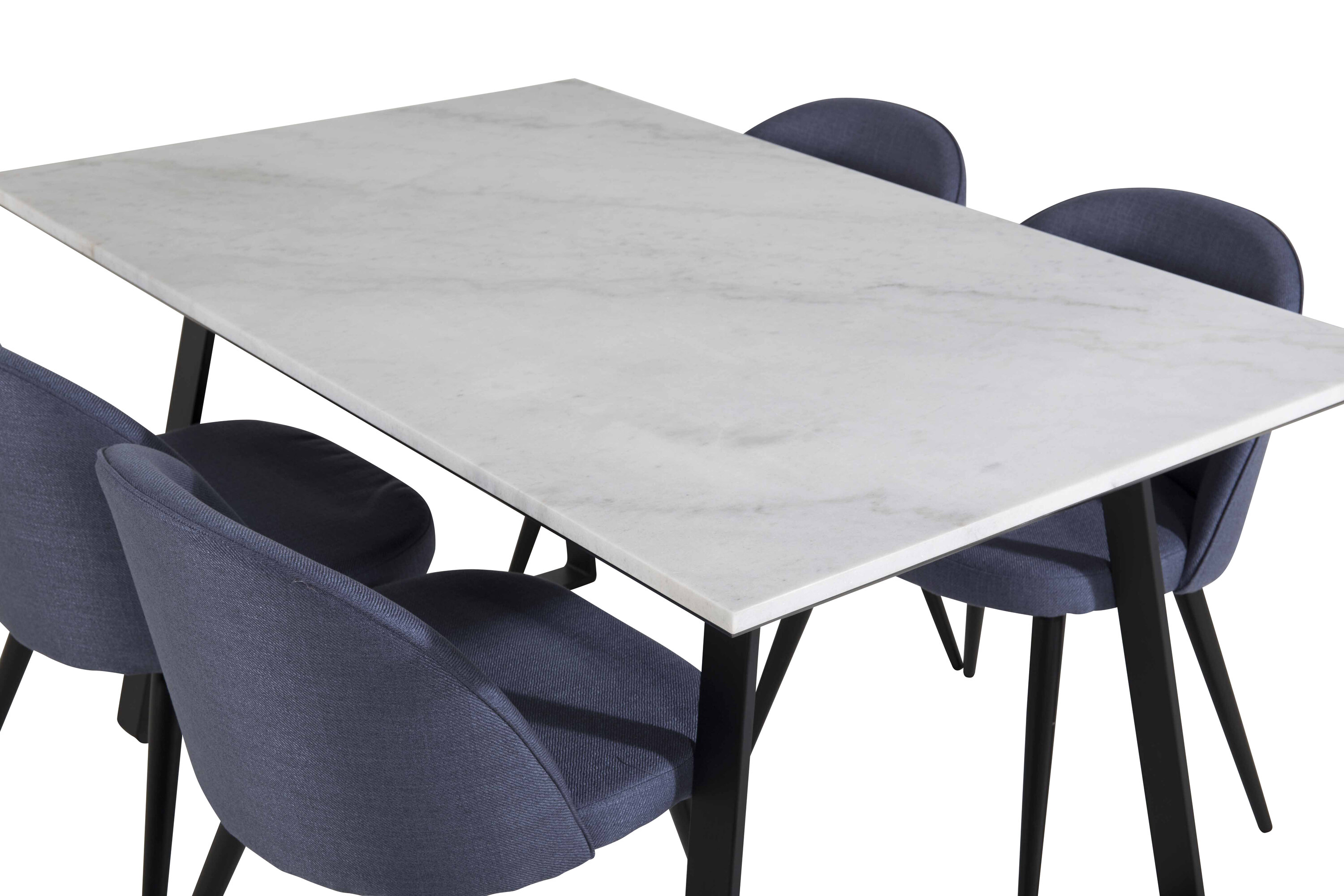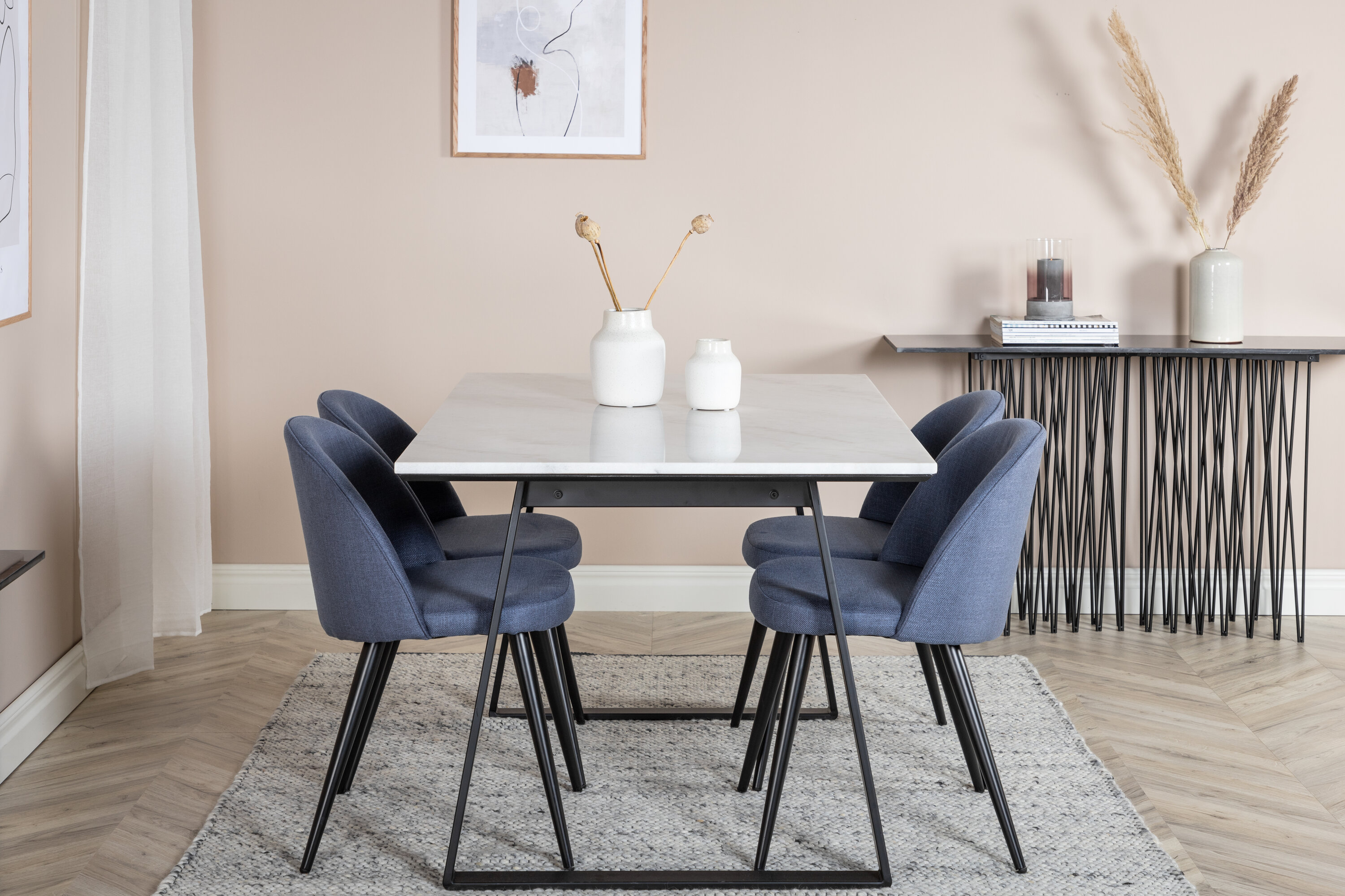 Esstisch Estelle in modernem und rustikalem Design mit seinen freundlichen blauen Esszimmerstühlen der Serie Velvet. Der klassische Ausdruck des Lebensmittelkonzerns bedeutet, dass er in den meisten Haushalten nach Hause geht. Lassen Sie die Lebensmittelgruppe zum natürlichen Treffpunkt des Hauses werden!