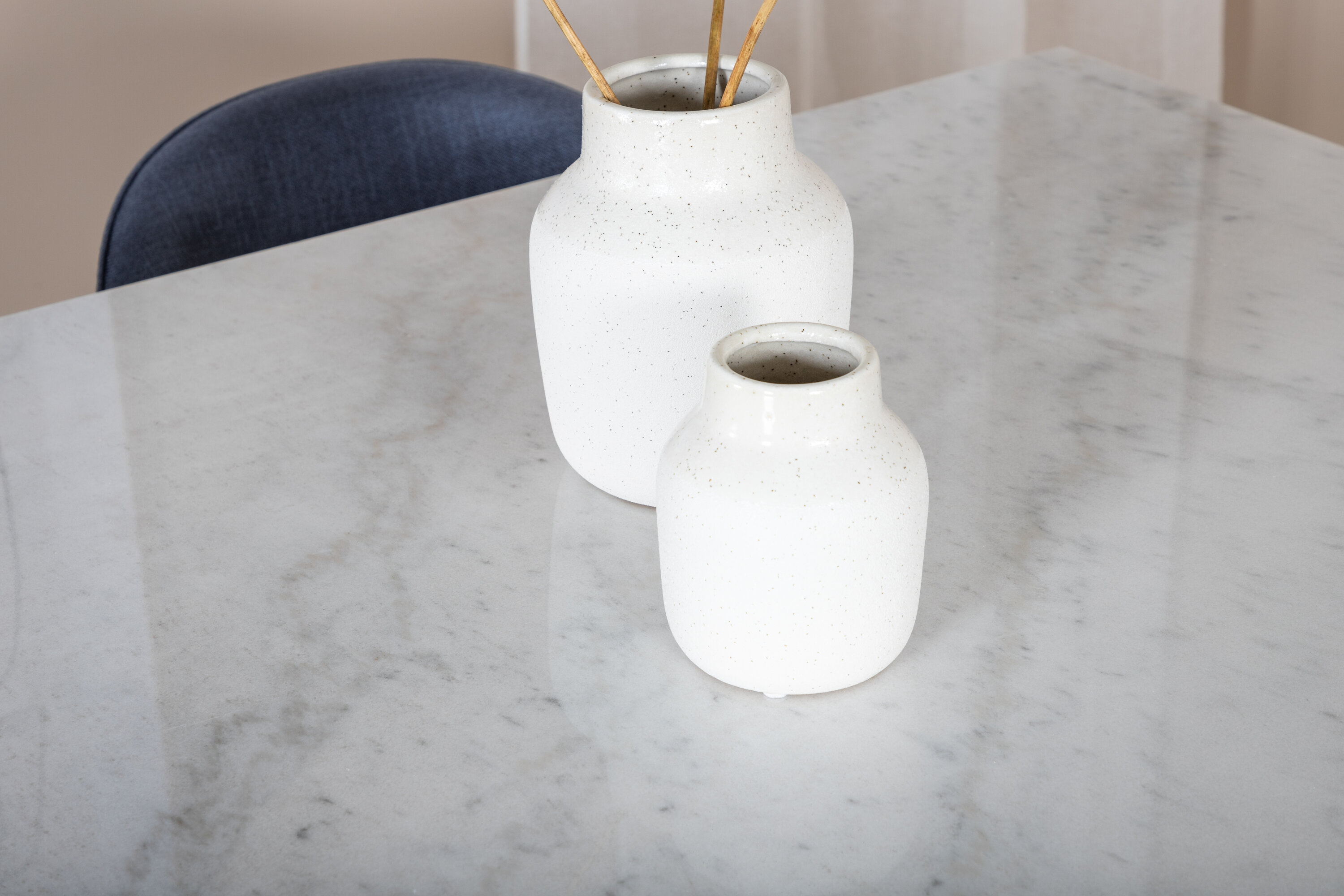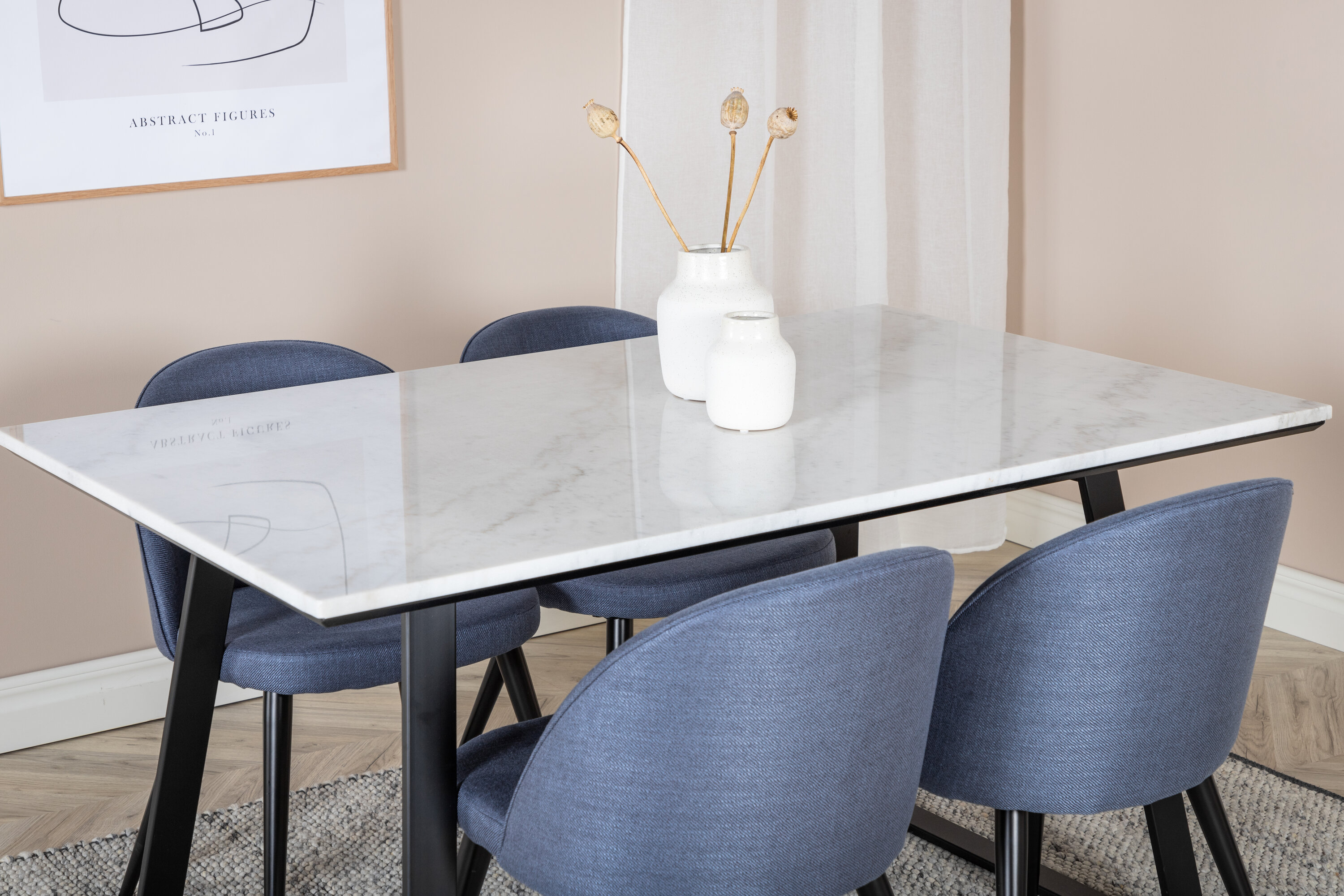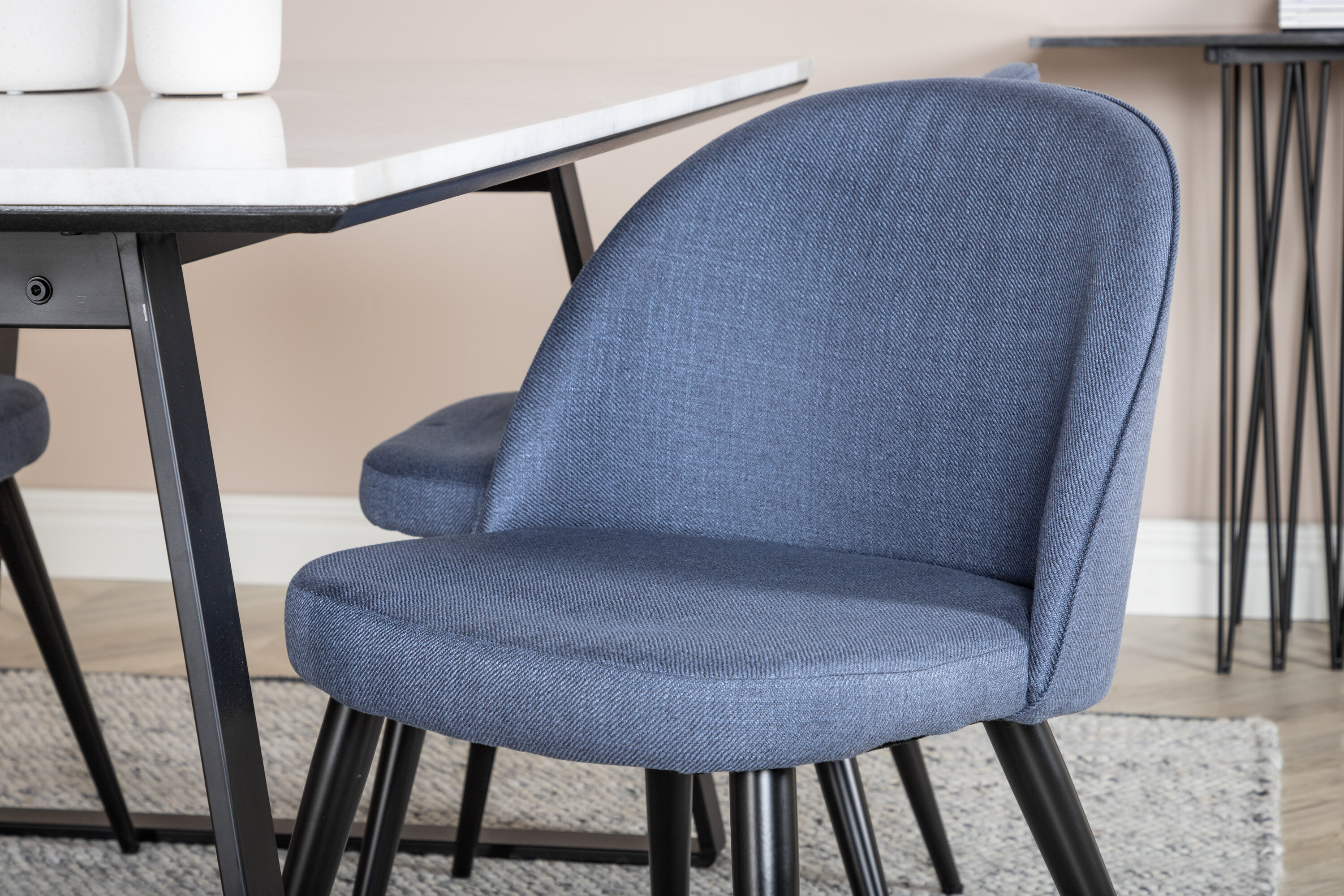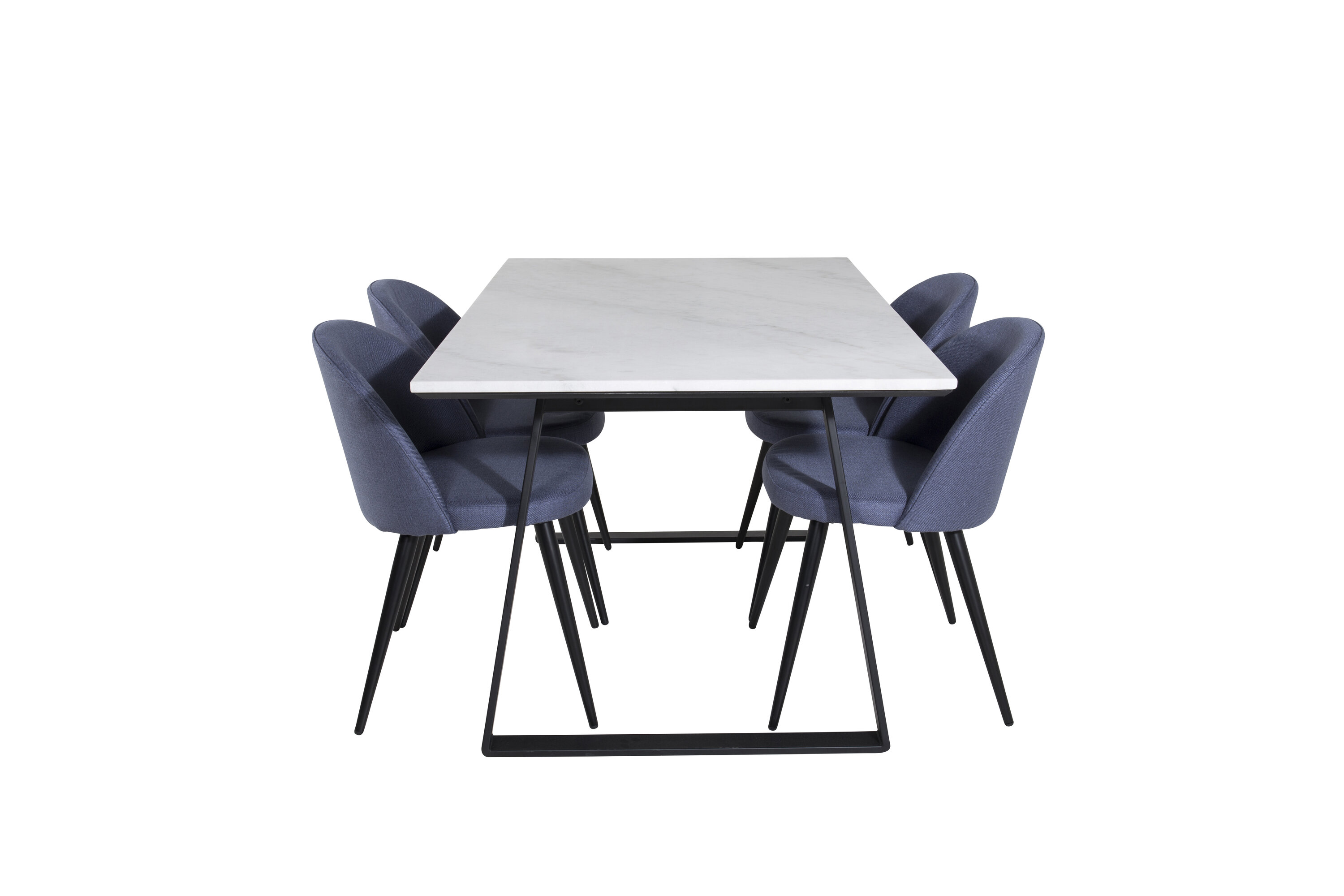 Esstisch Estelle in modernem und rustikalem Design mit seinen freundlichen blauen Esszimmerstühlen der Serie Velvet. Der klassische Ausdruck des Lebensmittelkonzerns bedeutet, dass er in den meisten Haushalten nach Hause geht. Lassen Sie die Lebensmittelgruppe zum natürlichen Treffpunkt des Hauses werden!
