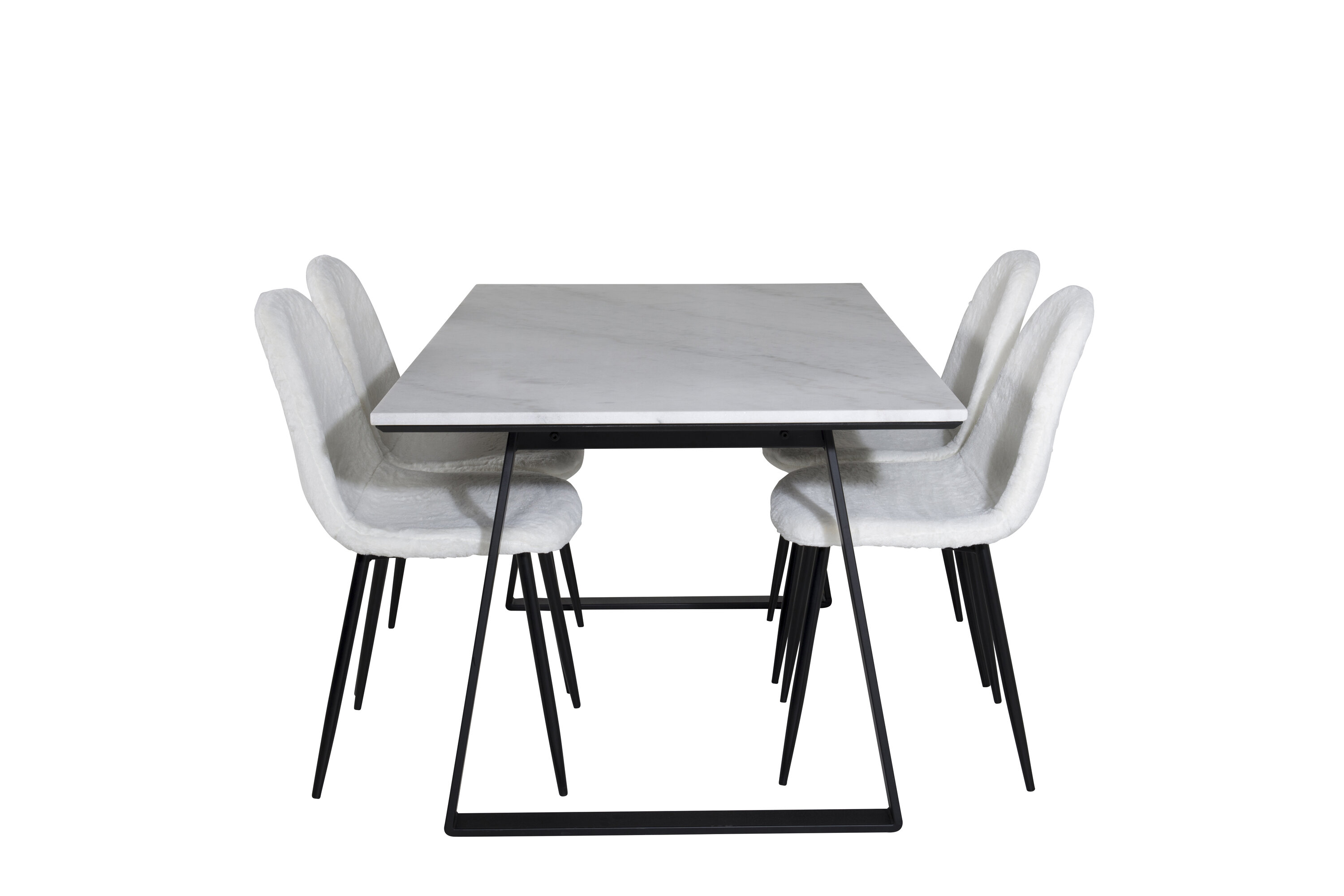 Esstisch Estelle in schlankem Design, dazu Esszimmerstühle Polar - die perfekte Kombination für alle, die eine trendige Food-Gruppe wollen. Der hohe Sitzkomfort der Stühle lädt zu langen und wunderbaren Momenten der Geselligkeit ein!