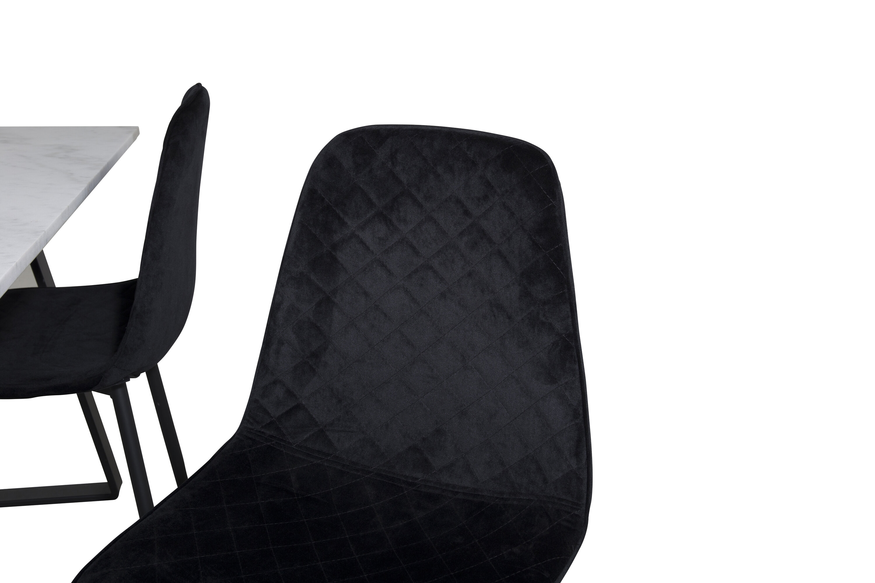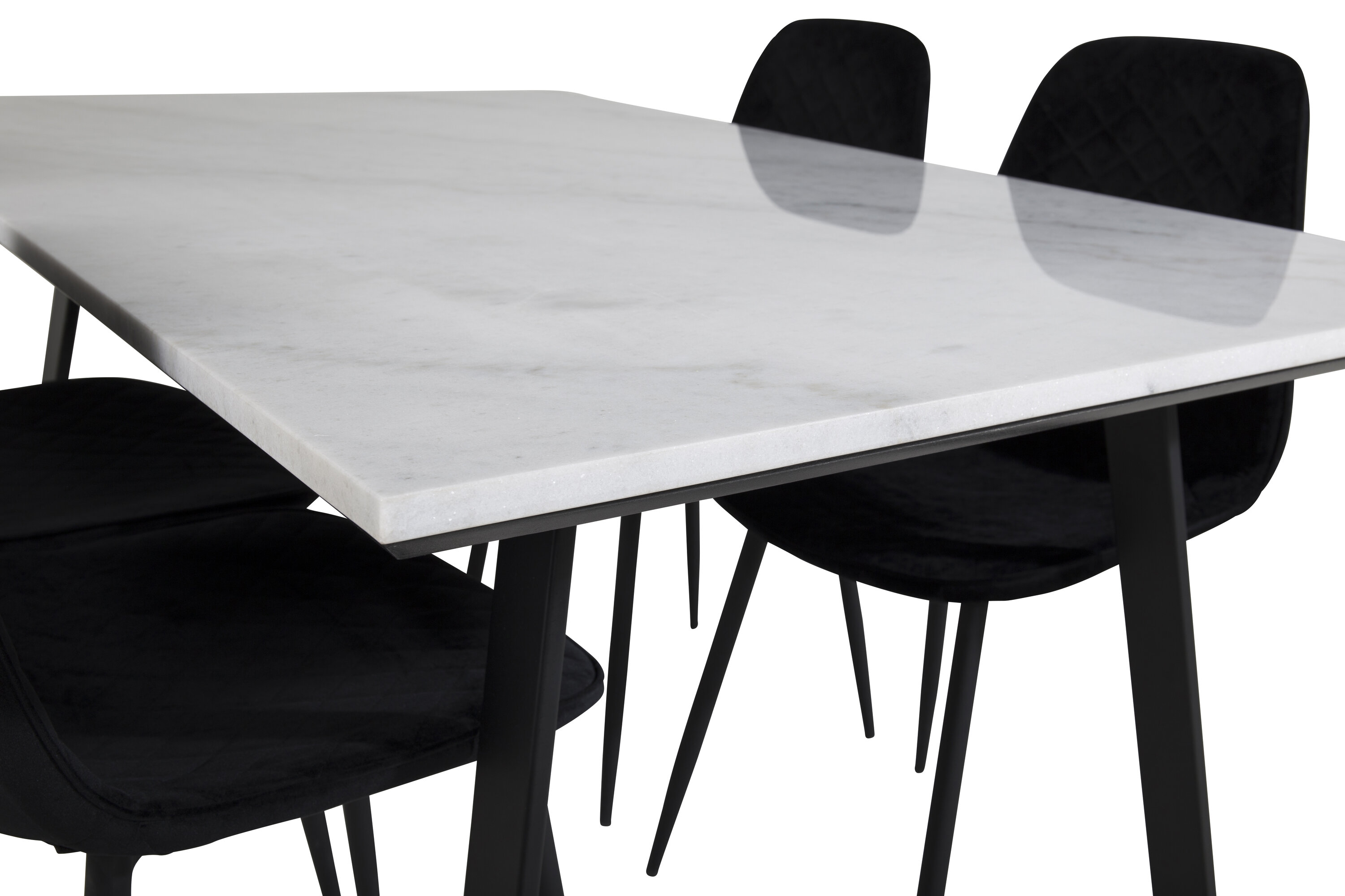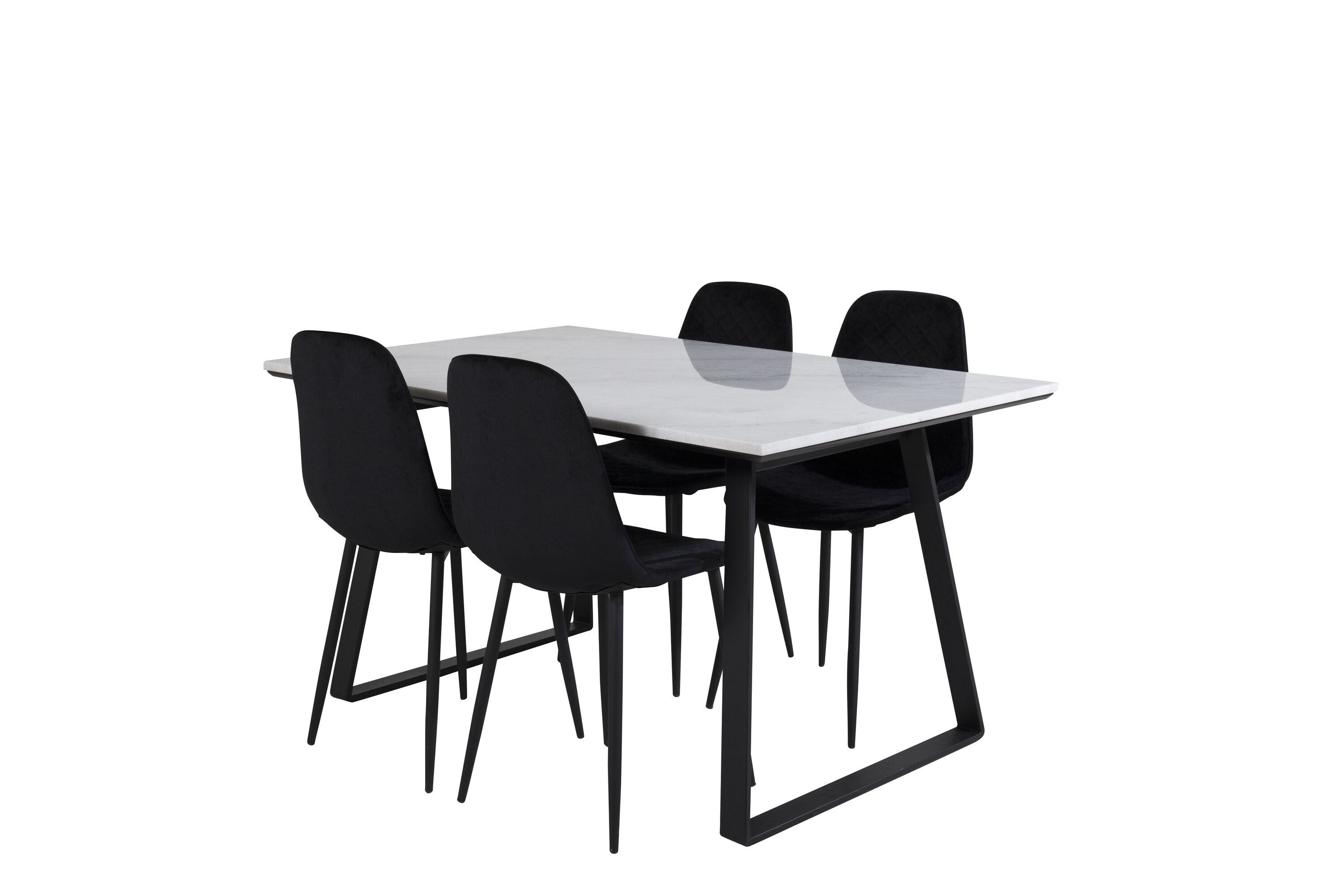 Esstisch Estelle in schlankem Design, dazu Esszimmerstühle Polar - die perfekte Kombination für alle, die eine trendige Food-Gruppe wollen. Der hohe Sitzkomfort der Stühle lädt zu langen und wunderbaren Momenten der Geselligkeit ein!