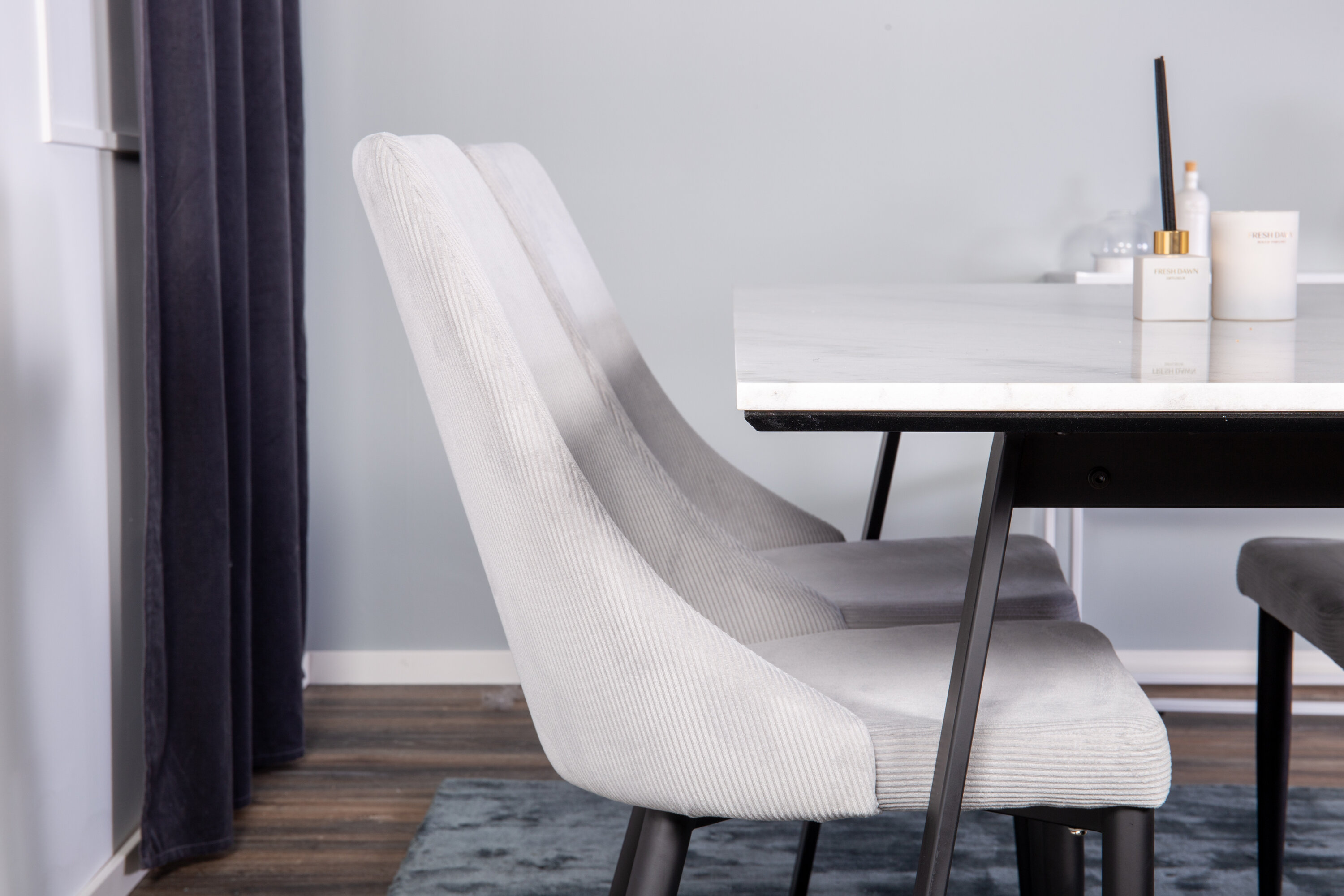 Unsere stilvollen und sitzfreundlichen Esszimmerstühle Leone in Kombination mit Esstisch Estelle geht in den meisten Haushalten nach Hause. Ein Tisch mit viel Platz für Abendessen und Geselligkeit. Ausstattung für Goldrand im Alltag - es soll sich schön anfühlen, nach Hause zu kommen!