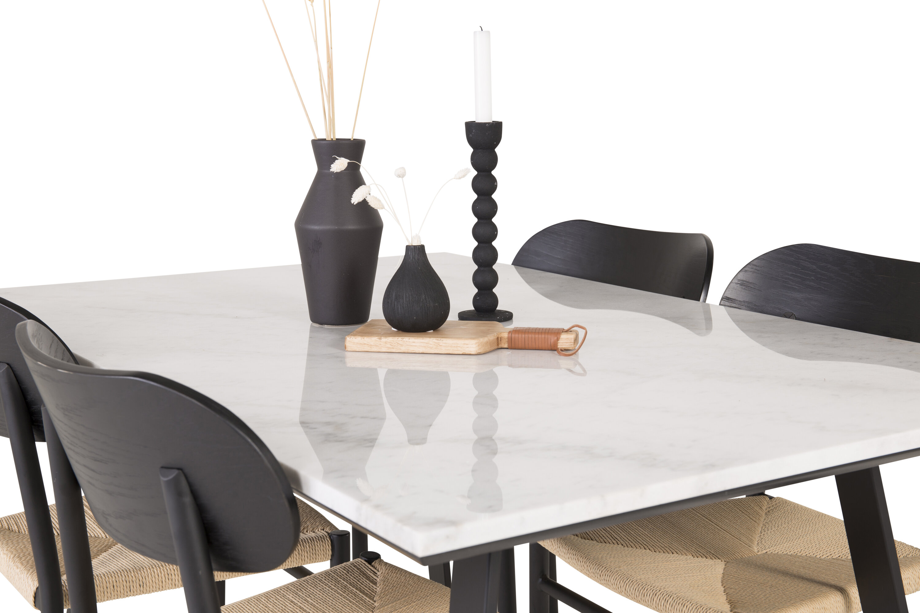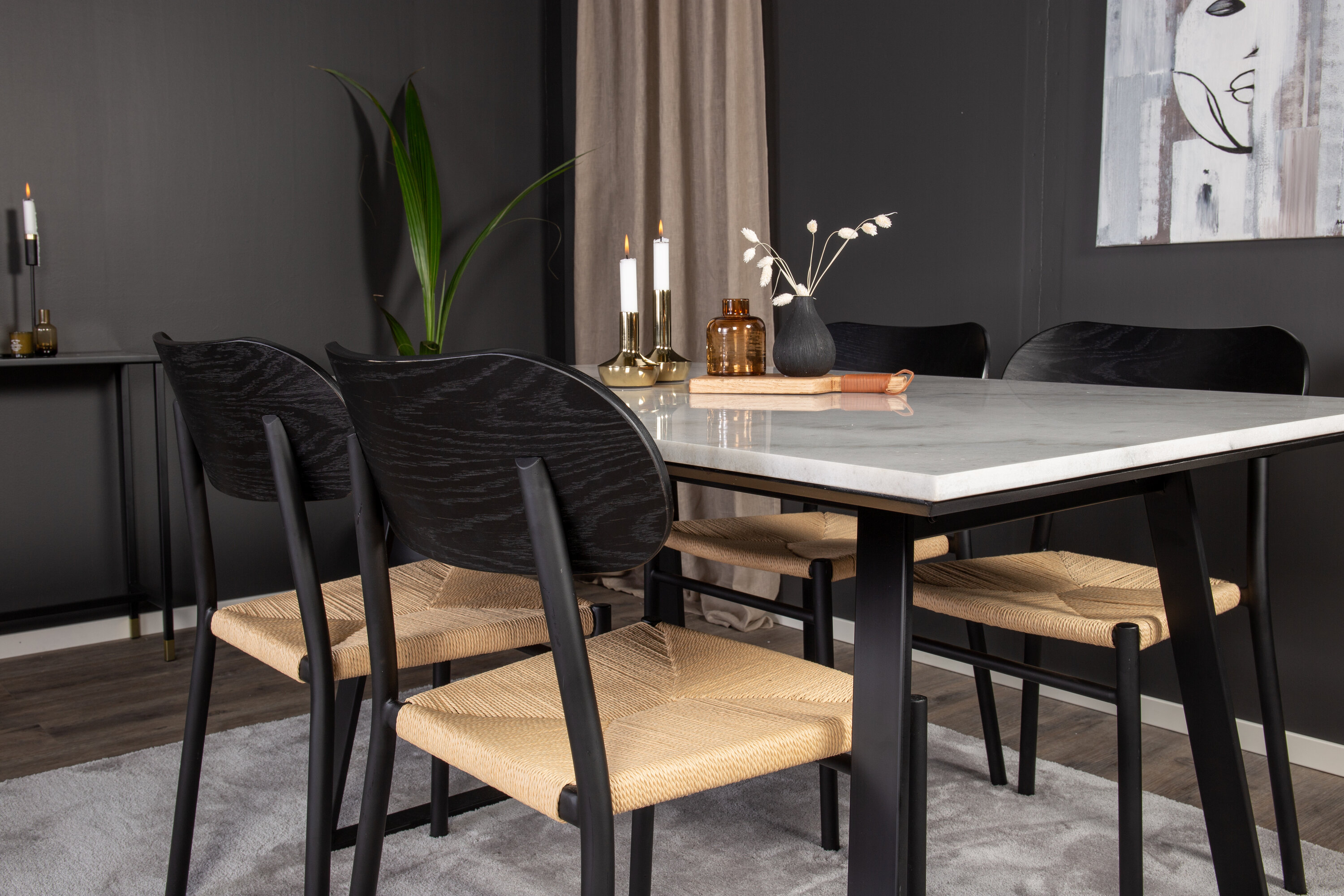 Estelle, moderner und gepflegter Esstisch - hier zusammen mit Esstischen der Serie Polly. Schaffen Sie etwas Ordentliches und Soziales mit Raum für gutes Essen und Geselligkeit!