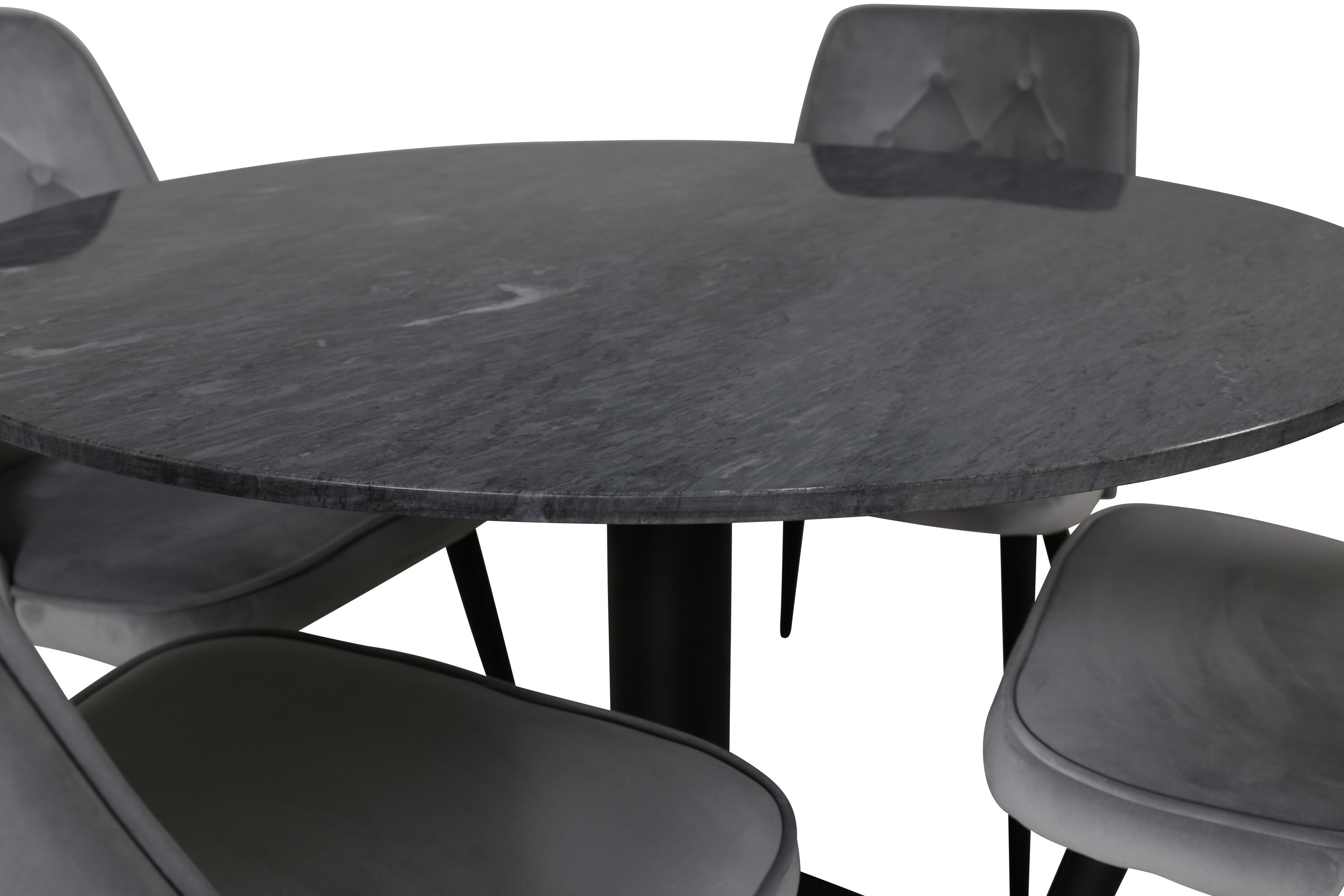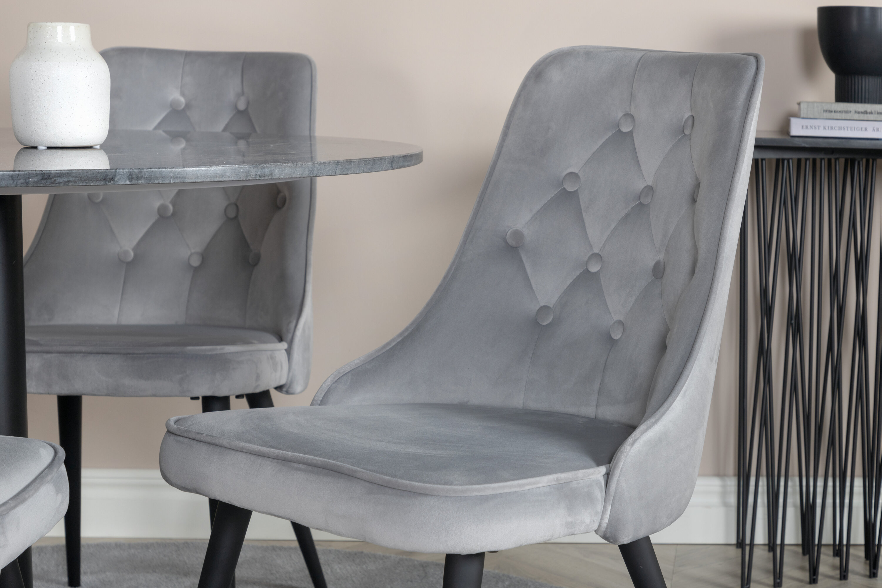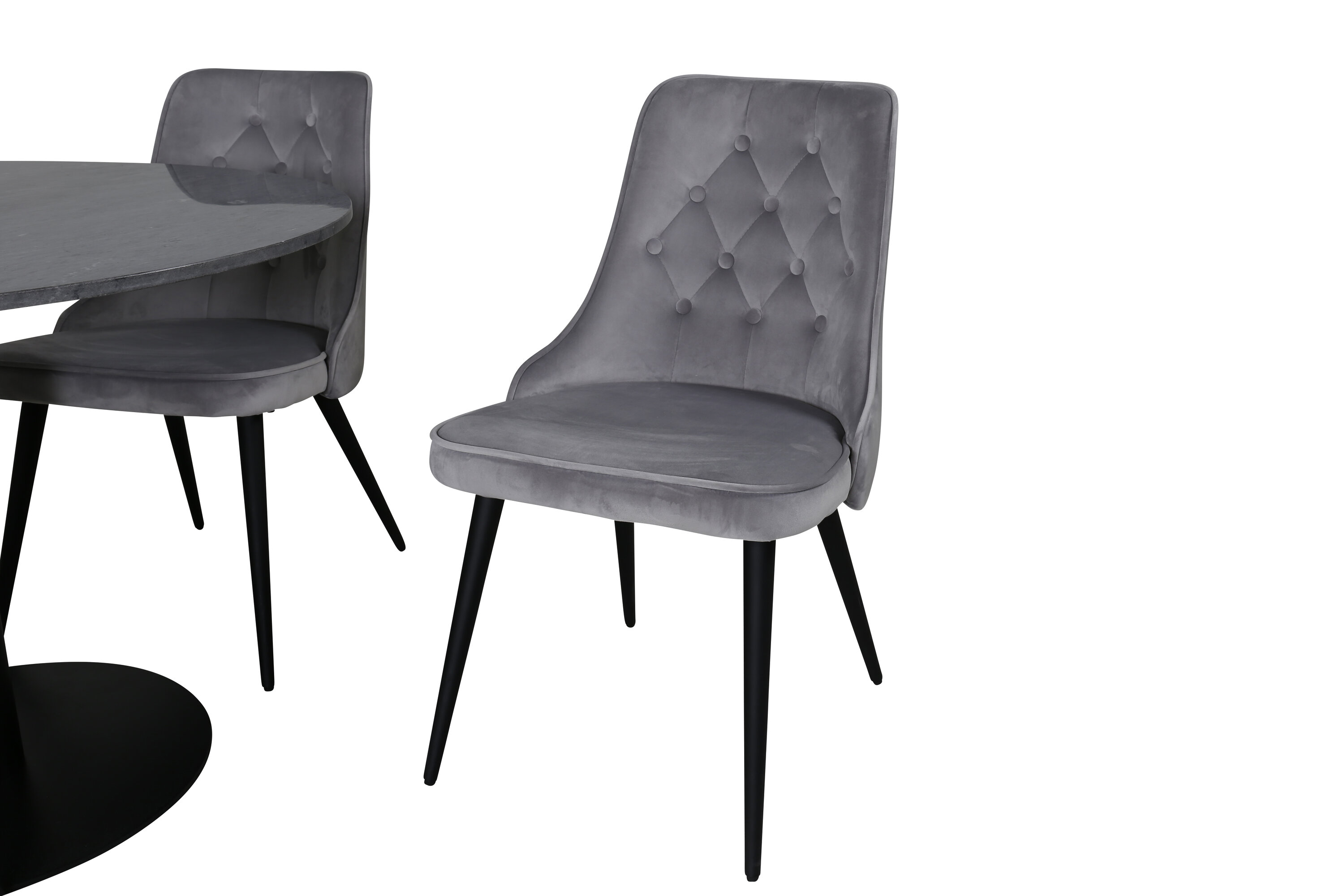 Klassische Lebensmittelgruppe, die in die meisten Haushalte passt! Der Esstisch Estelle ist zusammen mit Stühlen der Velvet-Serie für diejenigen gemacht, die ein gemütliches und modernes Gefühl im Haus schaffen möchten.