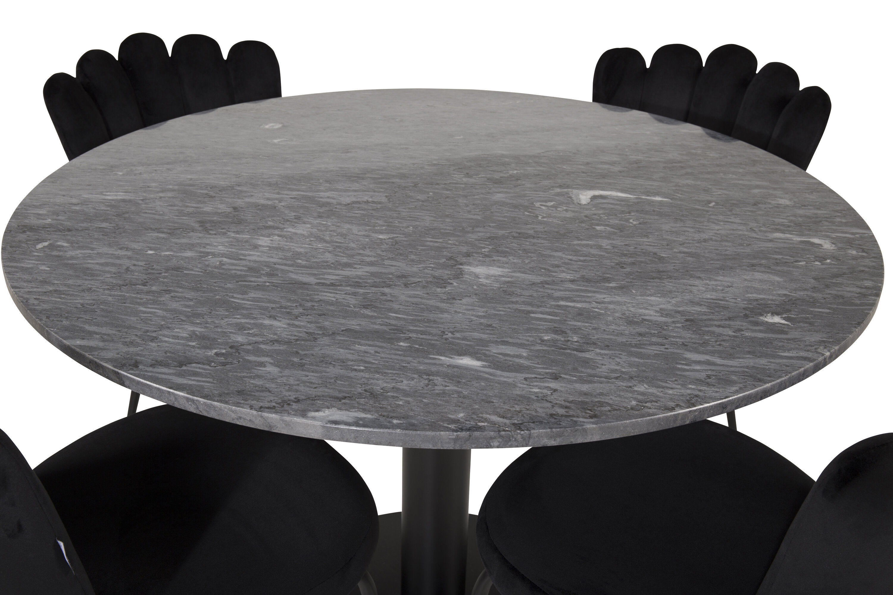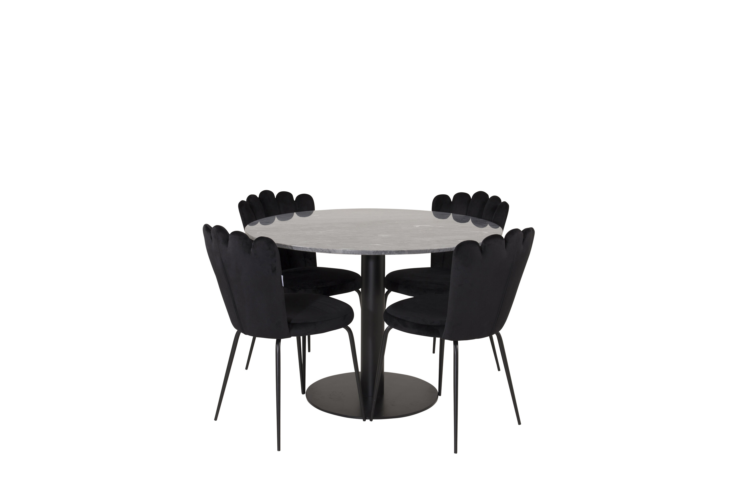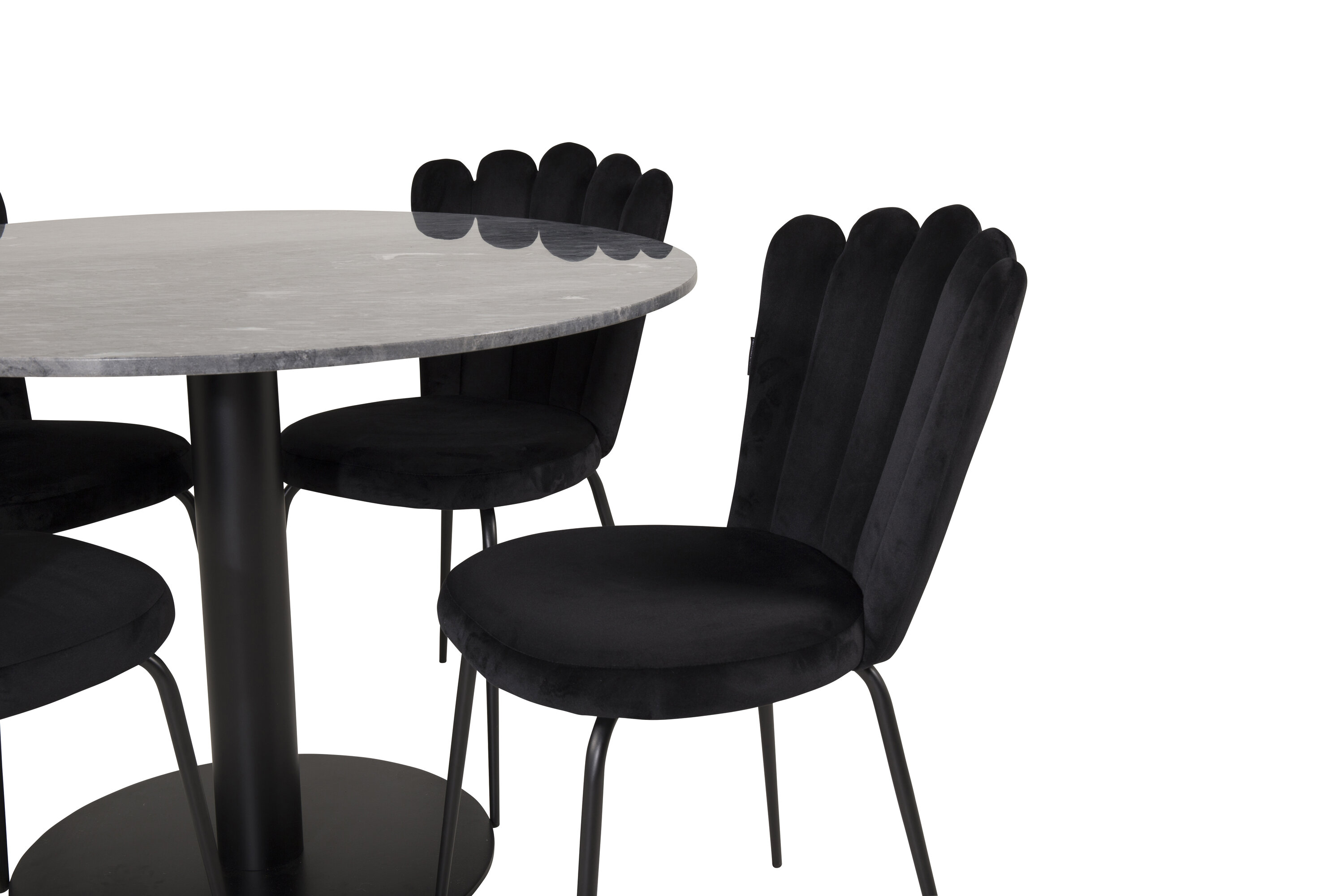 Eine Lebensmittelgruppe in modernem und stilvollem Design. Esstisch Estelle und Esszimmerstühle Limhamn mit dekorativer Rückseite sind die perfekte Kombination für das Herz des Hauses, was wahrscheinlich genauso gut zu Ihren Bedürfnissen passt wie zu Ihrer anderen Einrichtung.