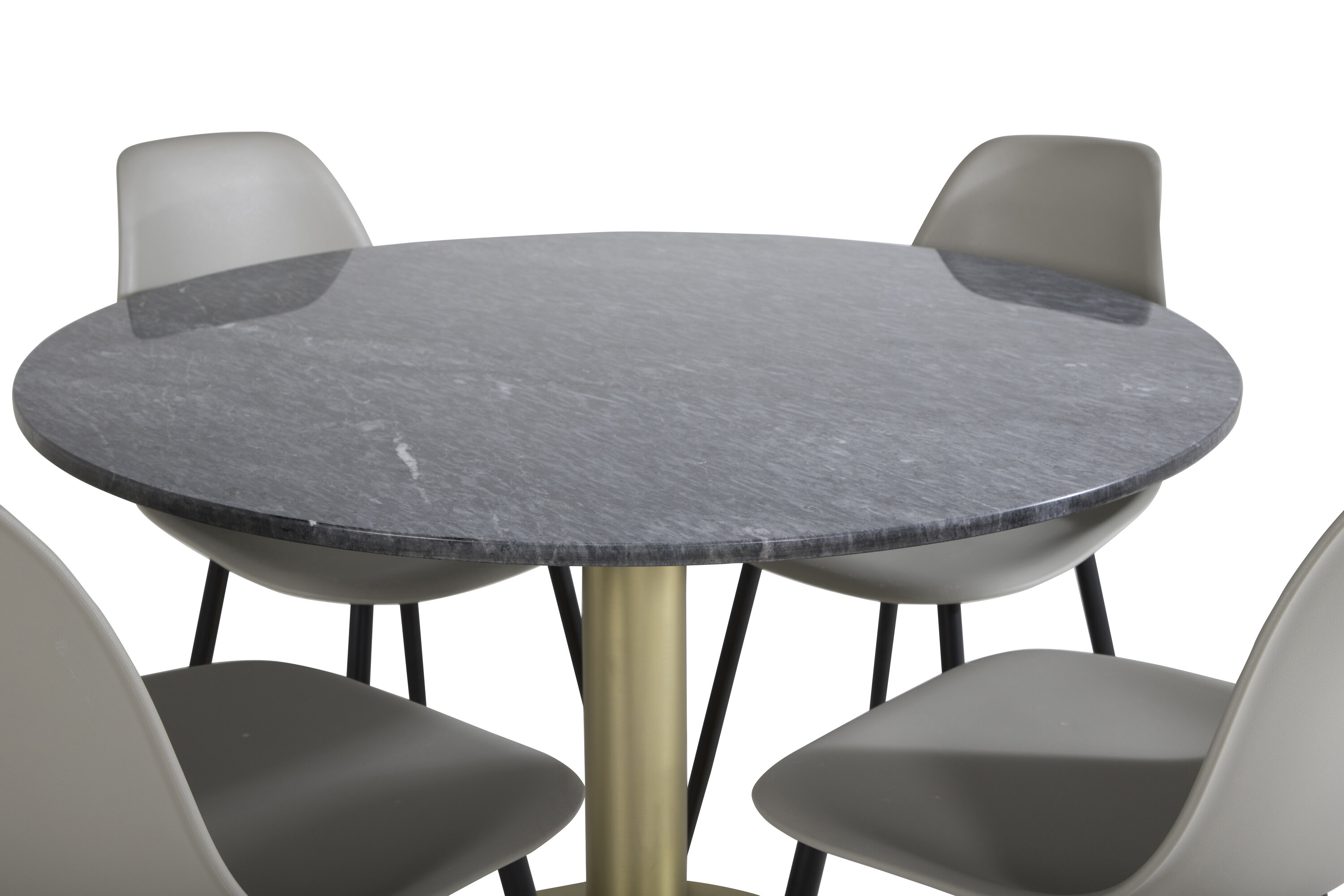 Der elegante Marmor-Esstisch der Serie Estelle wird hier mit den zeitlosen Stühlen der Serie Polar kombiniert. Eine Lebensmittelgruppe, die sich zu sehr nach Hause sehnt!