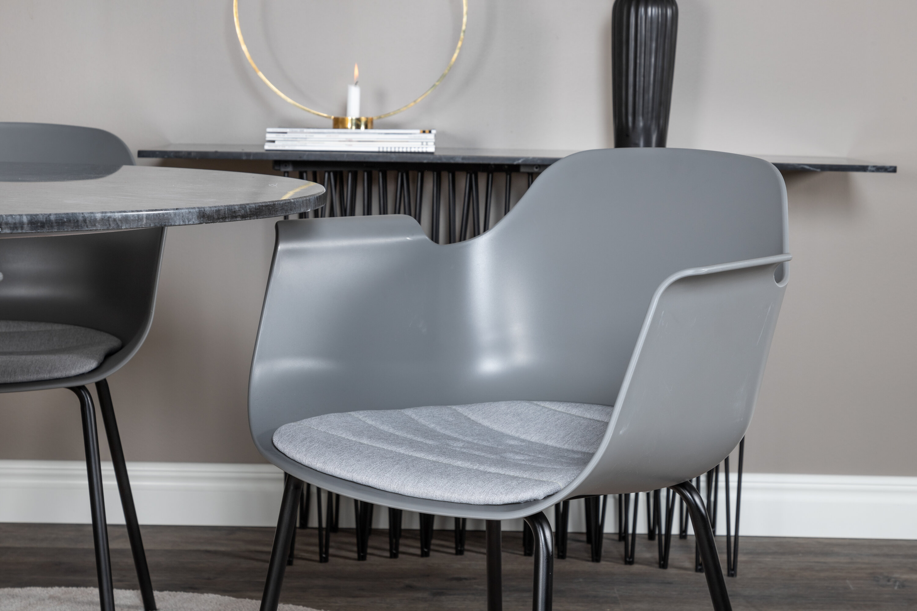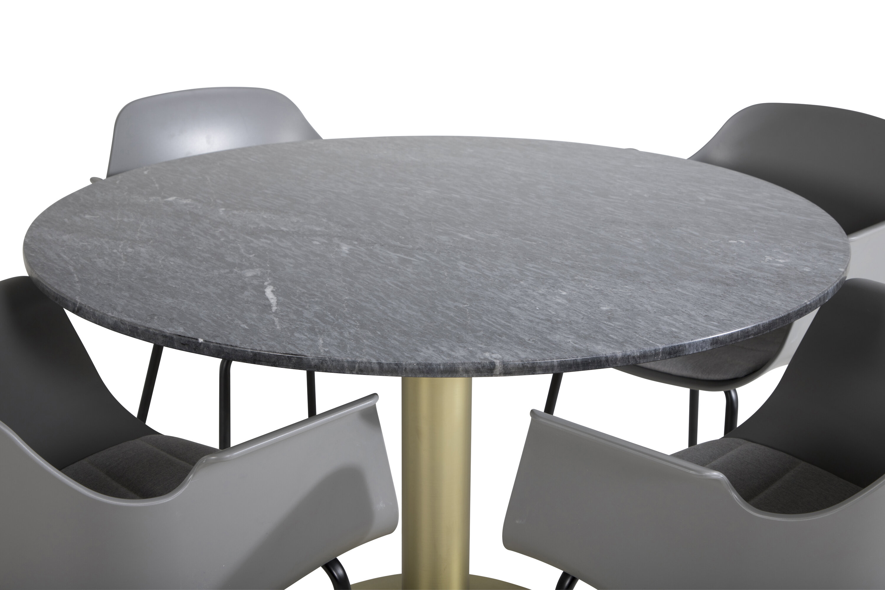 Der elegante Marmor-Esstisch der Serie Estelle ist hier mit Rahmenstühlen der Serie Comfort im trendigen Design kombiniert. Die Lebensmittelgruppe ist wie gemacht für diejenigen, die ein gemütliches und modernes Gefühl zu Hause schaffen wollen.