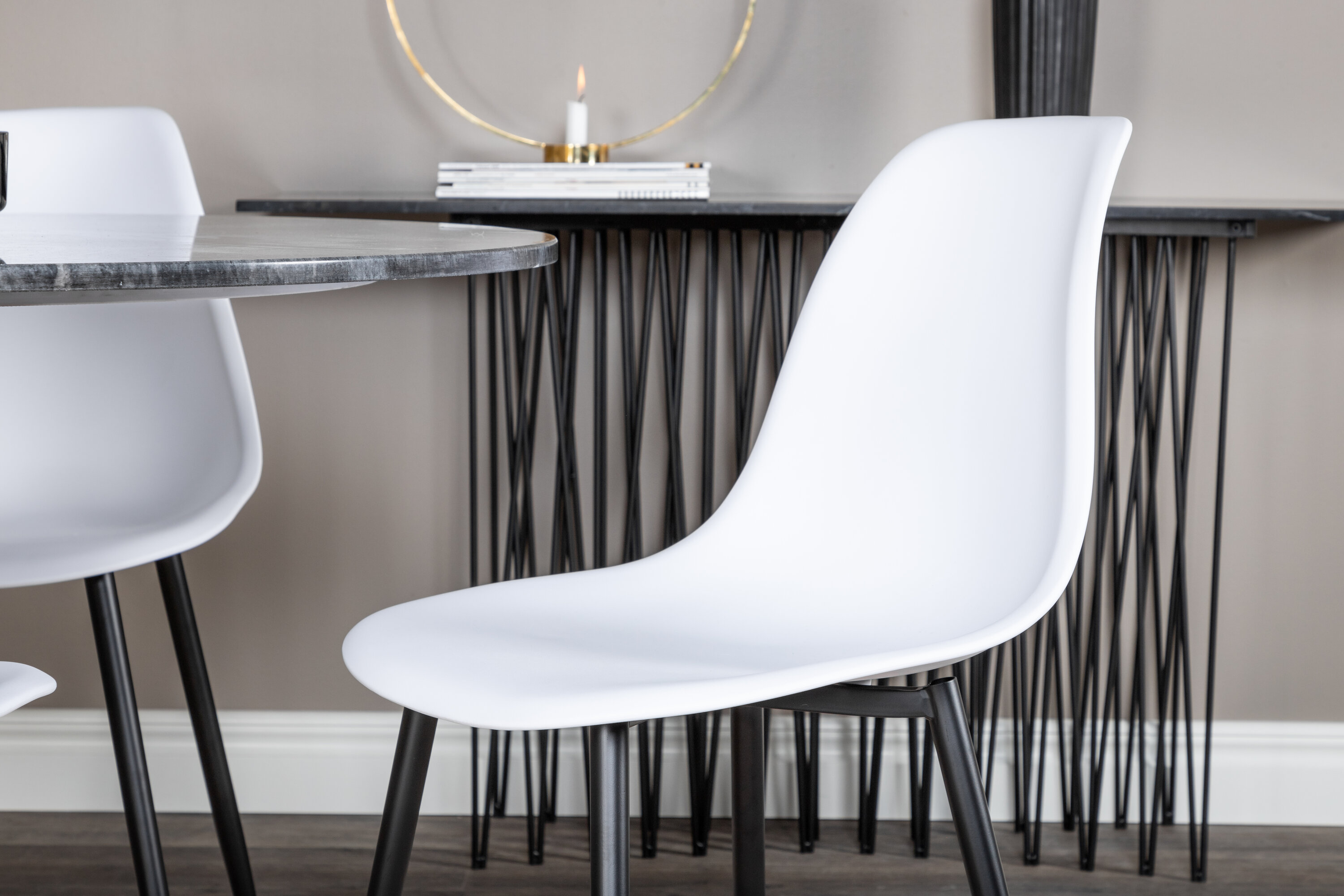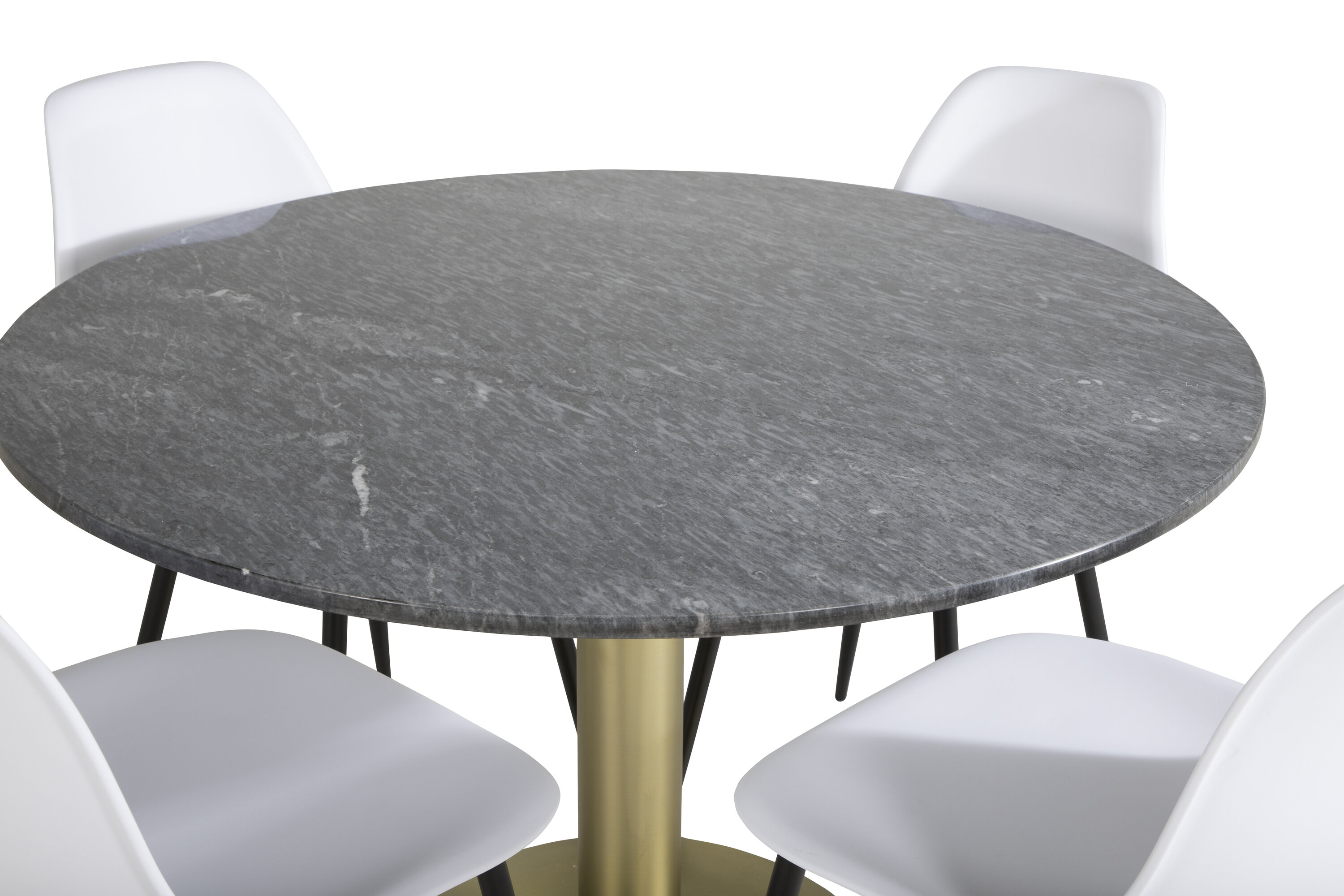 Der Esstisch Estelle aus schönem Marmor wird hier mit zeitlosen Stühlen der Serie Polar kombiniert. Schaffen Sie etwas Geschmackvolles und Soziales mit Raum für gutes Essen und Geselligkeit!