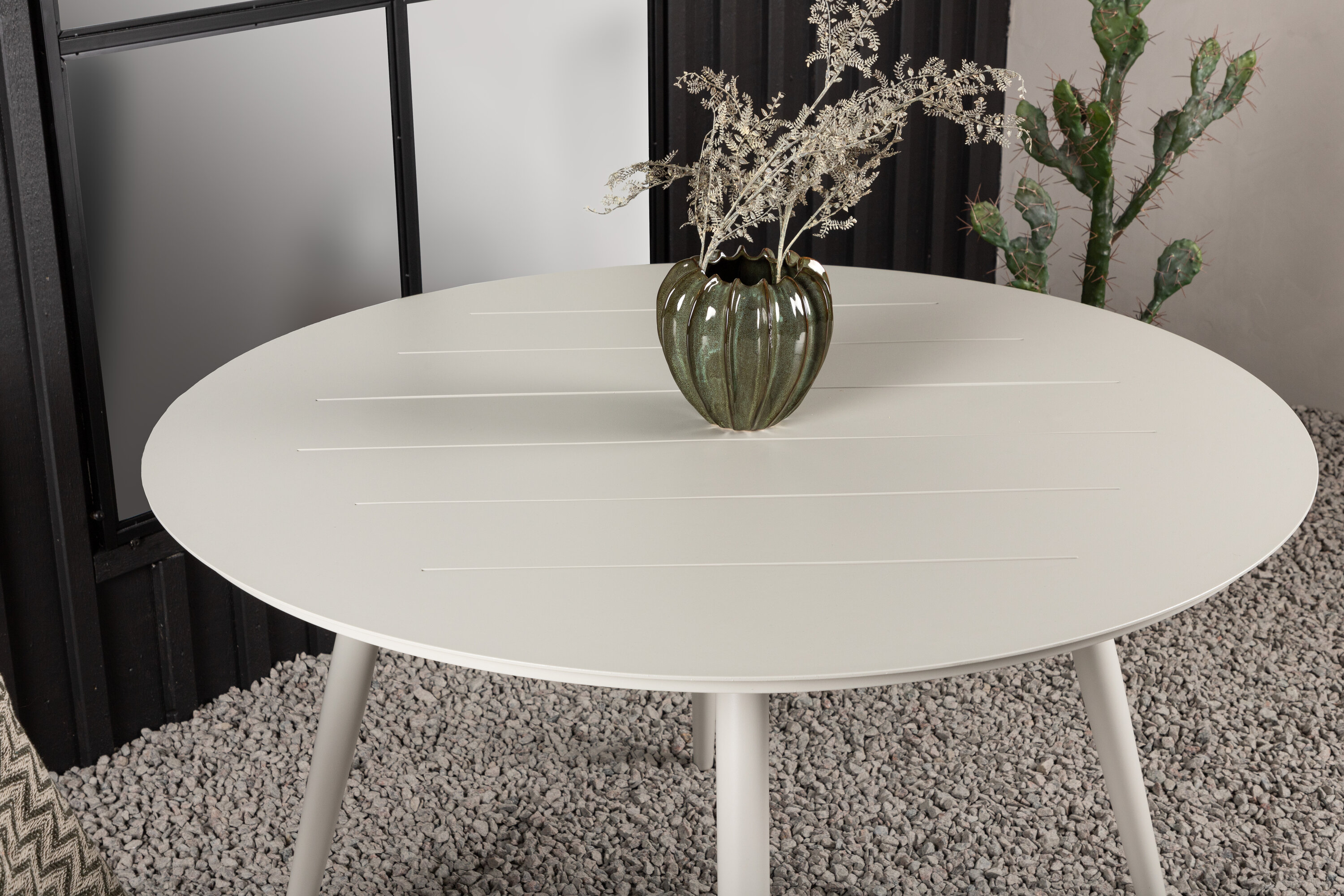 Das runde Design ist ein Tisch für alle Sommerabendessen und schafft eine Gemeinschaft mit Ihren Gästen. Ein stilvoller und moderner beiger Tisch, der zu den meisten Terrassen und Balkonen passt. Verleiht Ihrer Terrasse ein warmes und einladendes Gefühl. Lassen Sie diesen Sommer hier Lachen und Gespräche fließen!