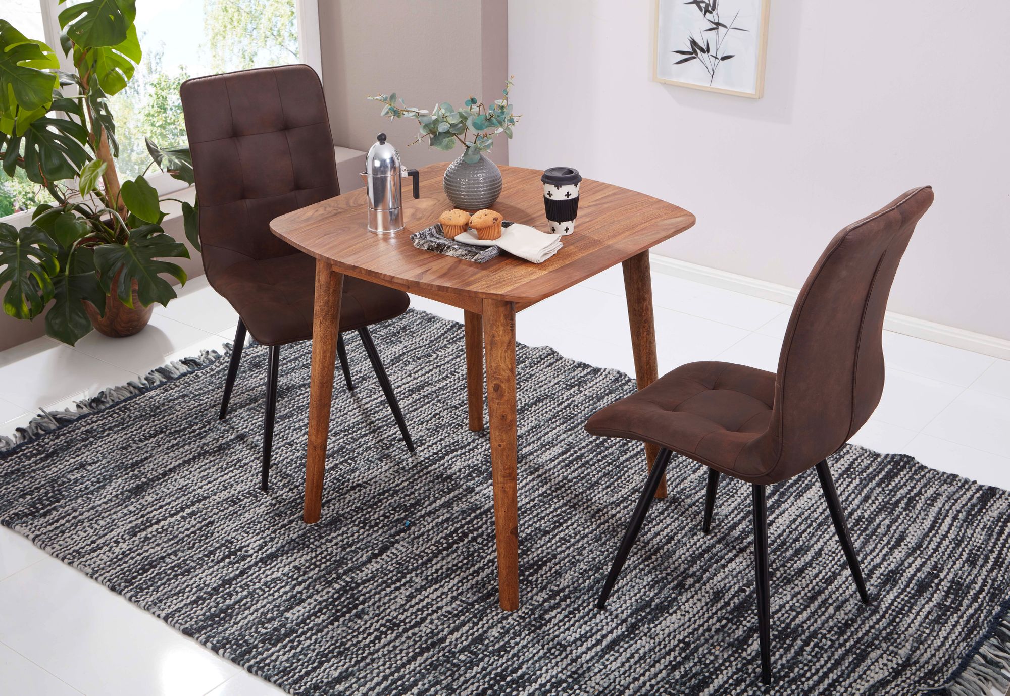 Massiver Sheesham Esstisch Braun | 80x78x80 cm | Moderner rustikaler Stil
