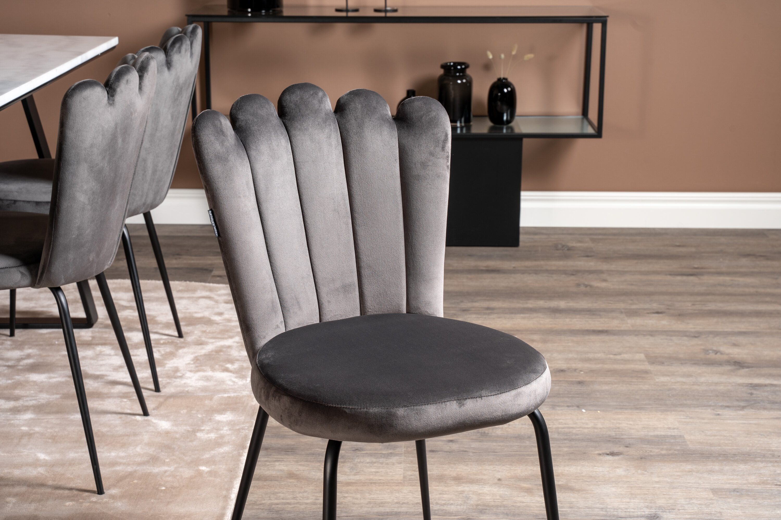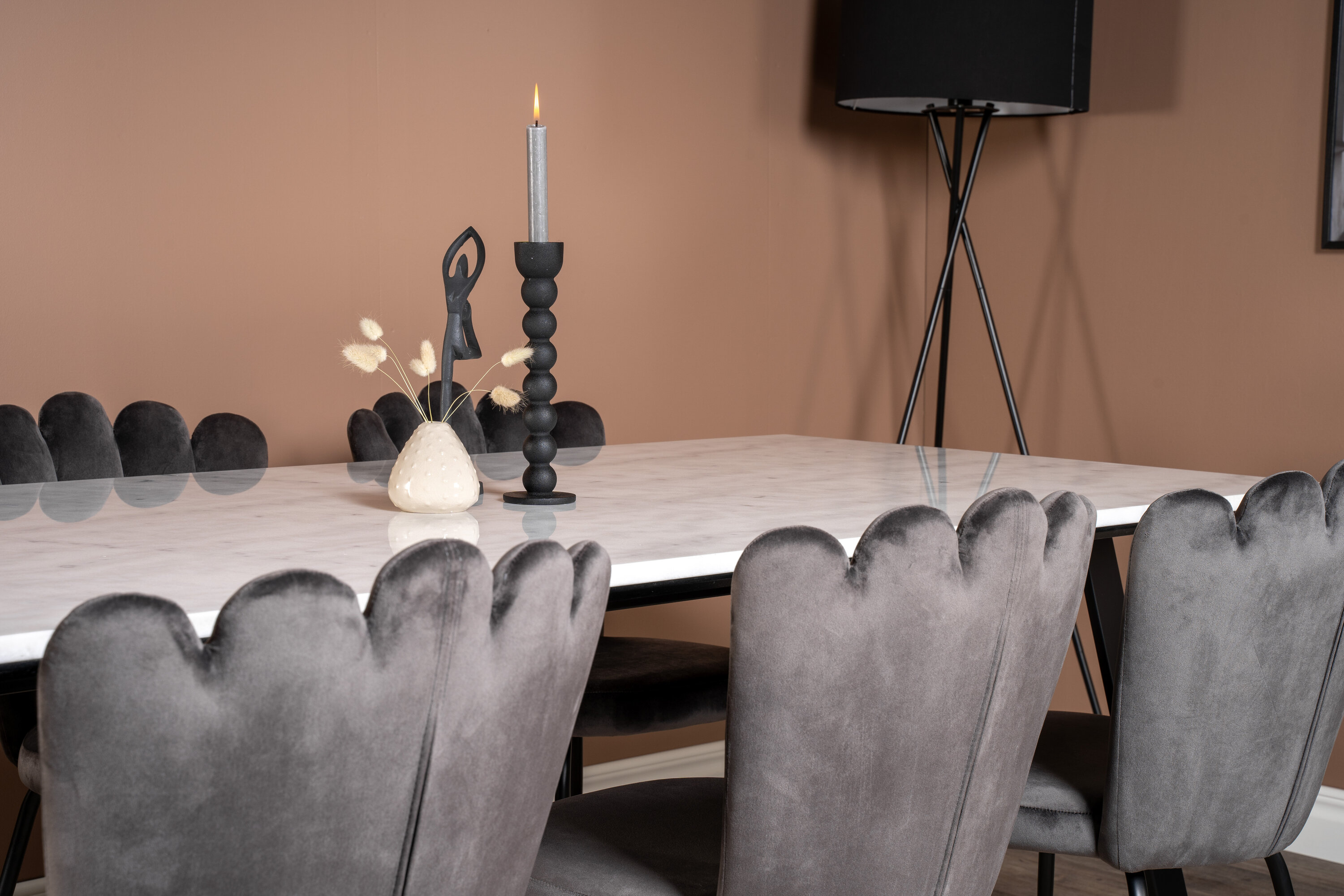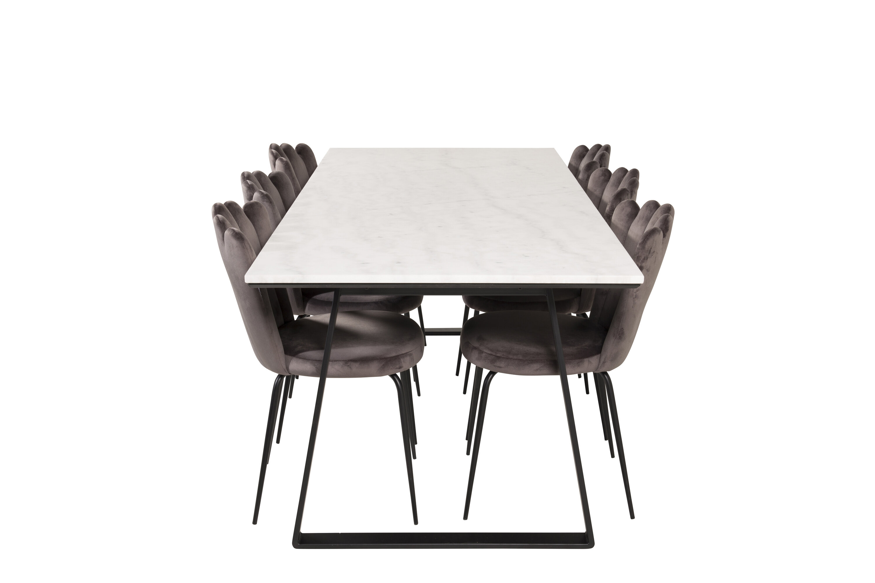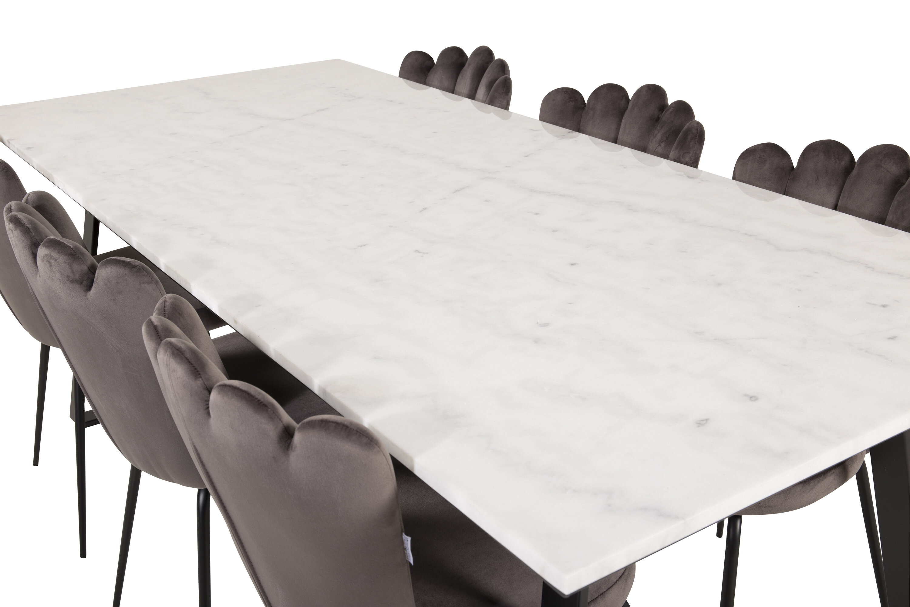 Der elegante Marmortisch der Serie Estelle wird hier mit komfortablen Esszimmerstühlen Limhamn kombiniert. Eine Lebensmittelgruppe, die Luxus vermittelt, der in die meisten Haushalte passt!