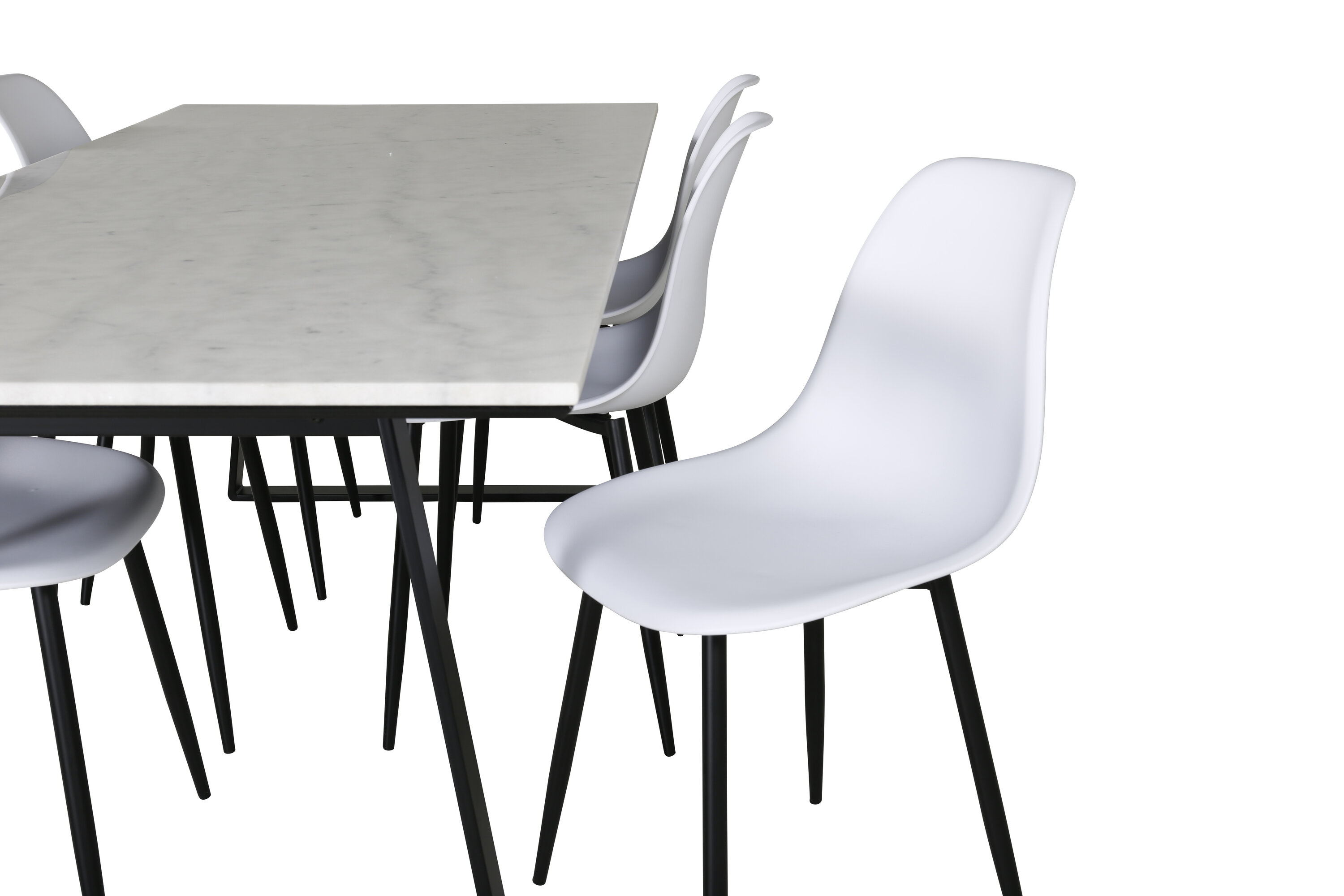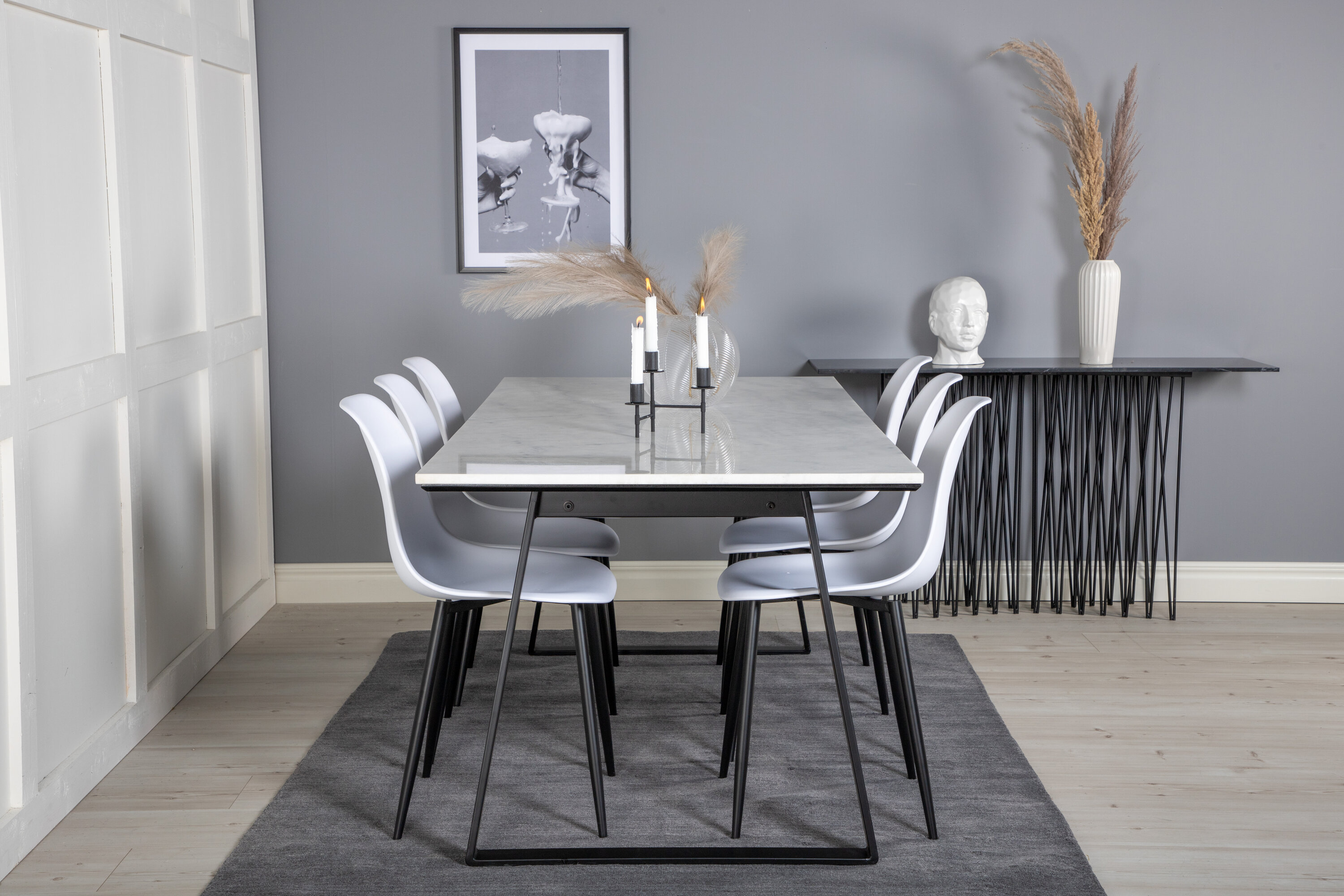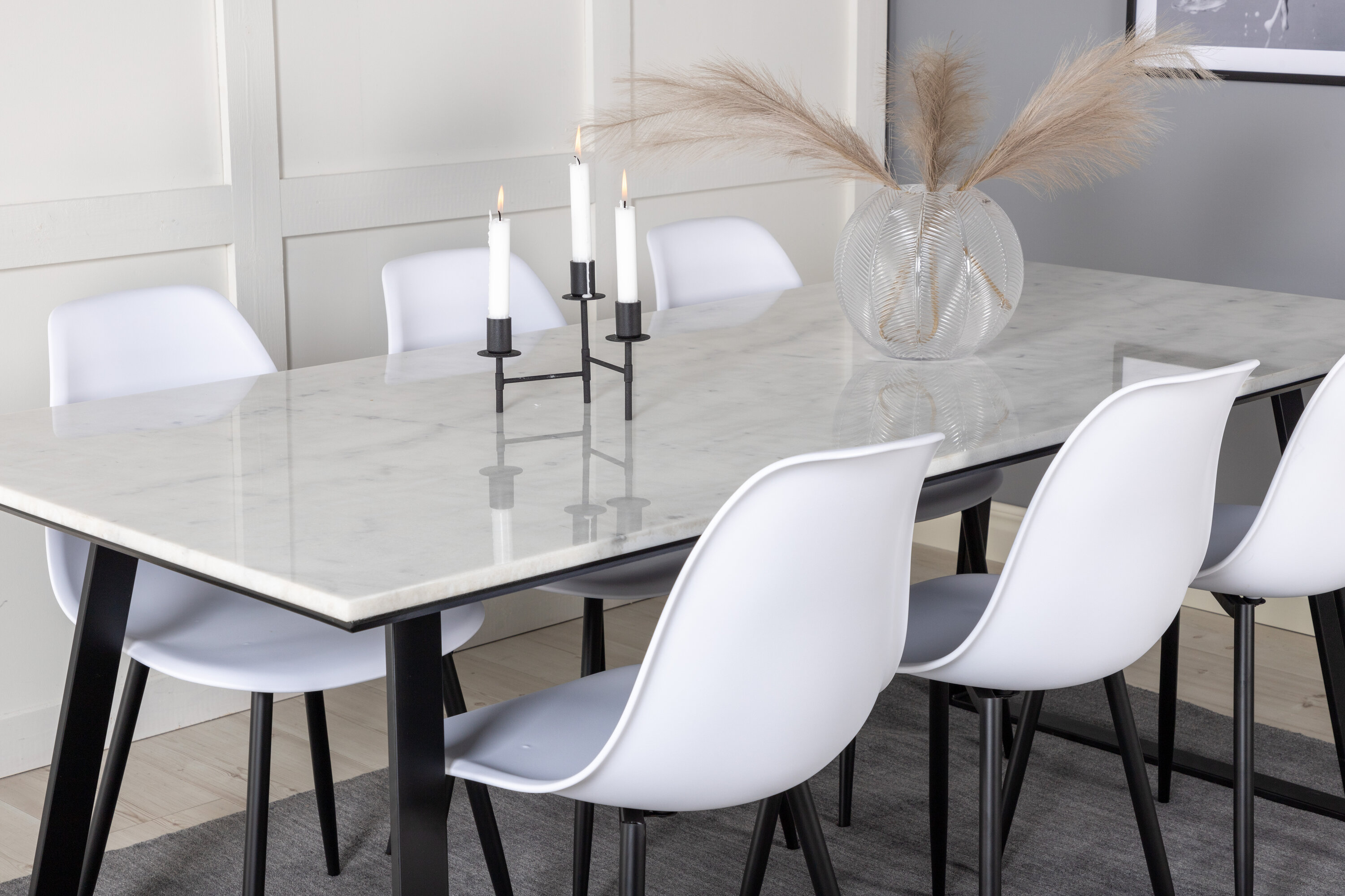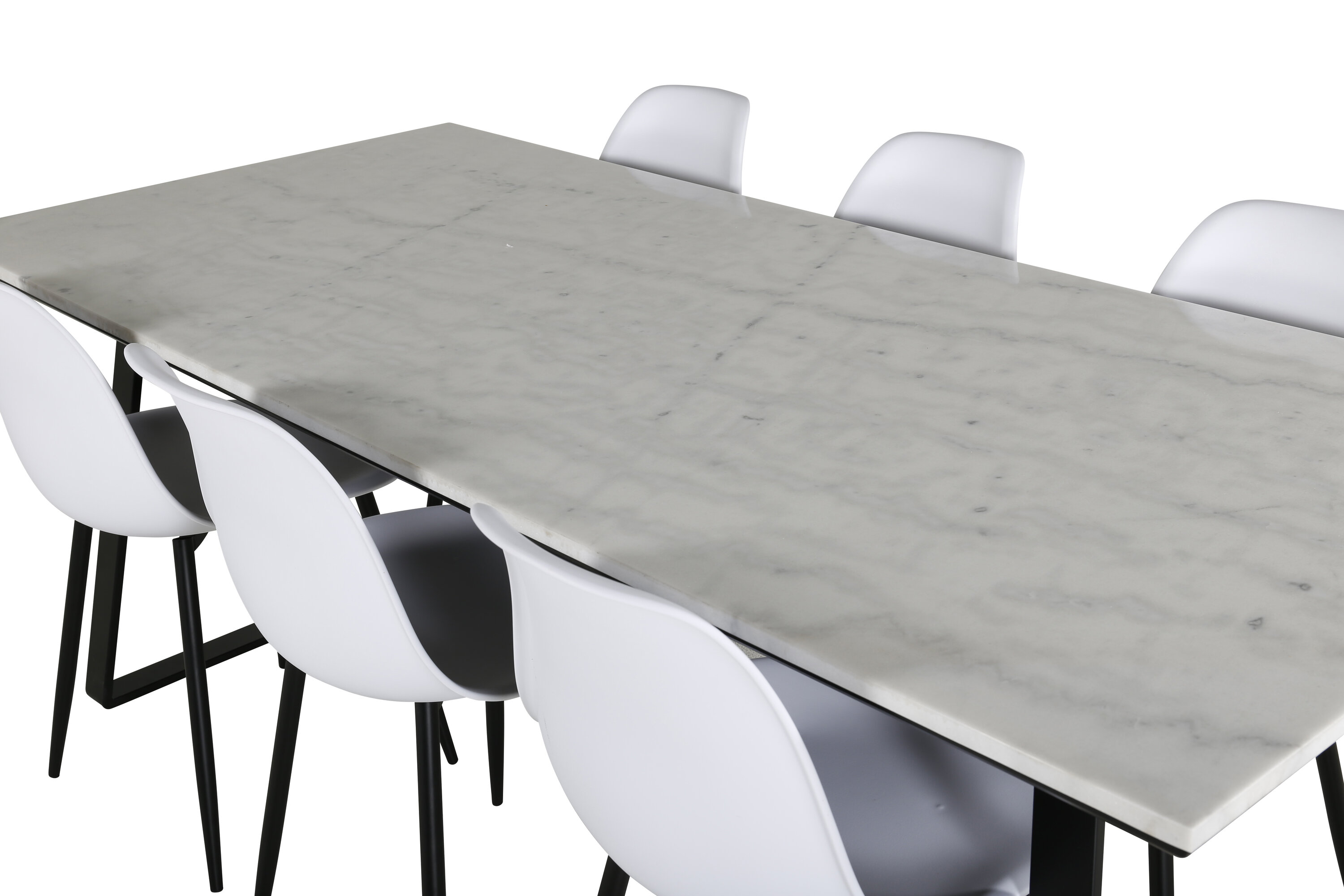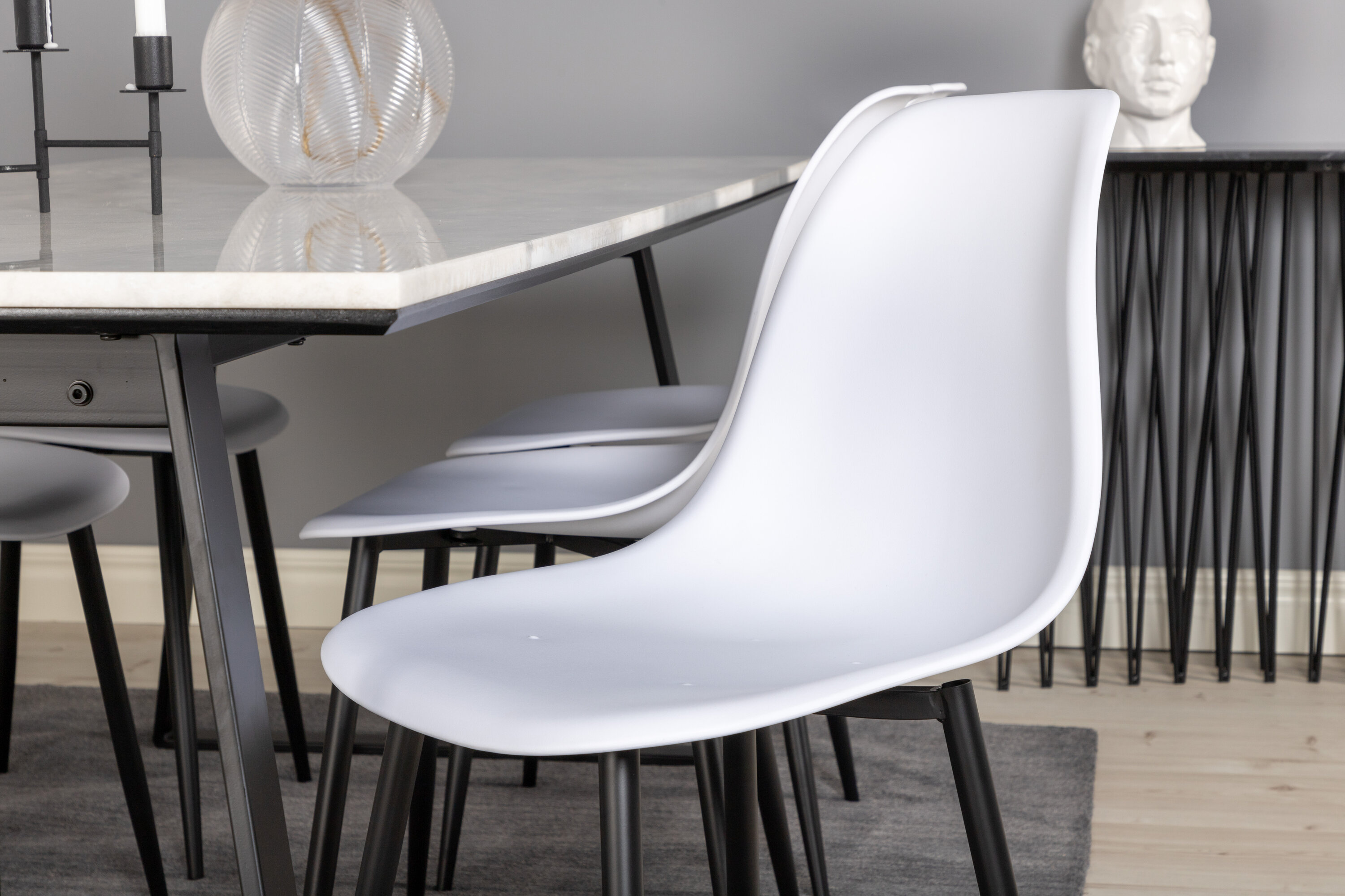 Die zeitlosen Esszimmerstühle Polar sind mit dem Esstisch Estelle aus schönem Marmor abgestimmt. Eine Lebensmittelgruppe, die garantiert im Laufe der Zeit steht!