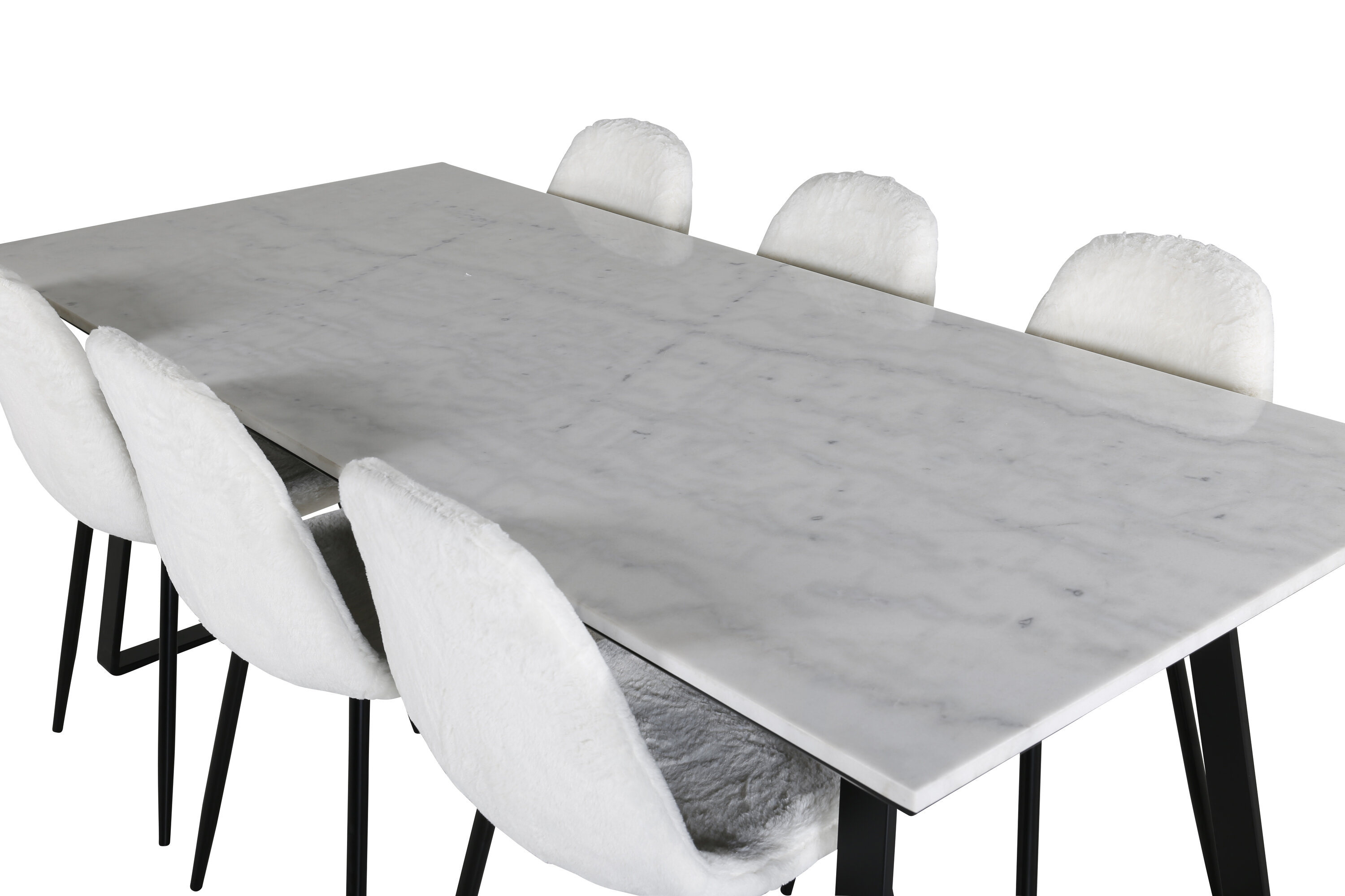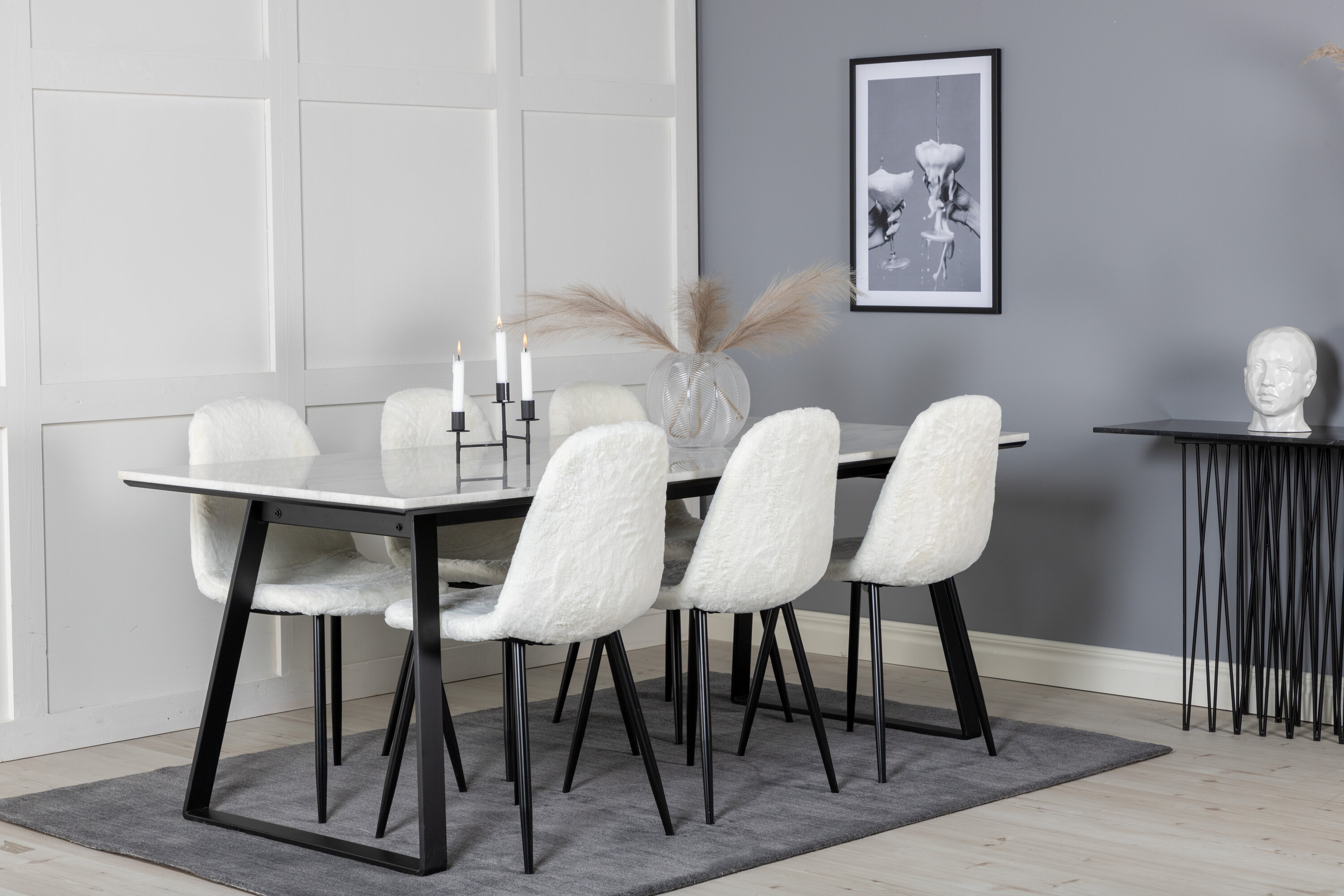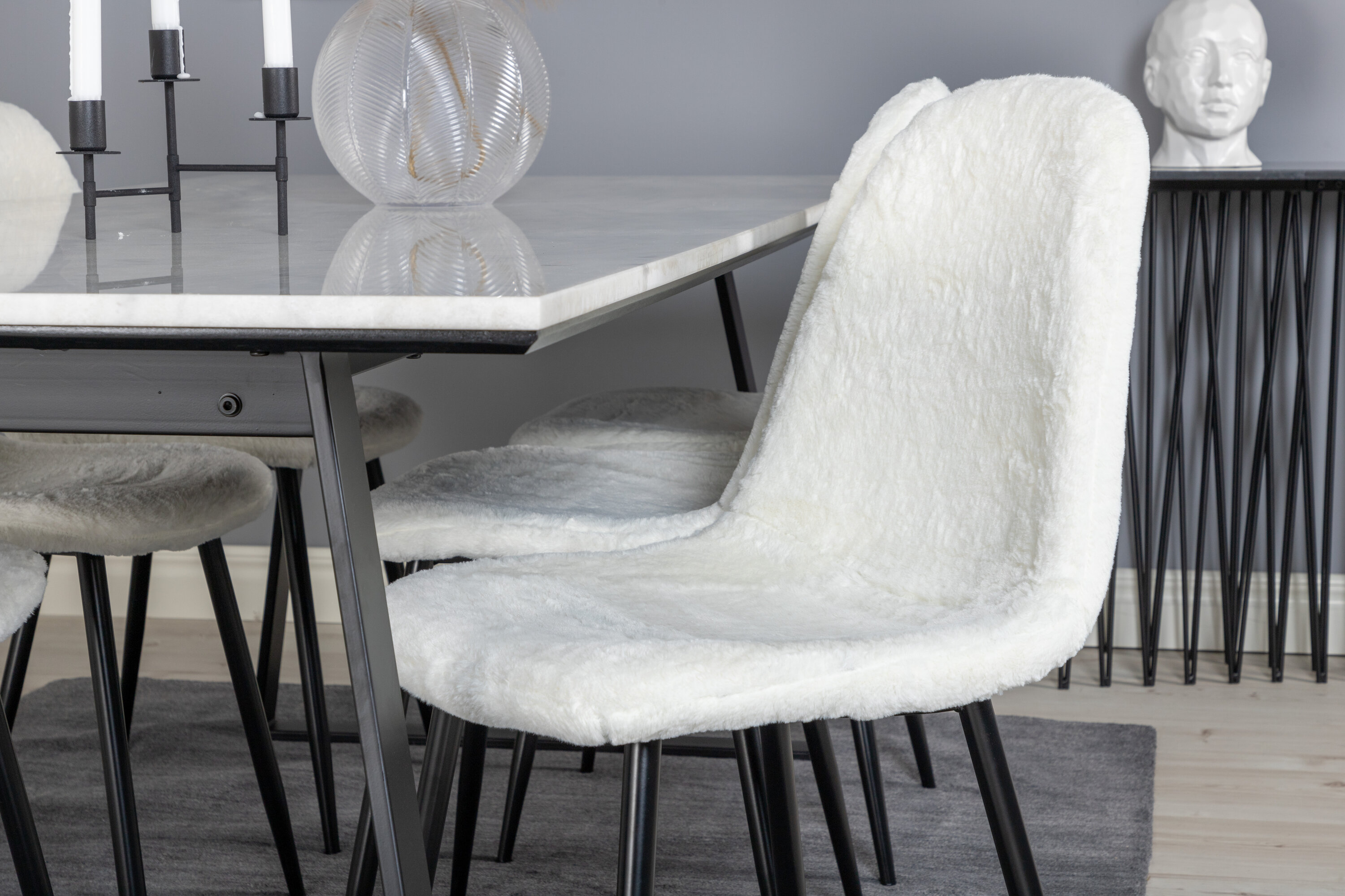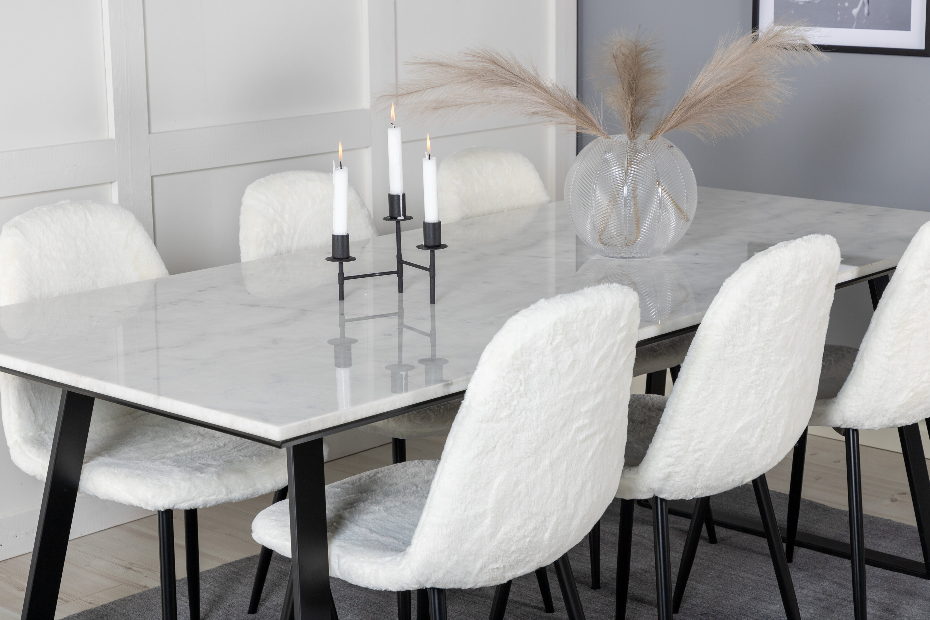 Wow! Hier erhalten Sie unsere unglaublich weichen und stilvollen Esszimmerstühle Polar in weißem Teddy. Die Stühle sind mit dem Esstisch Estelle aus schönem Marmor abgestimmt. Geben Sie dem Essbereich einen Lift mit Ihrer neuen luxuriösen Essensgruppe!