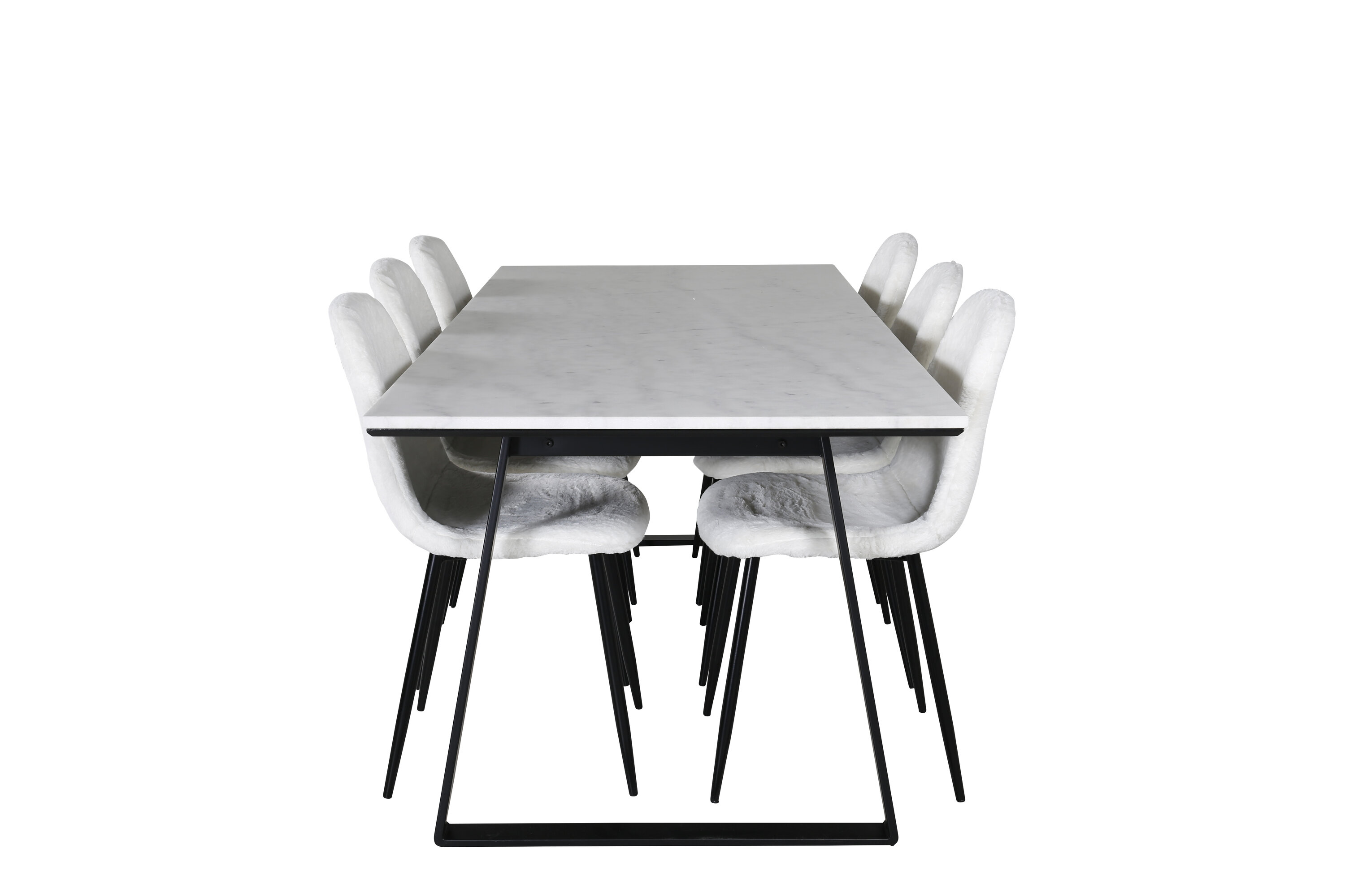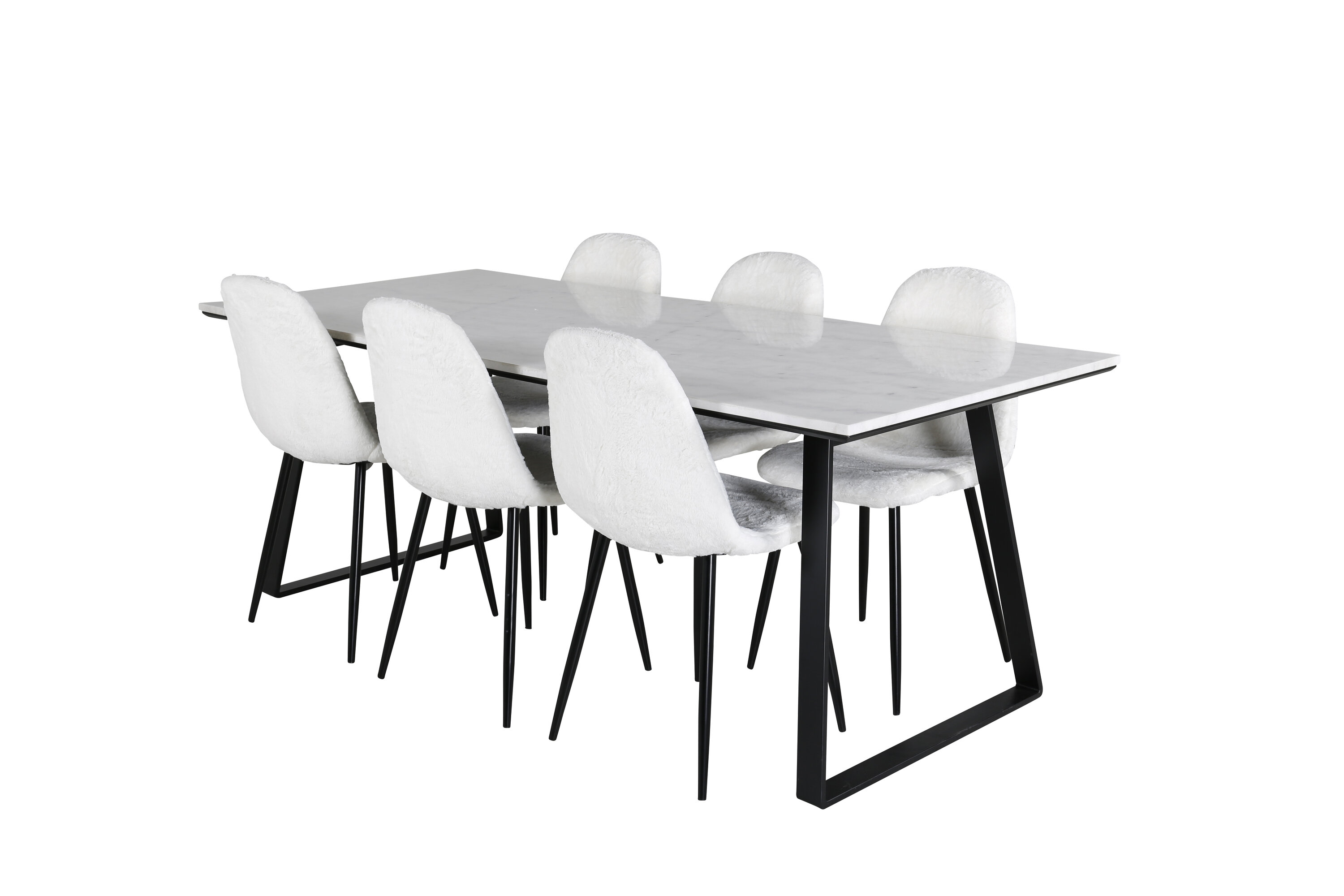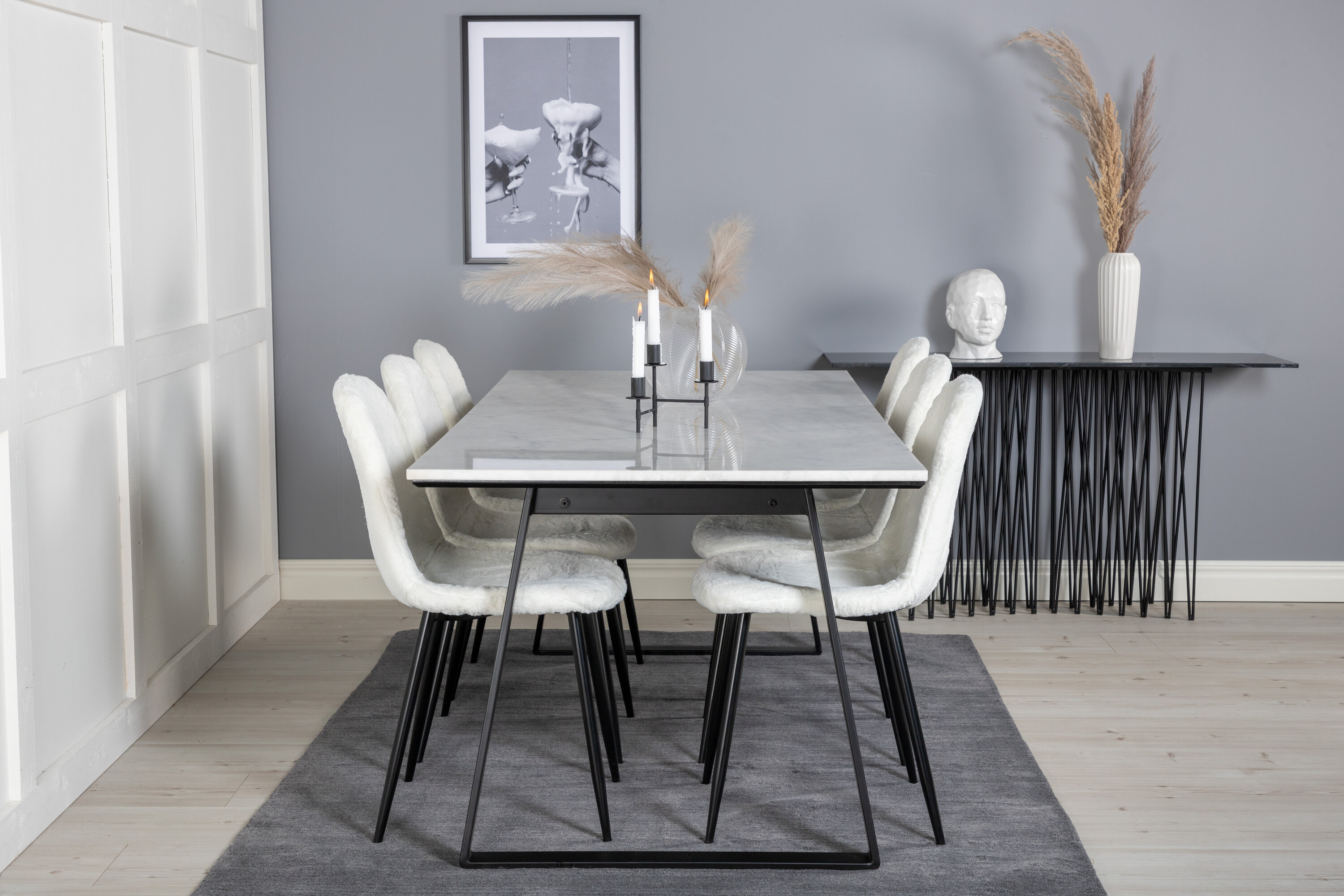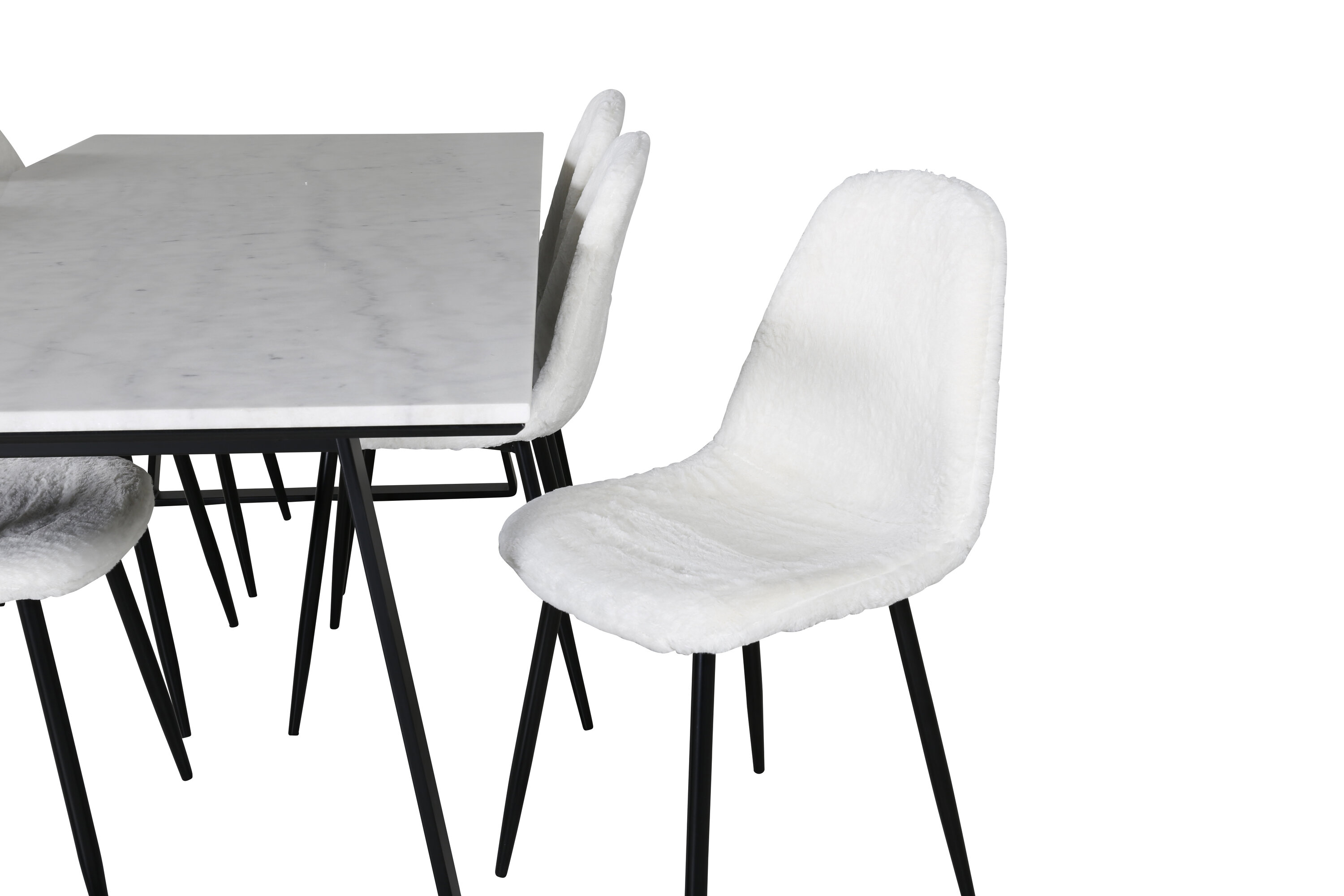 Wow! Hier erhalten Sie unsere unglaublich weichen und stilvollen Esszimmerstühle Polar in weißem Teddy. Die Stühle sind mit dem Esstisch Estelle aus schönem Marmor abgestimmt. Geben Sie dem Essbereich einen Lift mit Ihrer neuen luxuriösen Essensgruppe!