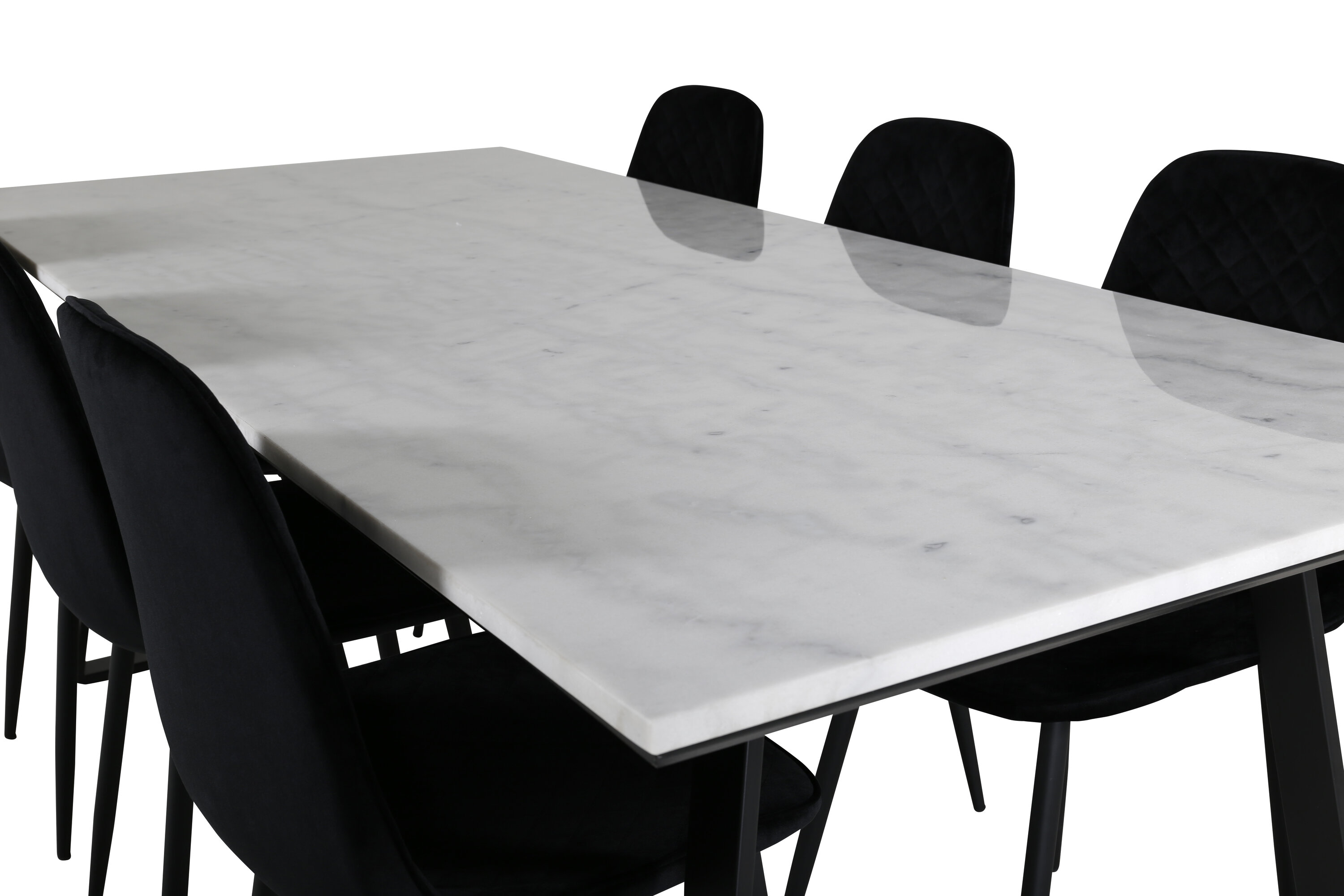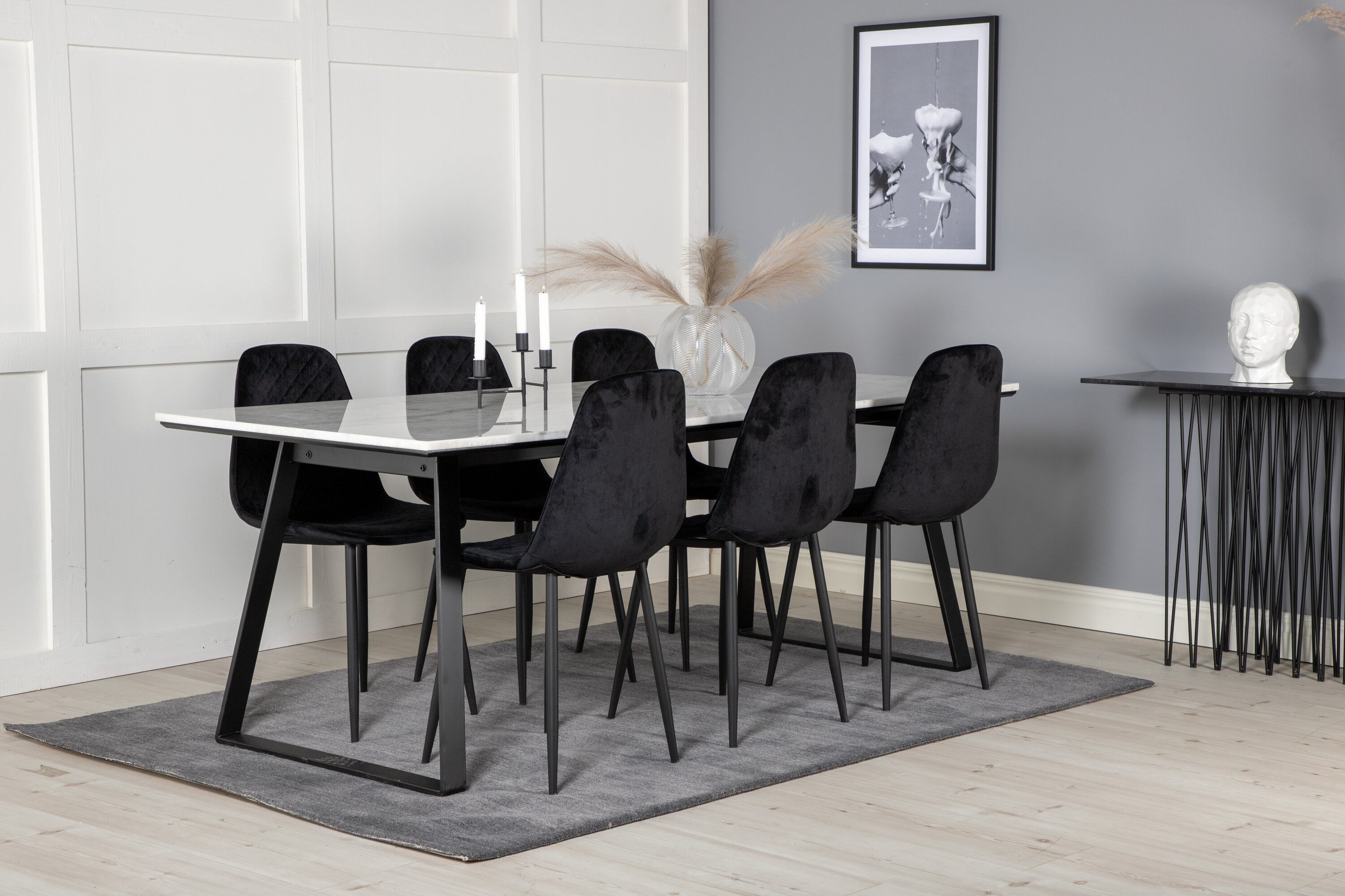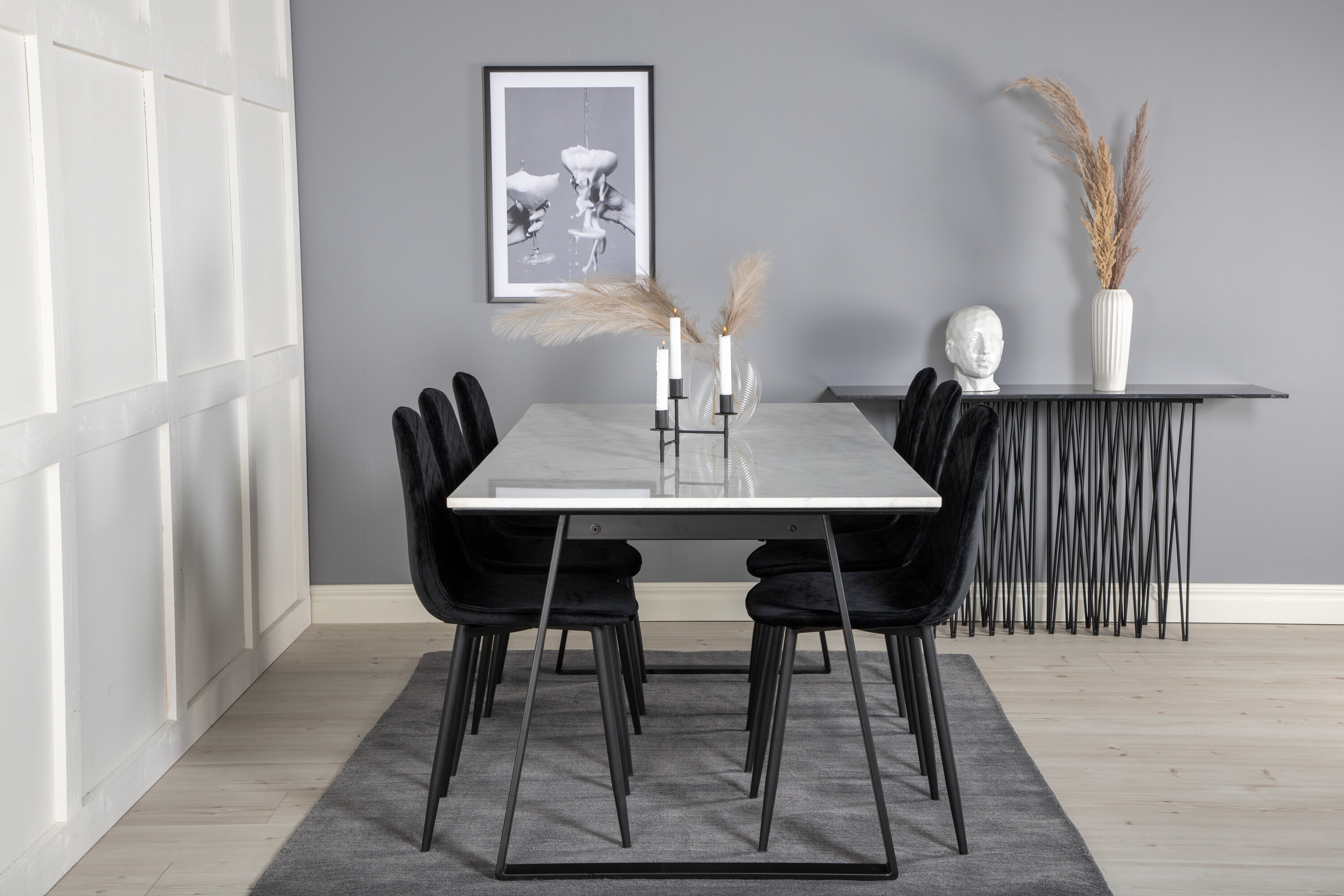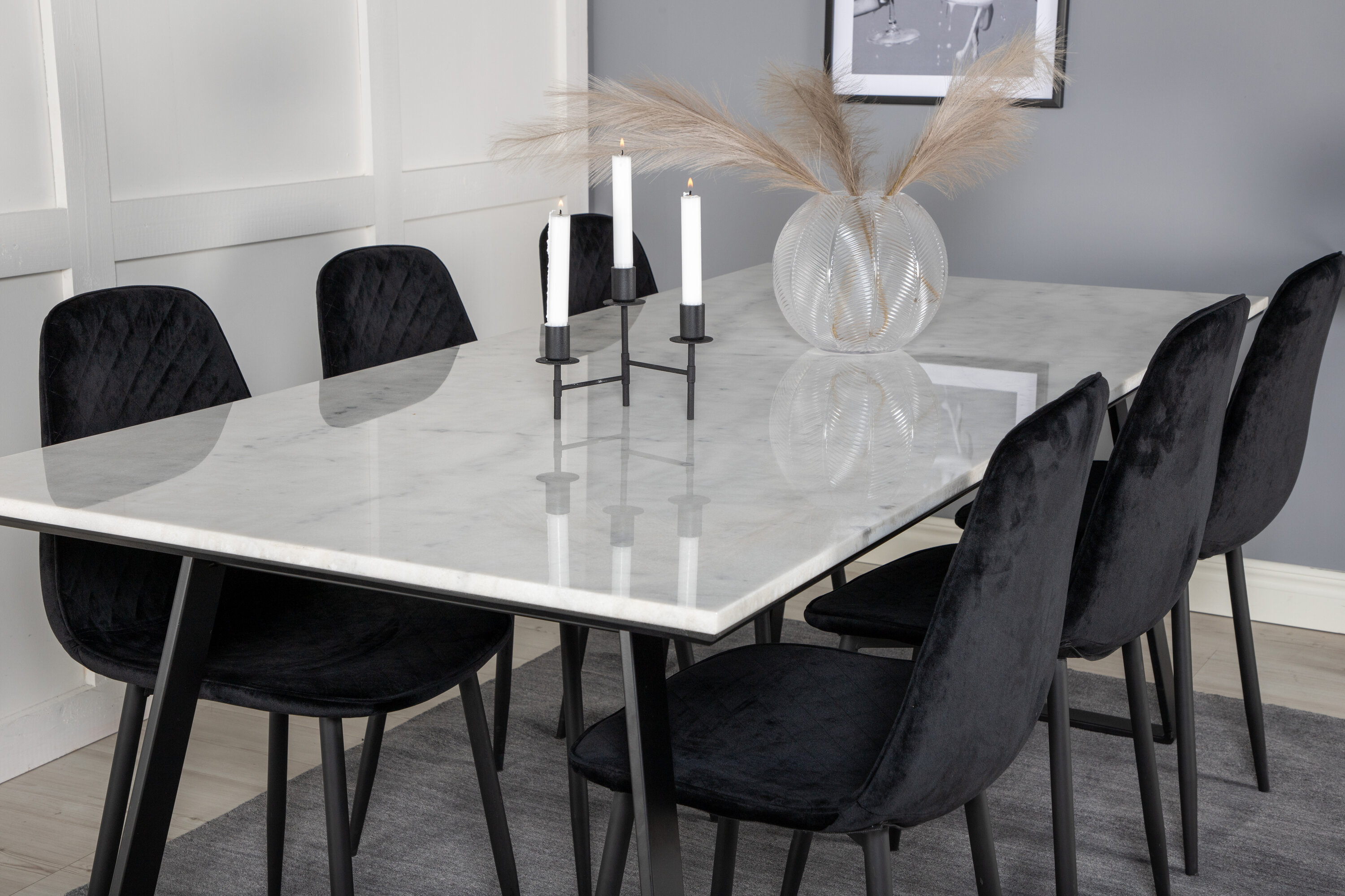 Die schlichten schwarzen Esstische Polar sind mit dem Esstisch Estelle aus schönem Marmor abgestimmt. Eine Lebensmittelgruppe, die garantiert im Laufe der Zeit steht!