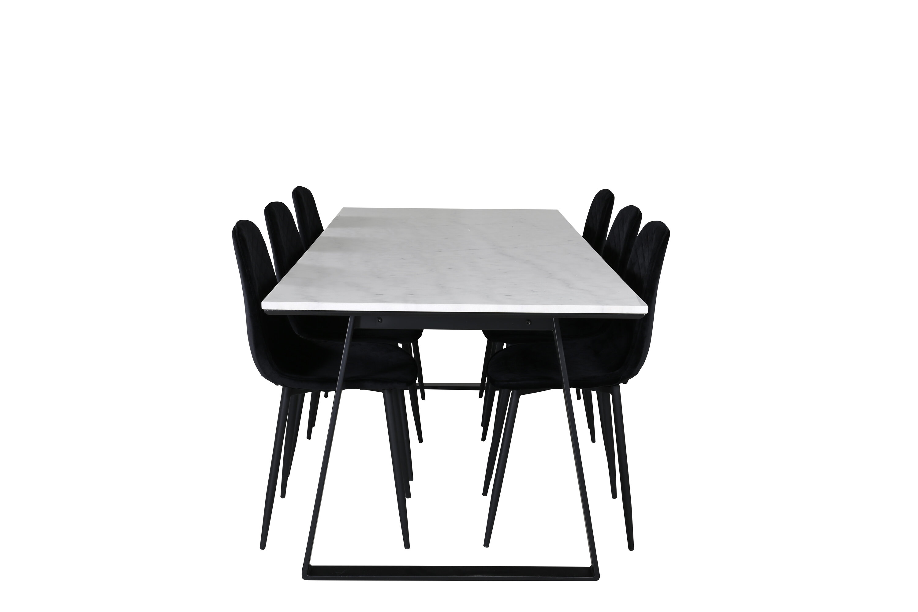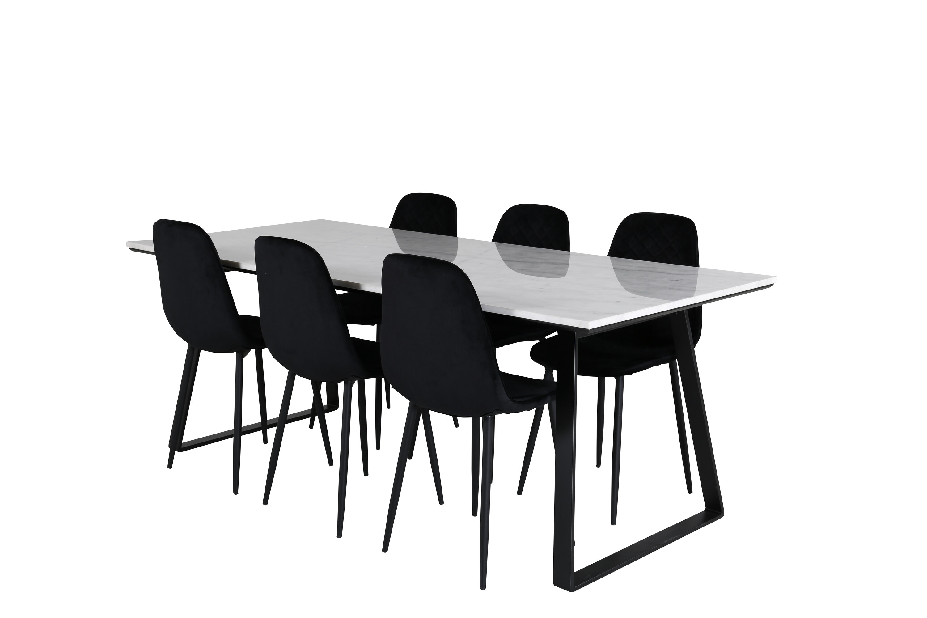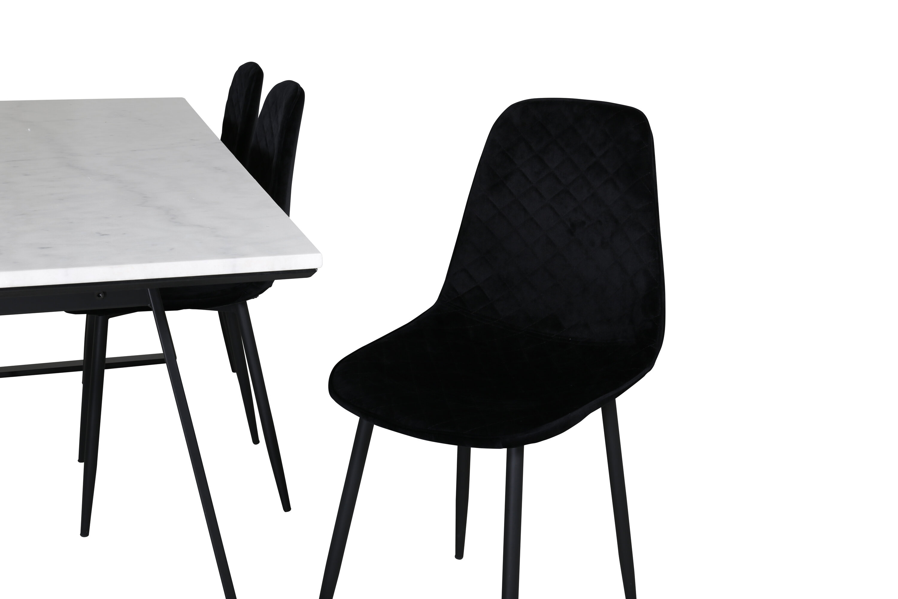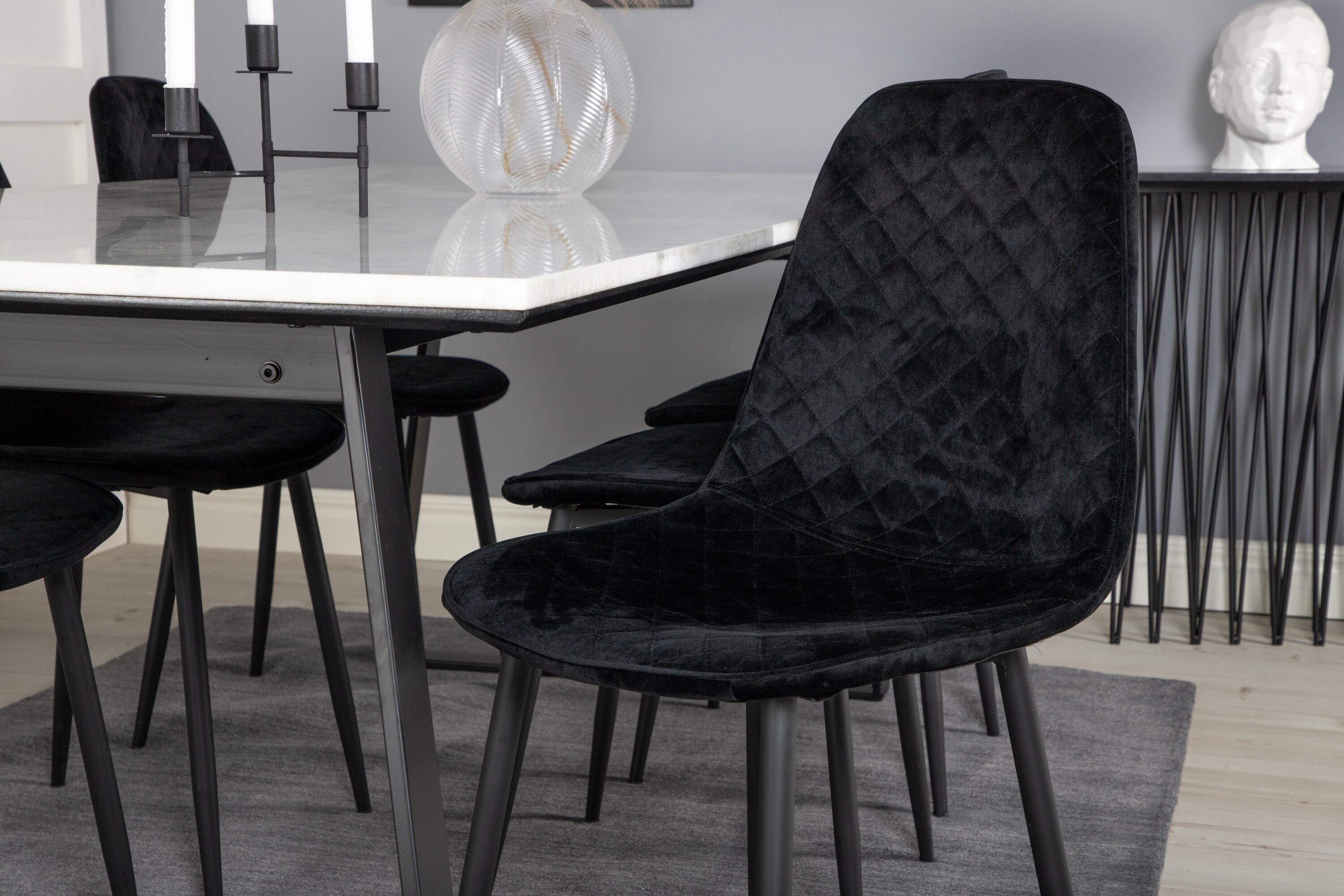 Die schlichten schwarzen Esstische Polar sind mit dem Esstisch Estelle aus schönem Marmor abgestimmt. Eine Lebensmittelgruppe, die garantiert im Laufe der Zeit steht!