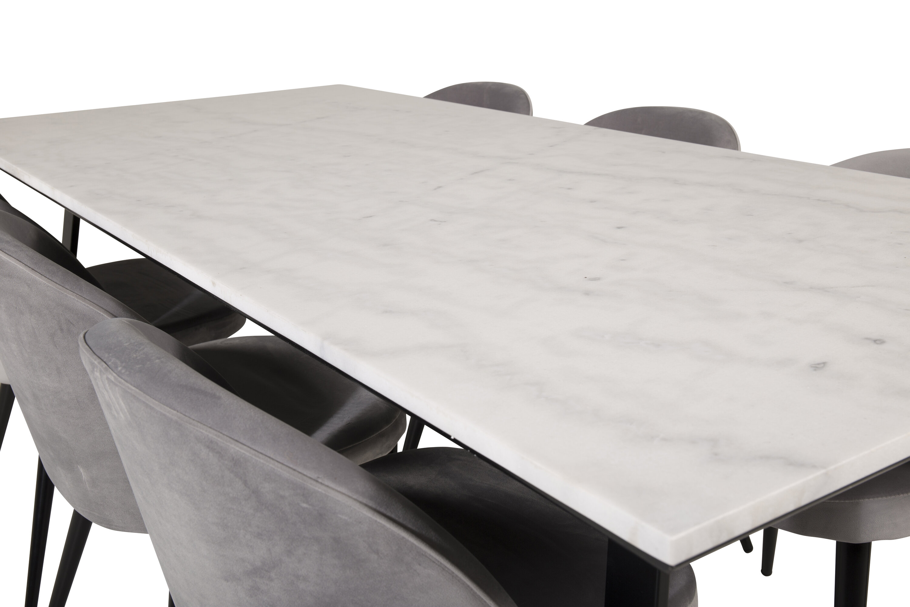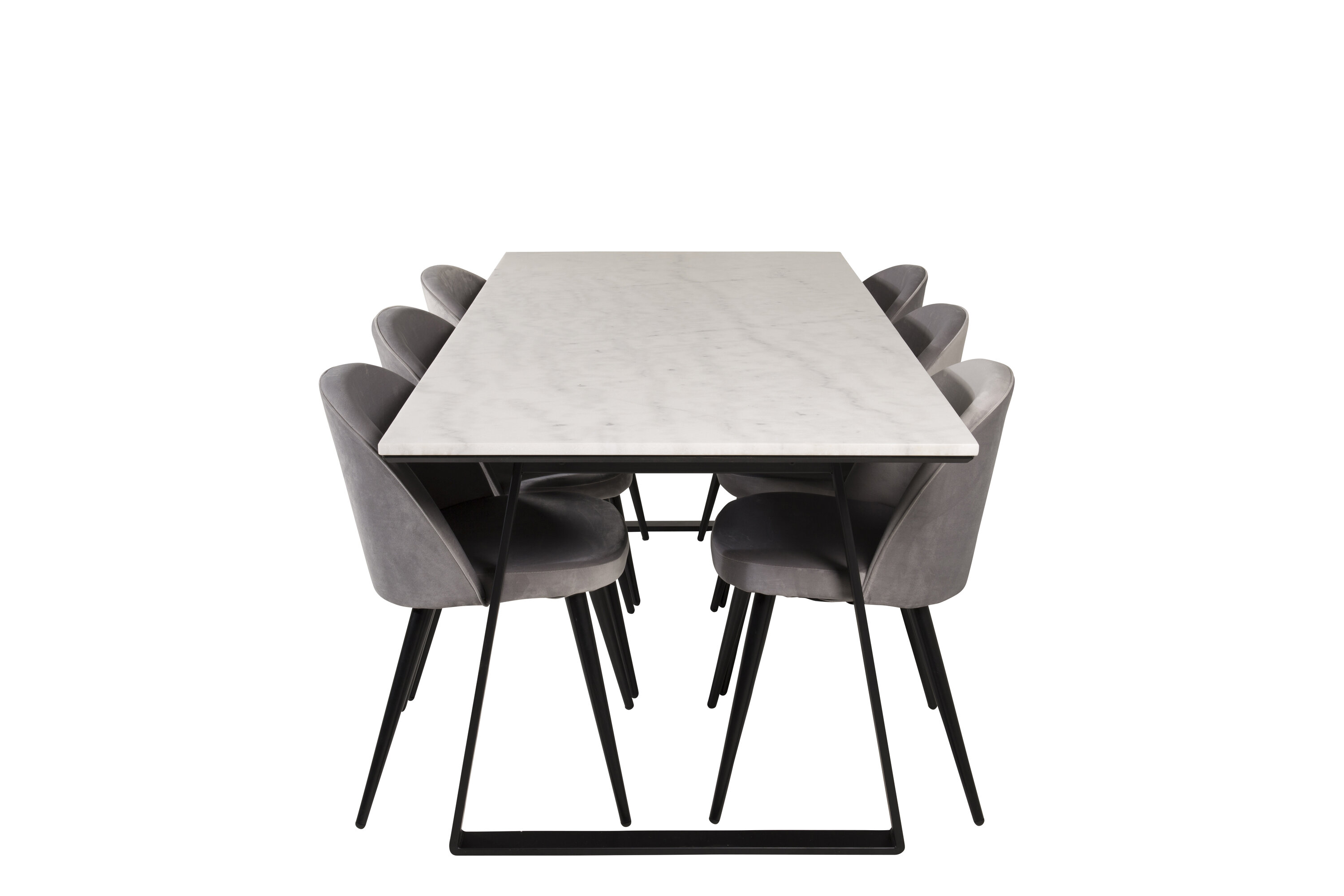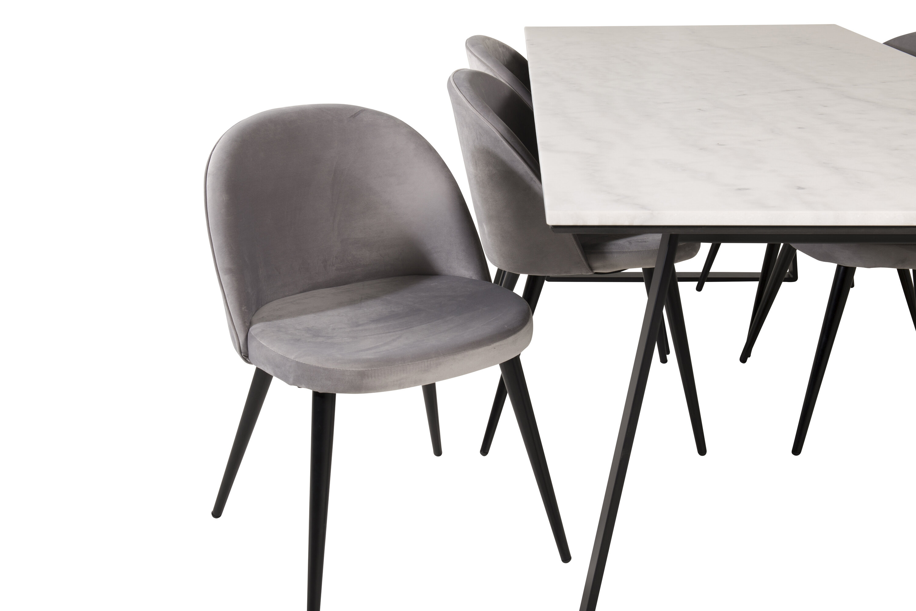 Hier haben wir eine Lebensmittelgruppe, die mit ihrem auffälligen Design einen guten ersten Eindruck macht! Esstisch Estelle mit schöner Tischplatte wird mit komfortablen Esszimmerstühlen der Serie Velvet kombiniert. Sinken Sie in diese einladende und stilvolle Essensgruppe für ein langes Abendessen mit Familie und Freunden!