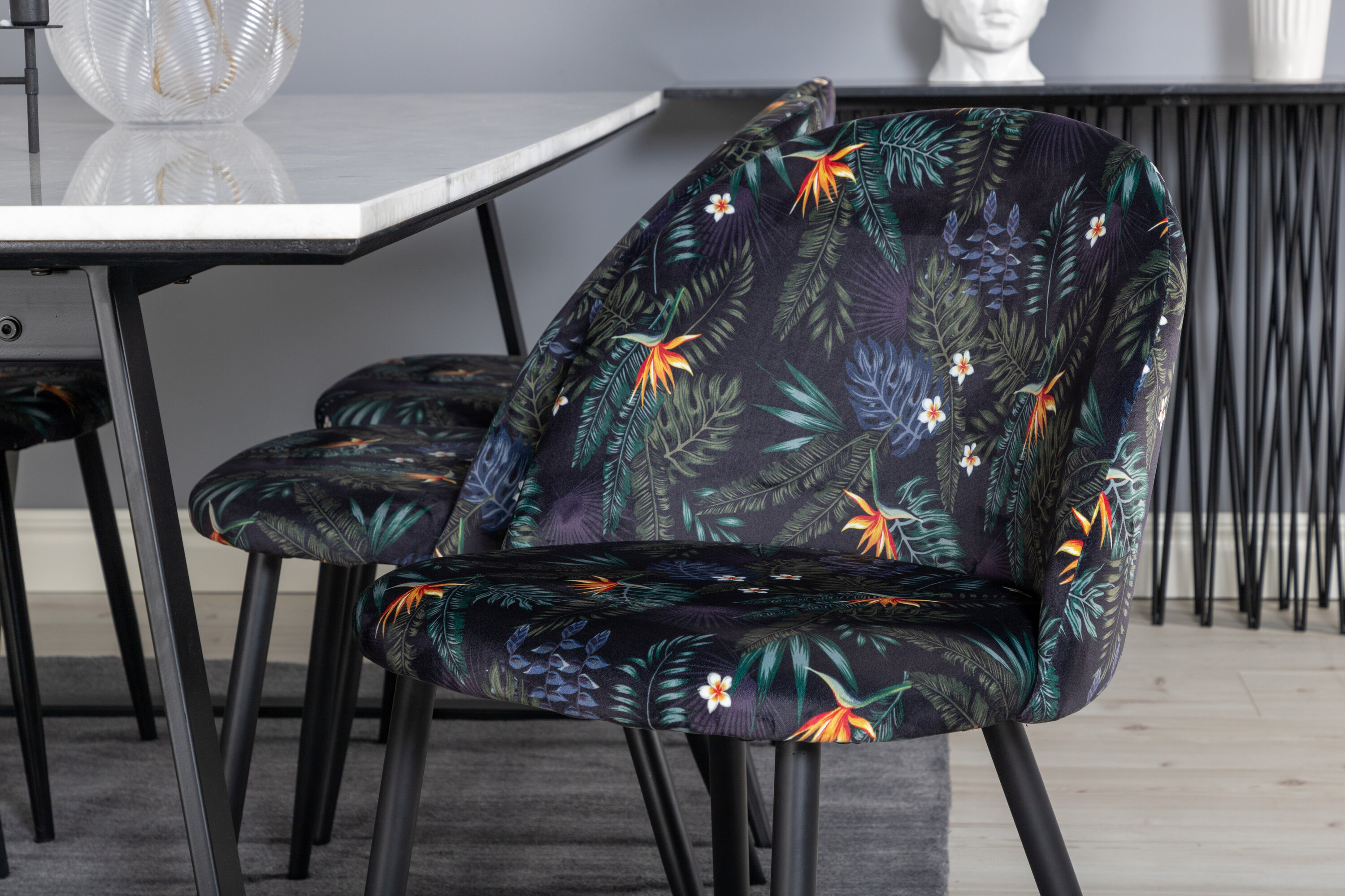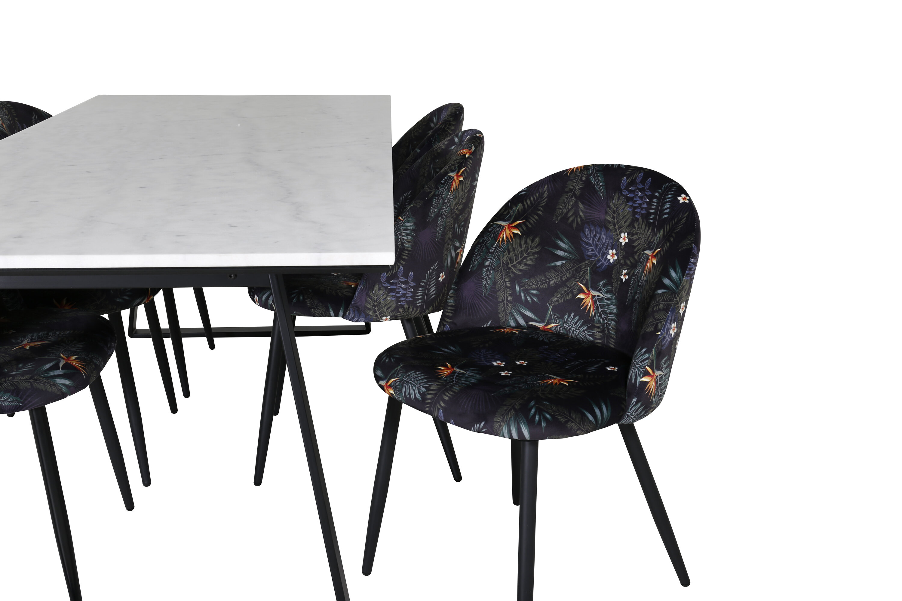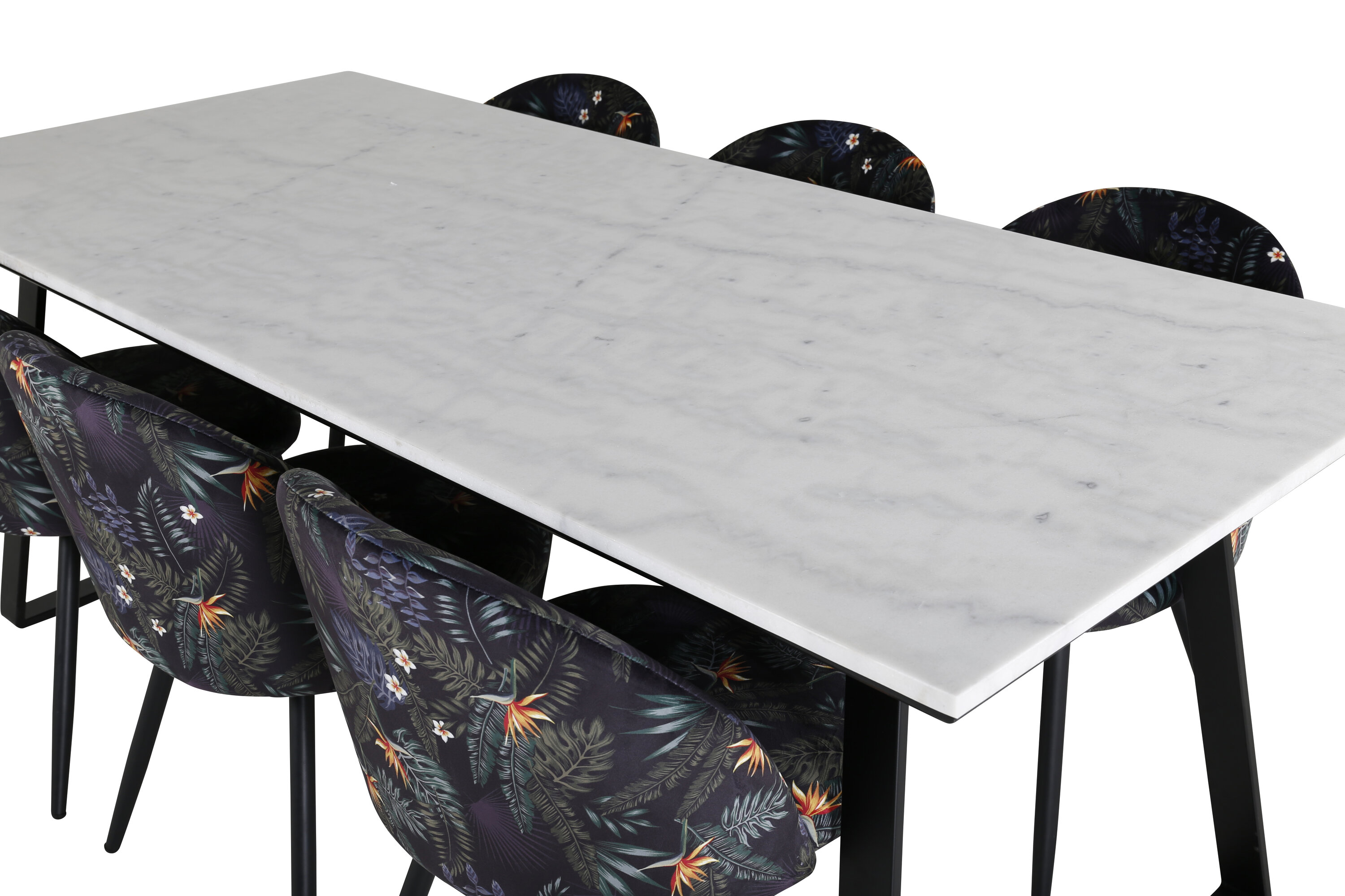 Die Esstische Samtige köstliche Blumenmuster sind mit dem Esstisch Estelle aus schönem Marmor abgestimmt. Geben Sie dem Essbereich einen Lift mit Ihrer neuen luxuriösen Essensgruppe!