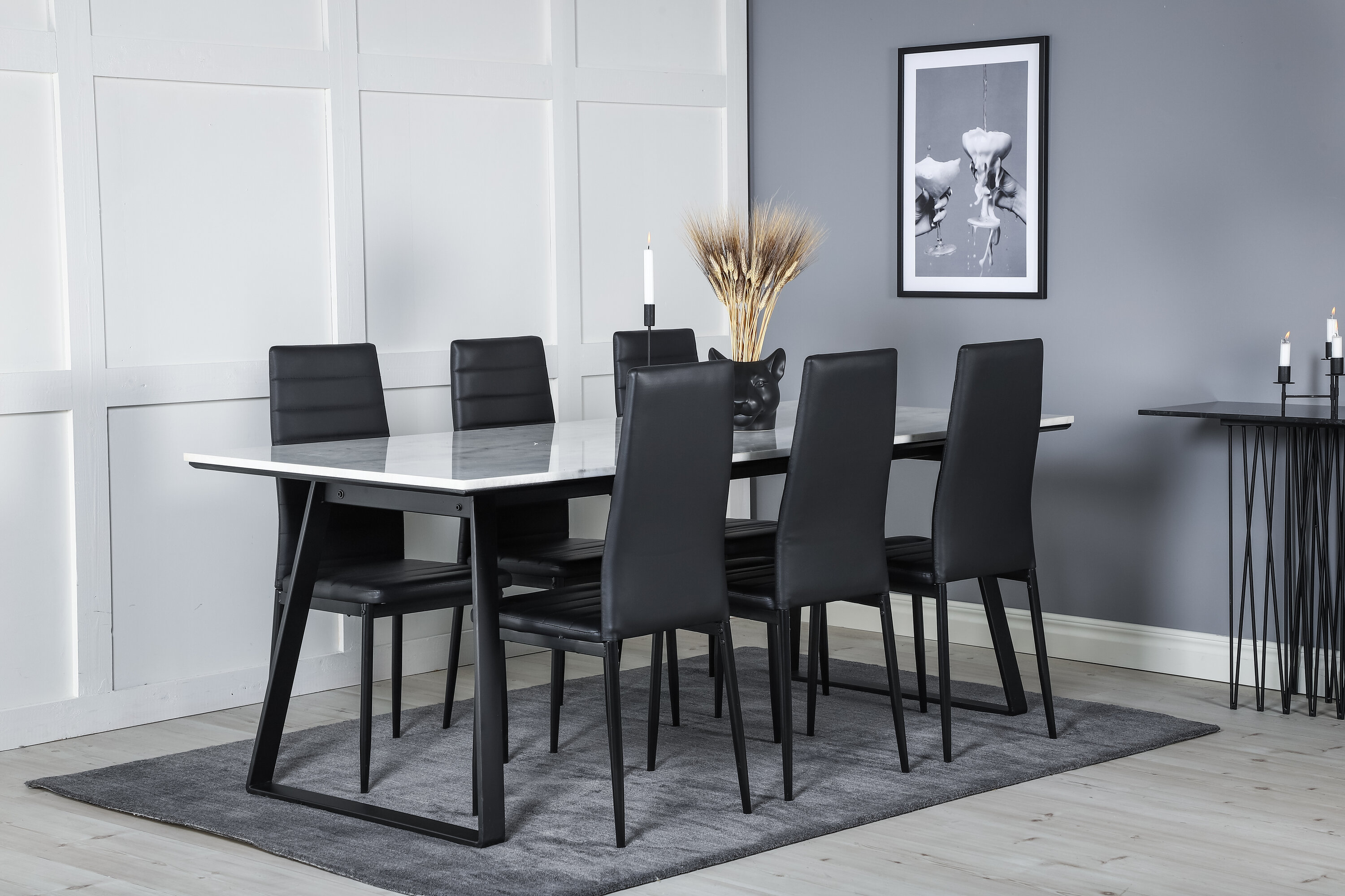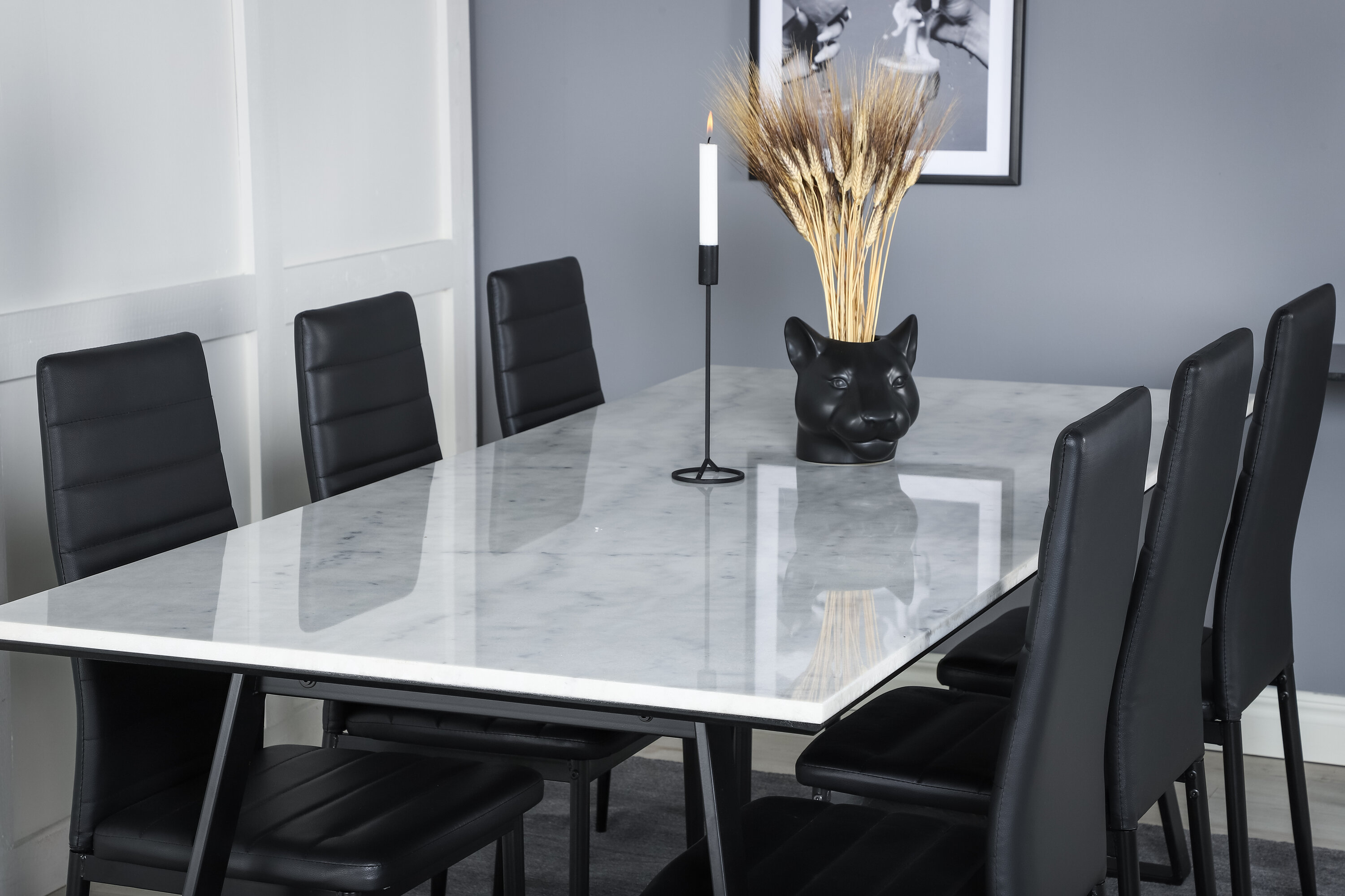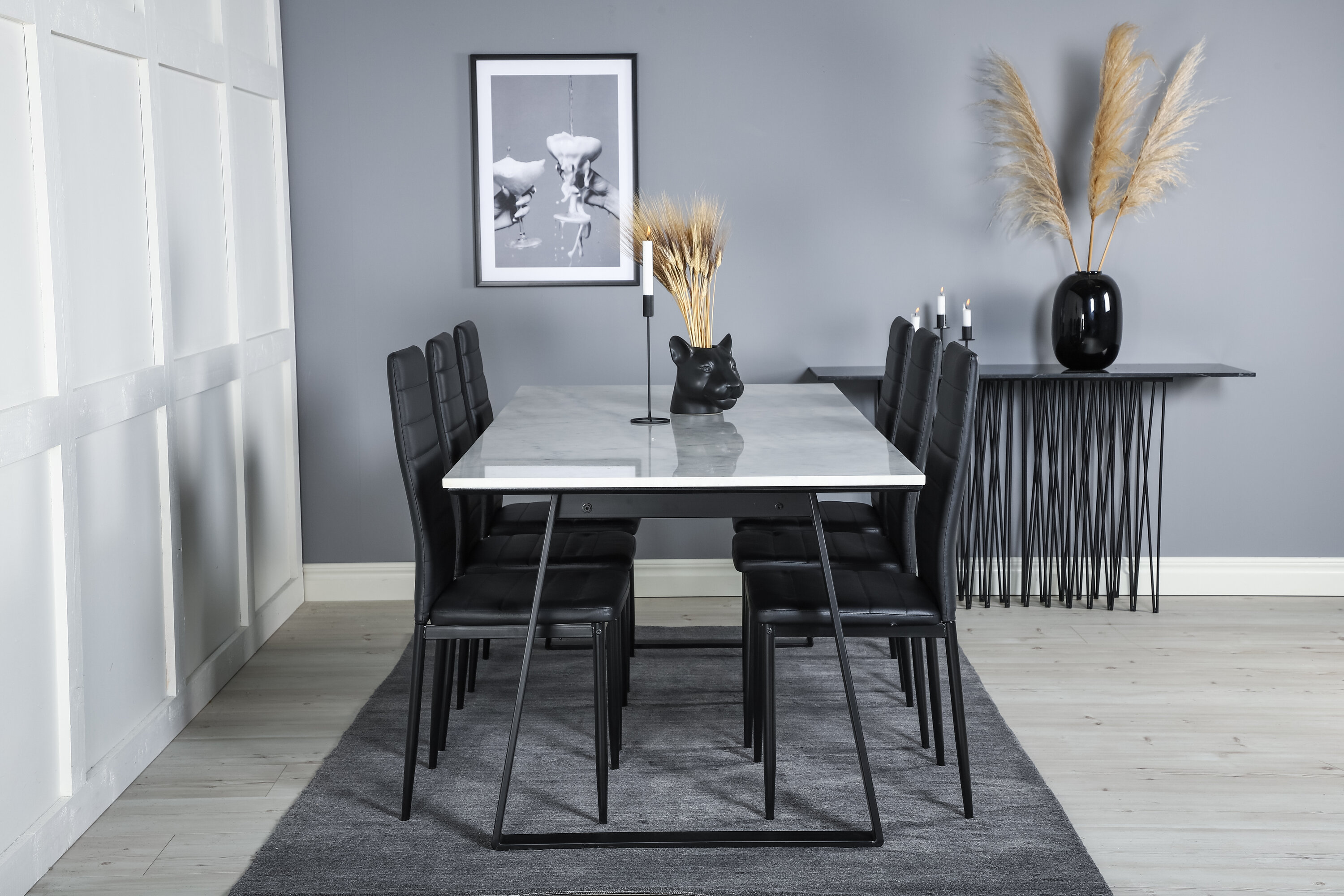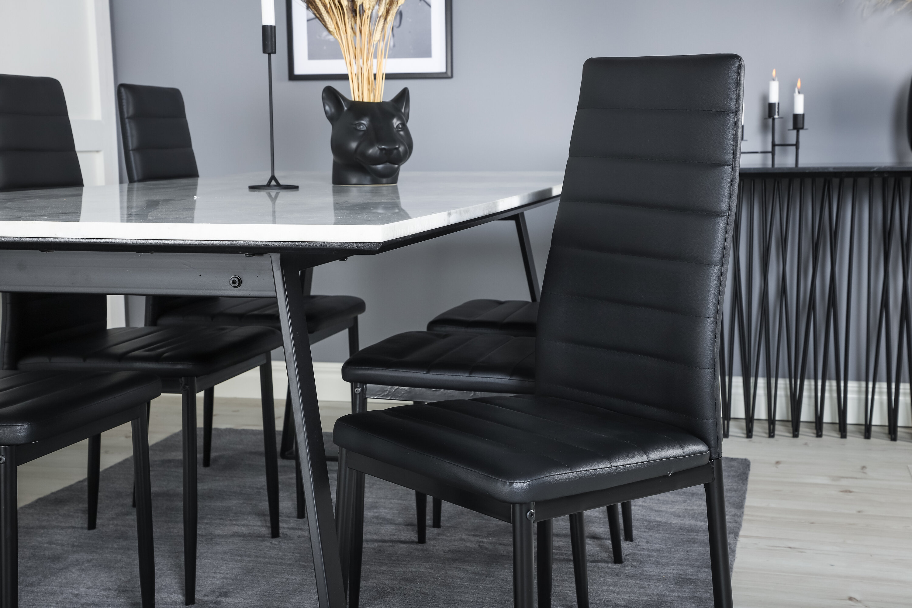 Die klassischen Esszimmerstühle Slim aus Kunstleder sind mit dem Esstisch Estelle aus schönem Marmor abgestimmt. Schaffen Sie etwas Ordentliches und Soziales mit Raum für gutes Essen und Geselligkeit!