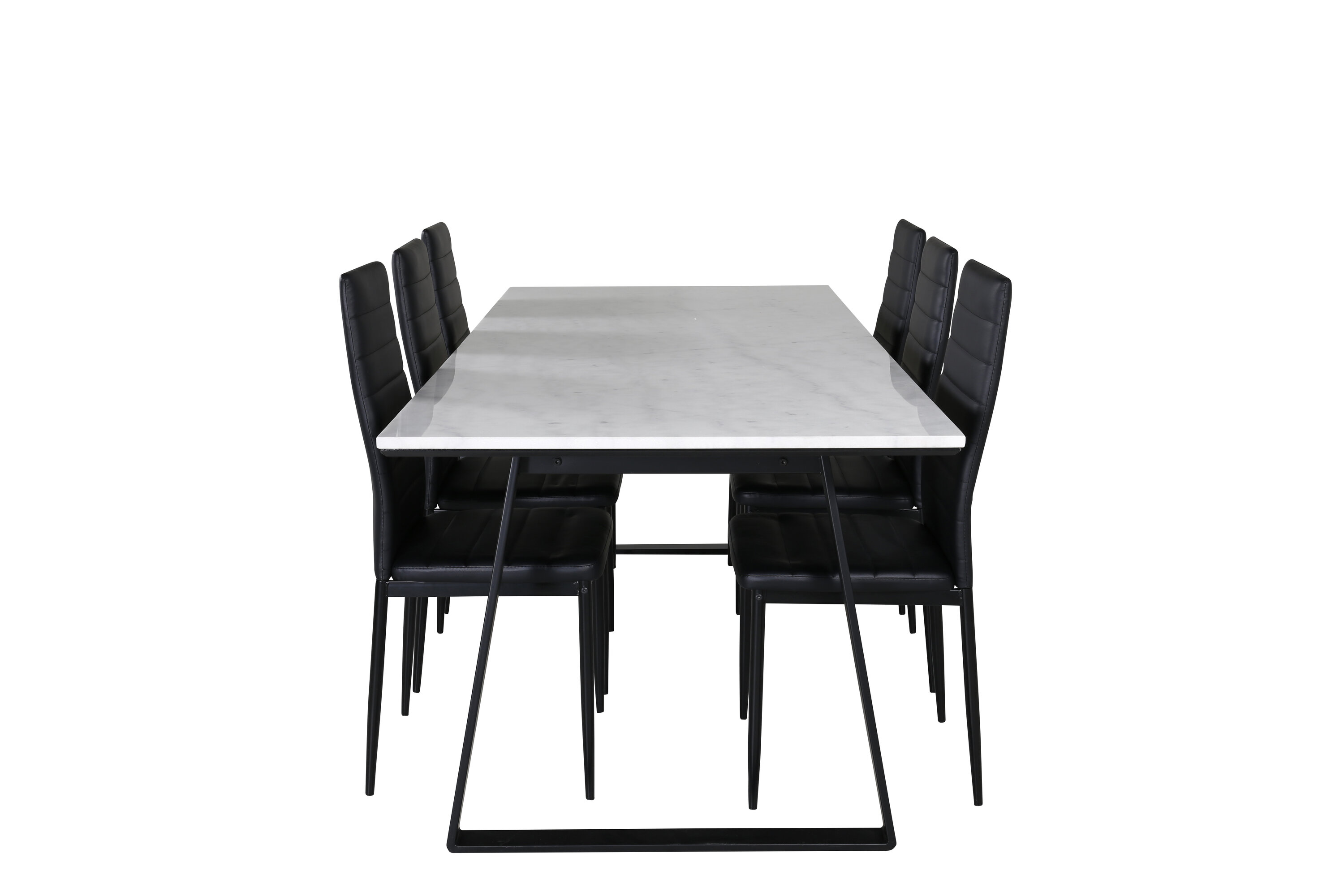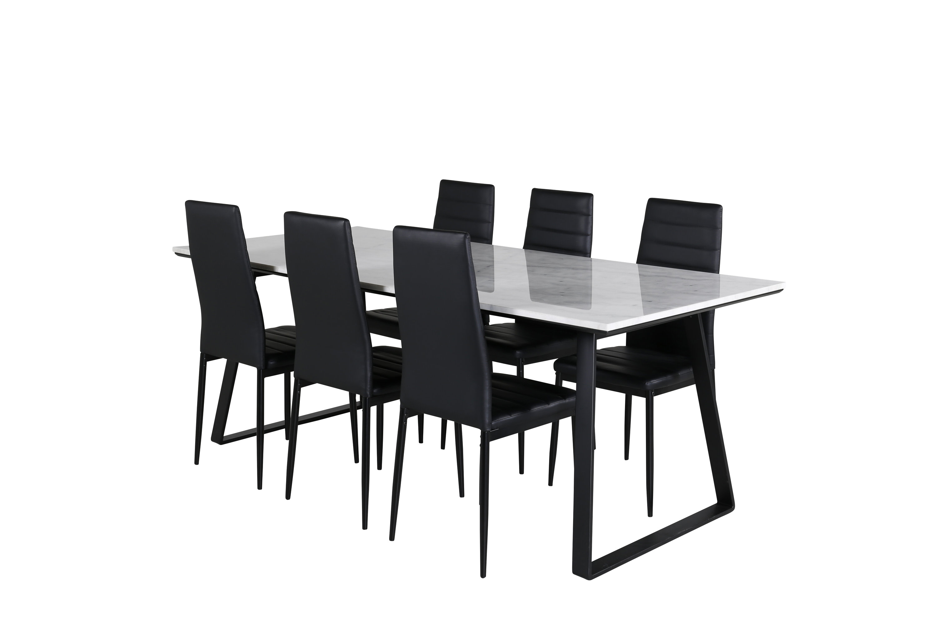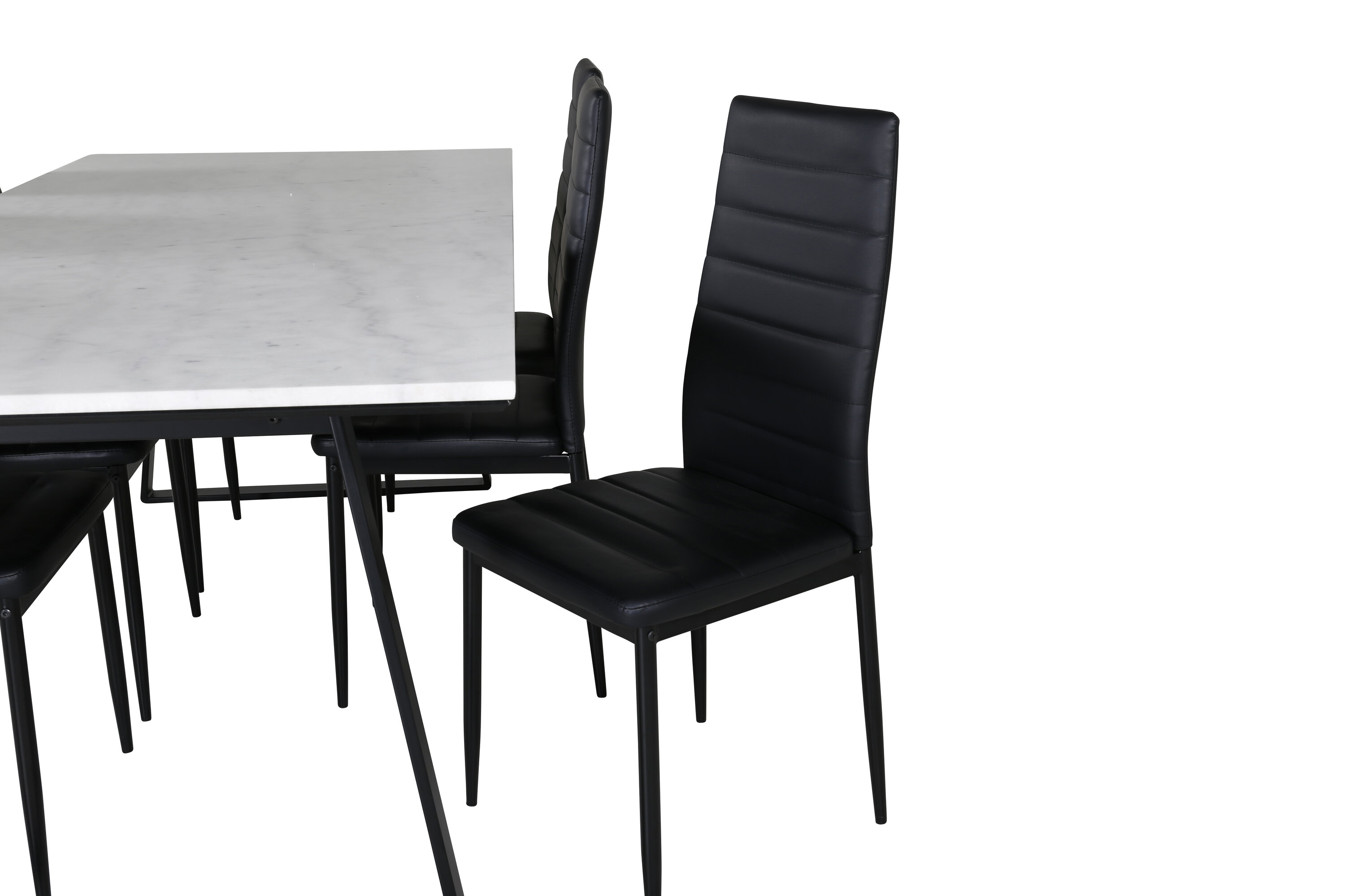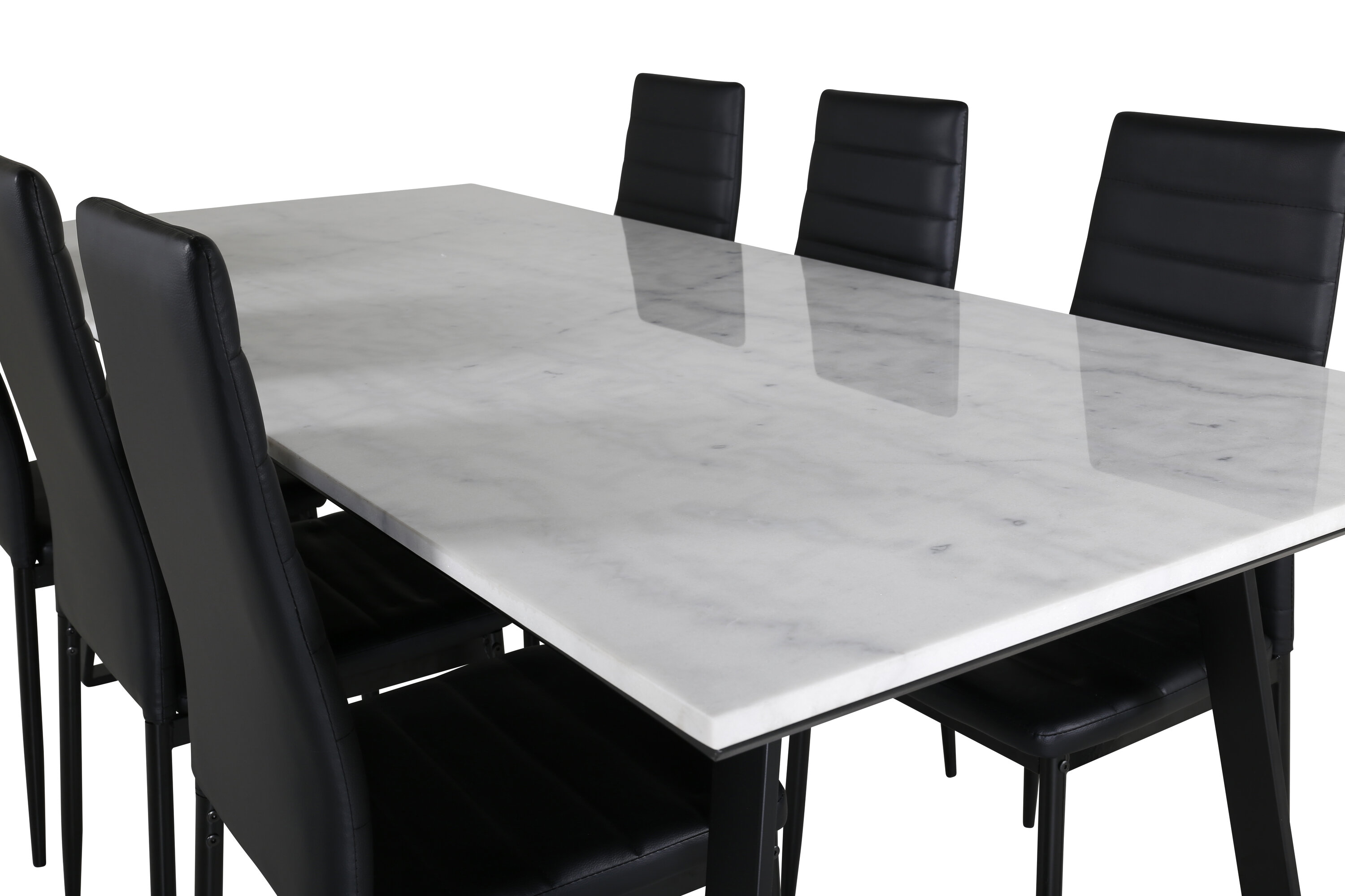 Die klassischen Esszimmerstühle Slim aus Kunstleder sind mit dem Esstisch Estelle aus schönem Marmor abgestimmt. Schaffen Sie etwas Ordentliches und Soziales mit Raum für gutes Essen und Geselligkeit!