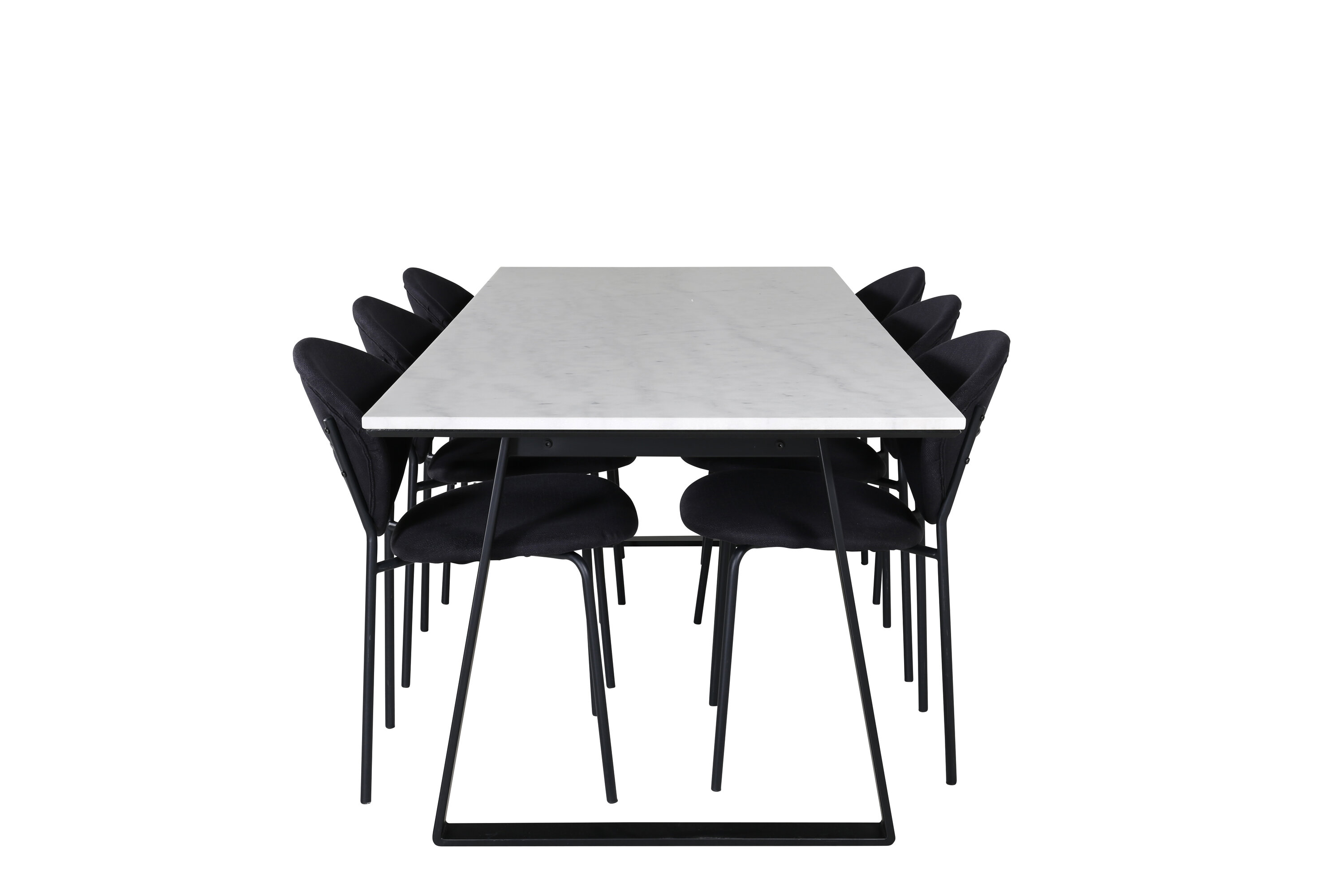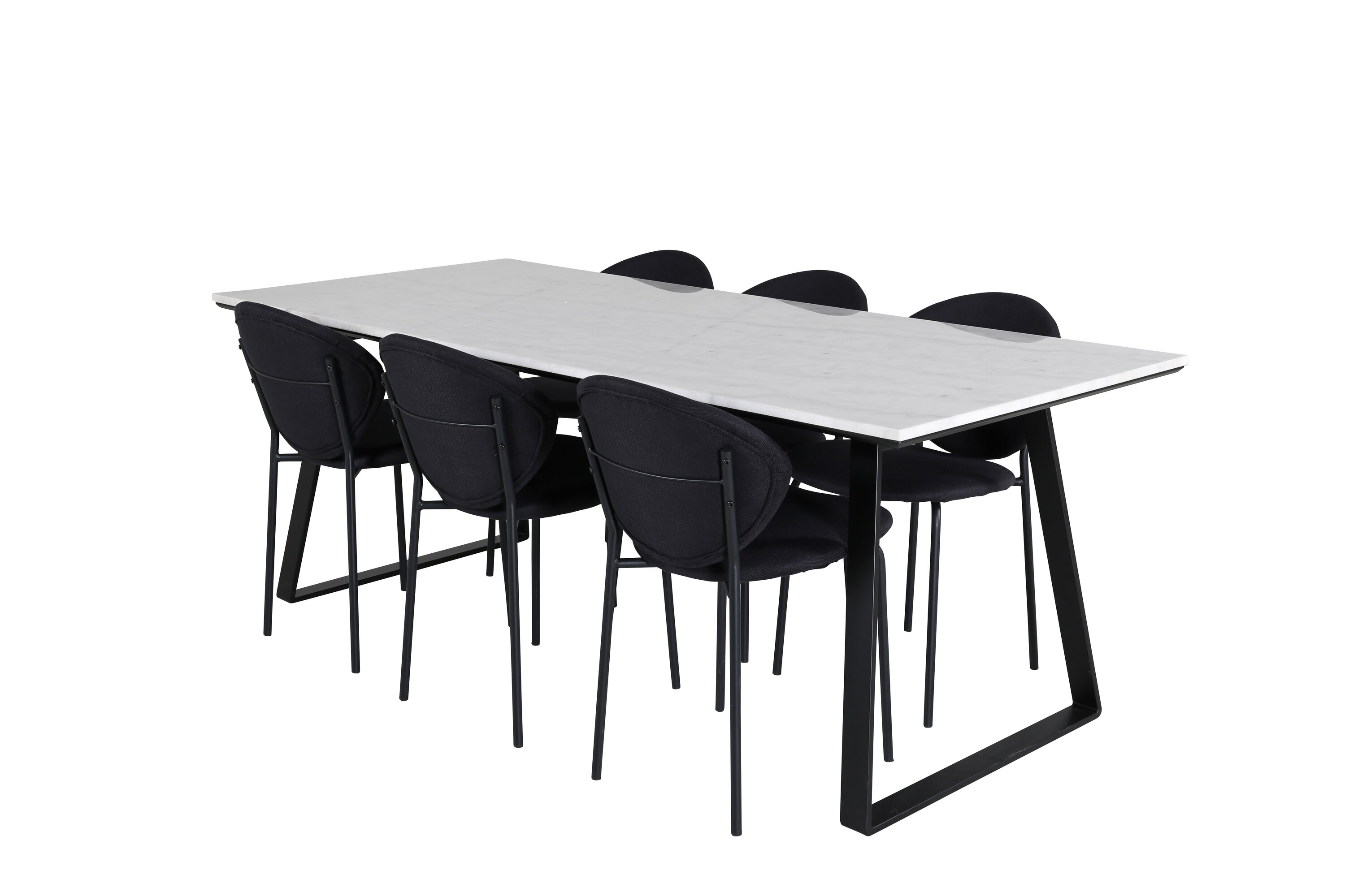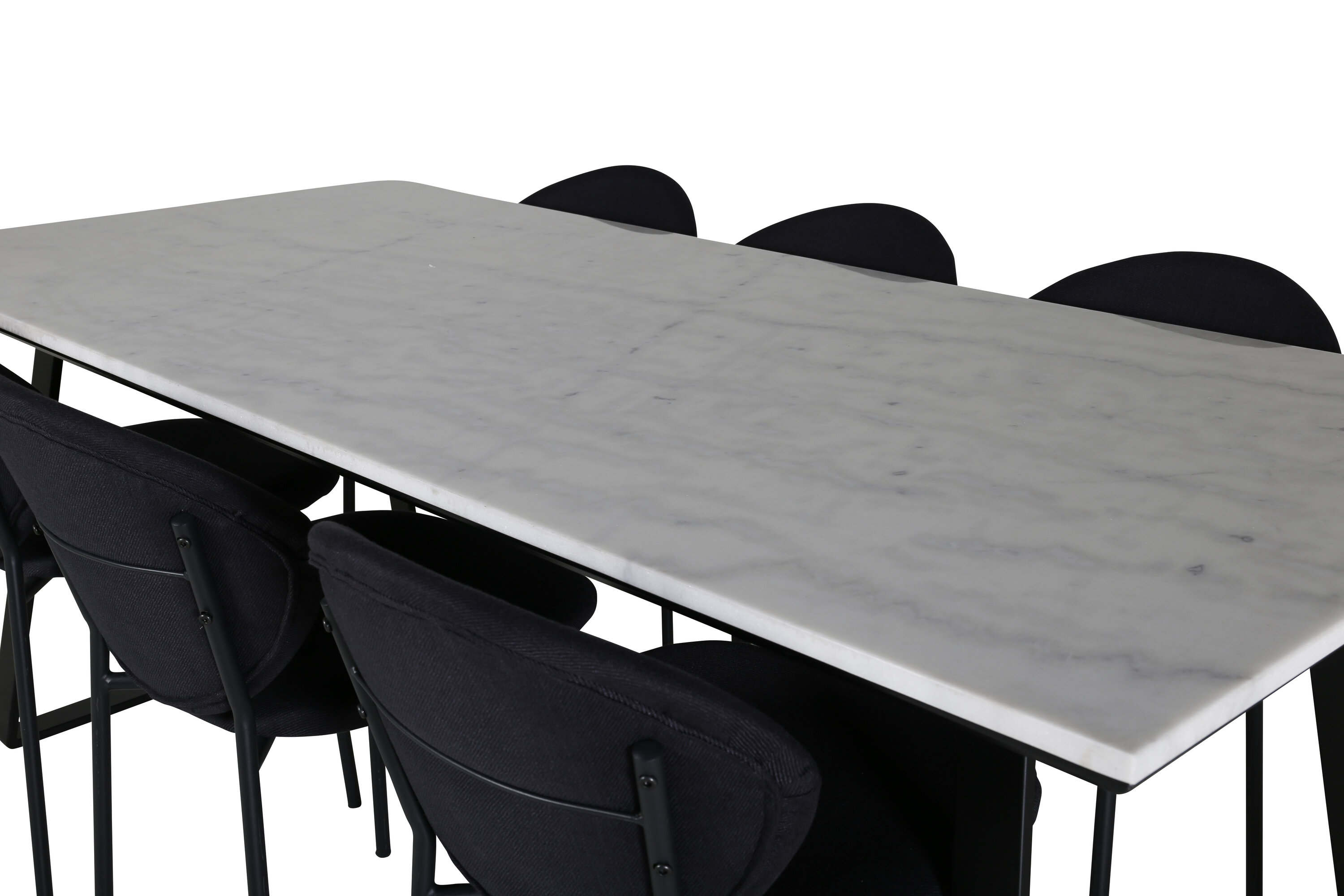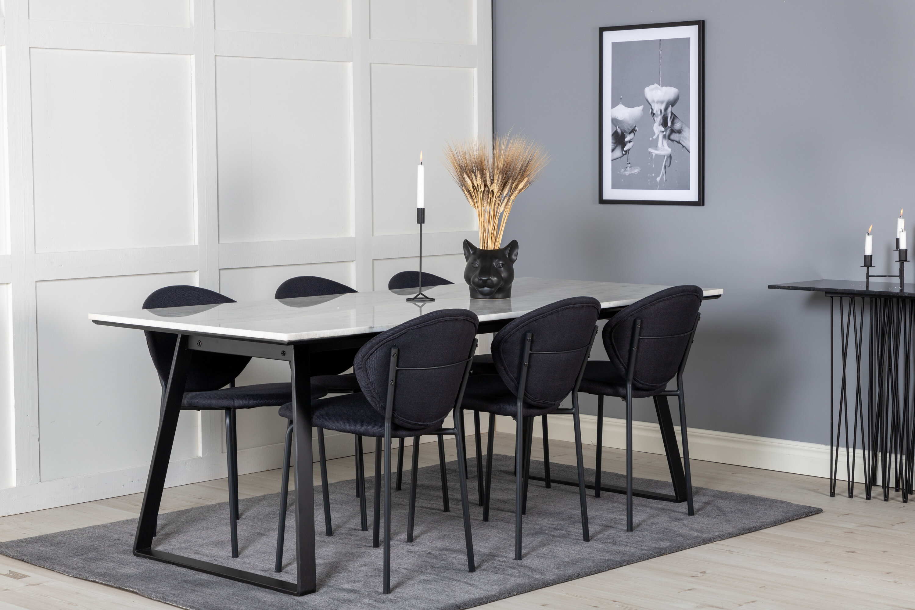 Estelle, moderner und stilvoller Esstisch in schönem Marmor - hier zusammen mit den Esstischen Vault in stilvollem Design. Schaffen Sie etwas Ordentliches und Soziales mit Raum für gutes Essen und Geselligkeit!