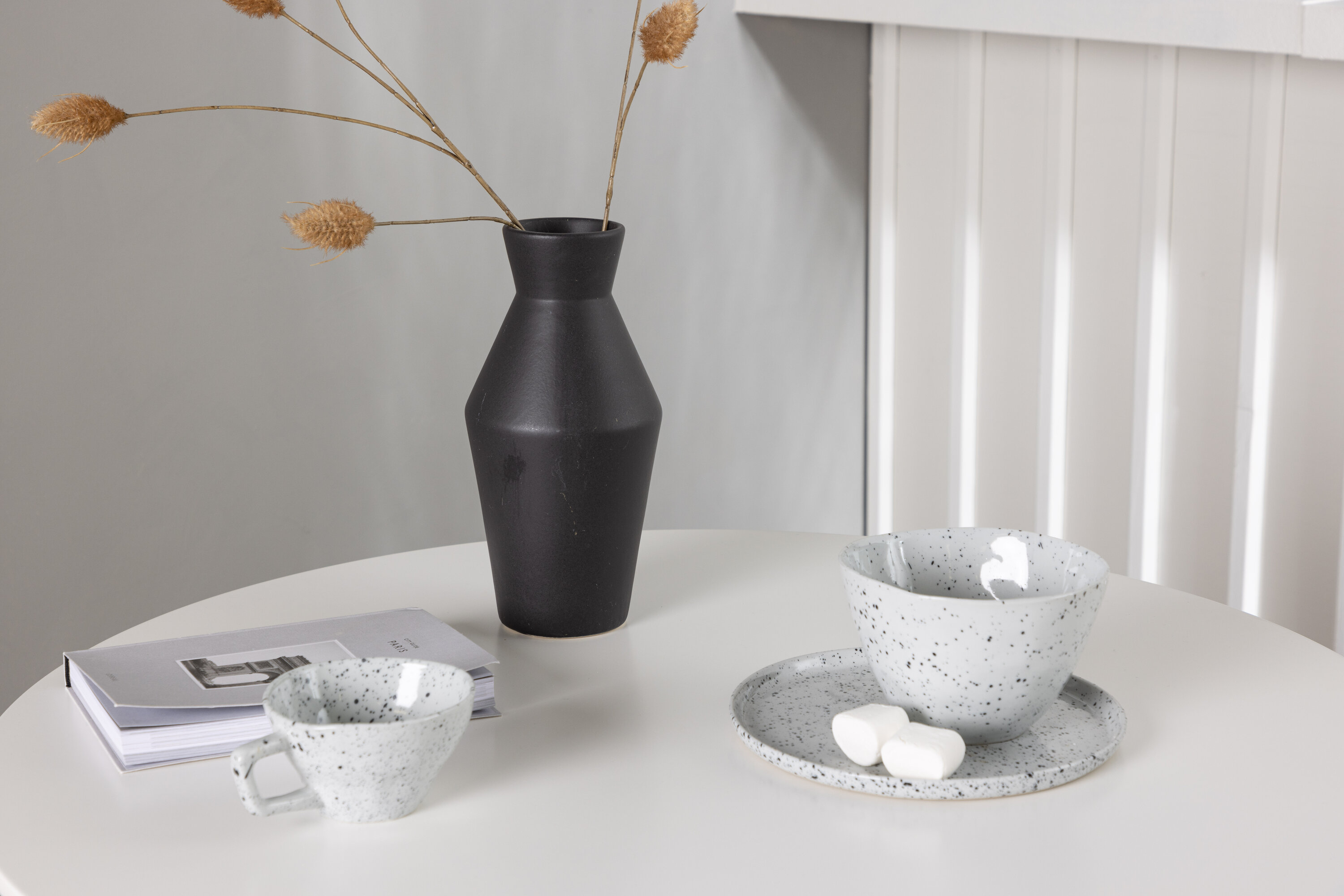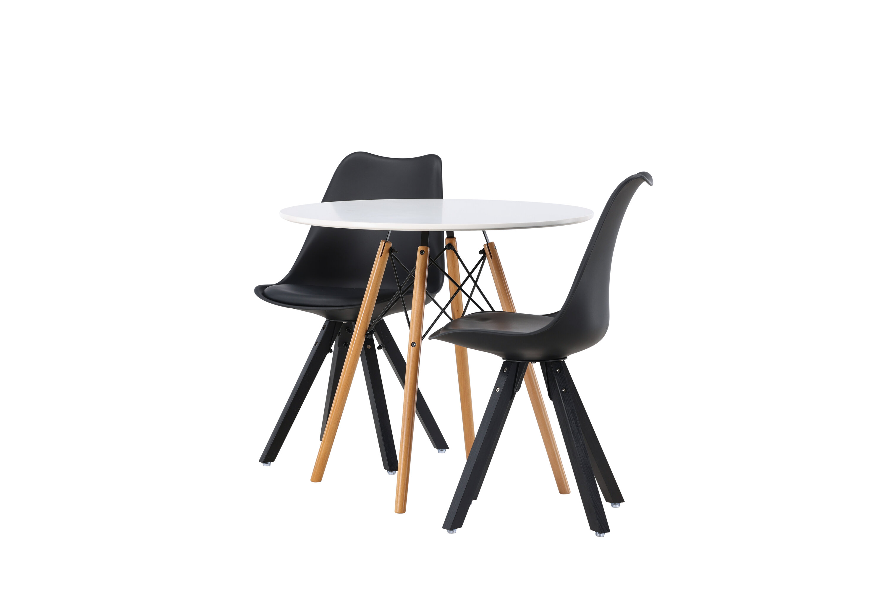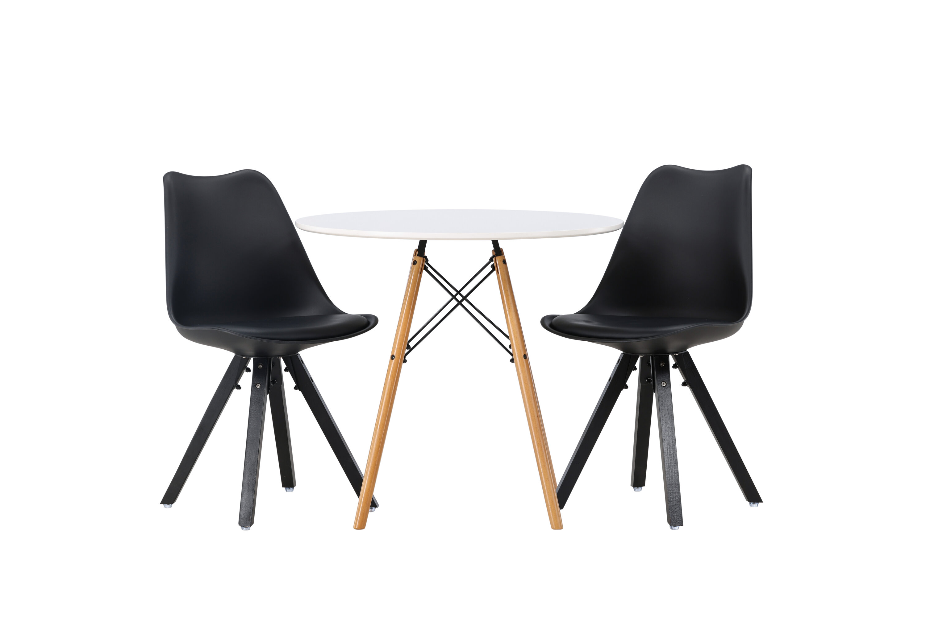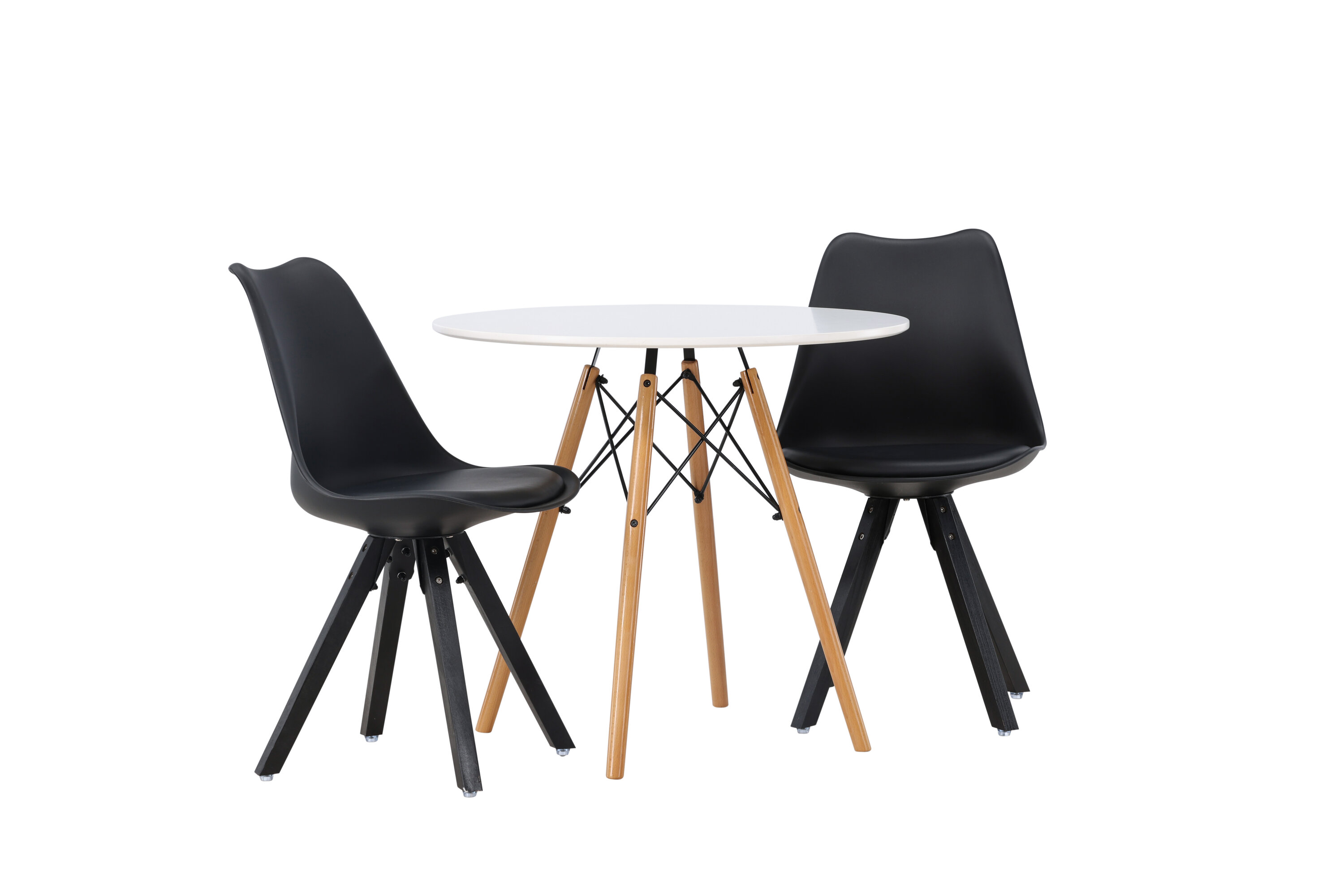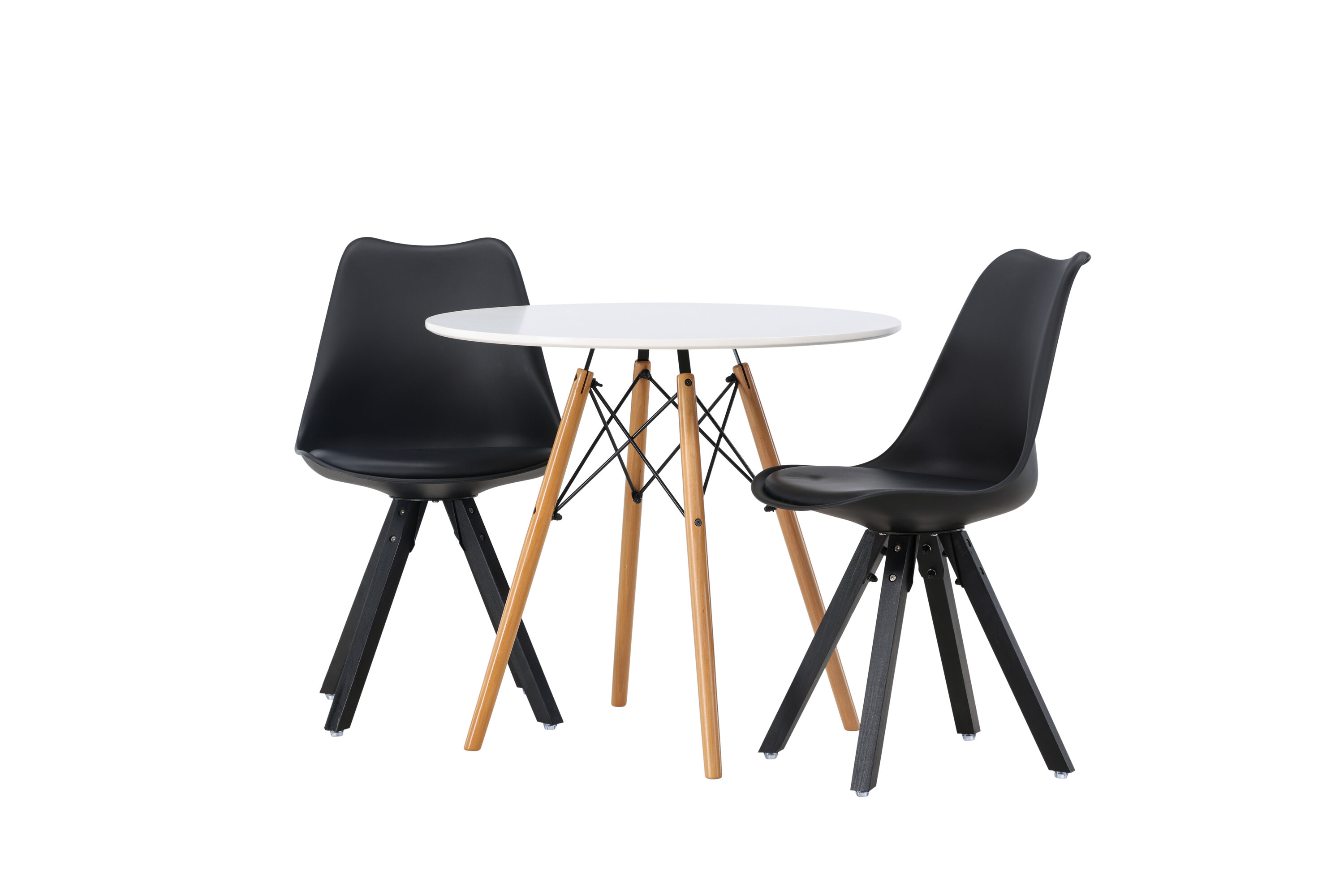 Geben Sie mit einer stilvollen Essensgruppe den Ton an! Der runde Esstisch Danburi hat ein klassisches Design mit einer runden Tischplatte aus weißem MDF und leicht ausgestellten Beinen aus Buchenholz mit dekorativen Details aus schwarzem Stahl. Hier in stilvoller Kombination mit nachhaltigen Esszimmerstühlen aus der Zeno-Serie. Der Stuhl hat ein einladendes Design mit Rückenlehne und Sitz in schwarzem Kunststoff, eingebautem Sitzkissen mit hohem Komfort und vier ausgestellten Beinen in schwarzem Holz. Trendfest und langlebig! Tischdurchmesser: 60cm.