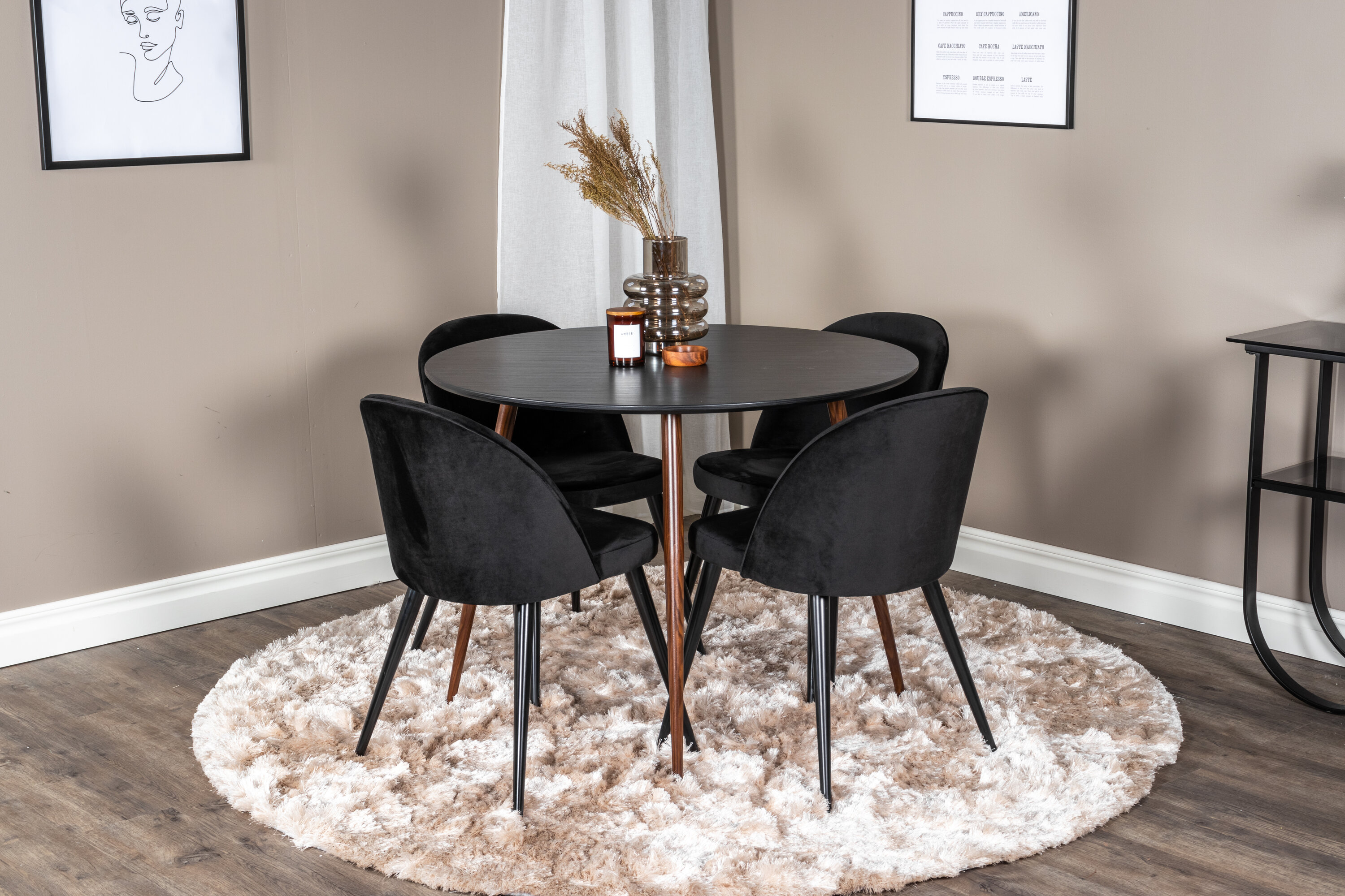 Unsere beliebten Samets Stühle aus Samt in perfekter Kombination mit dem Esstisch Plaza in elegantem Design! Eine trendfeste Lebensmittelgruppe, die für alle Gelegenheiten gut passt.